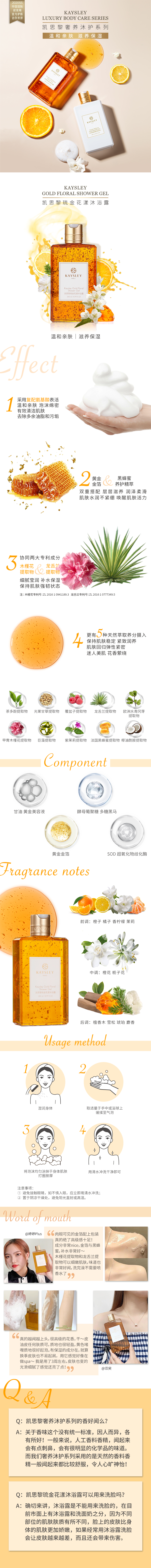 KAYSLEY/凯思黎 琉金花漾沐浴露 金箔中性香氛温和沐浴露