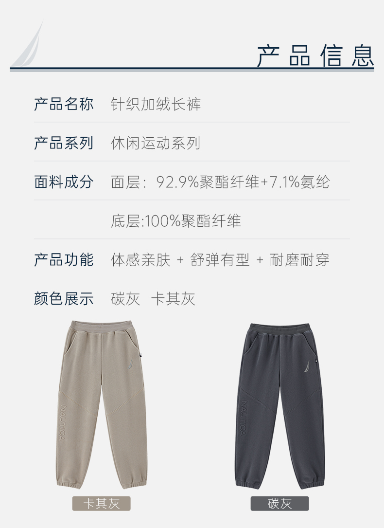 NAUTICA诺帝卡童装 针织加绒长裤 NK240191 商品图5