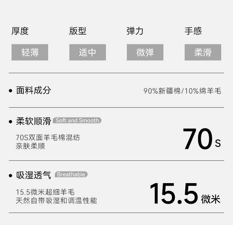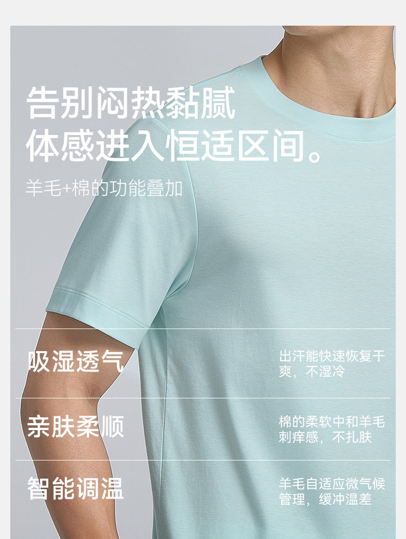 【门店同款】十如仕春夏新品双面羊毛棉混纺轻薄羊毛短袖T恤T15-03