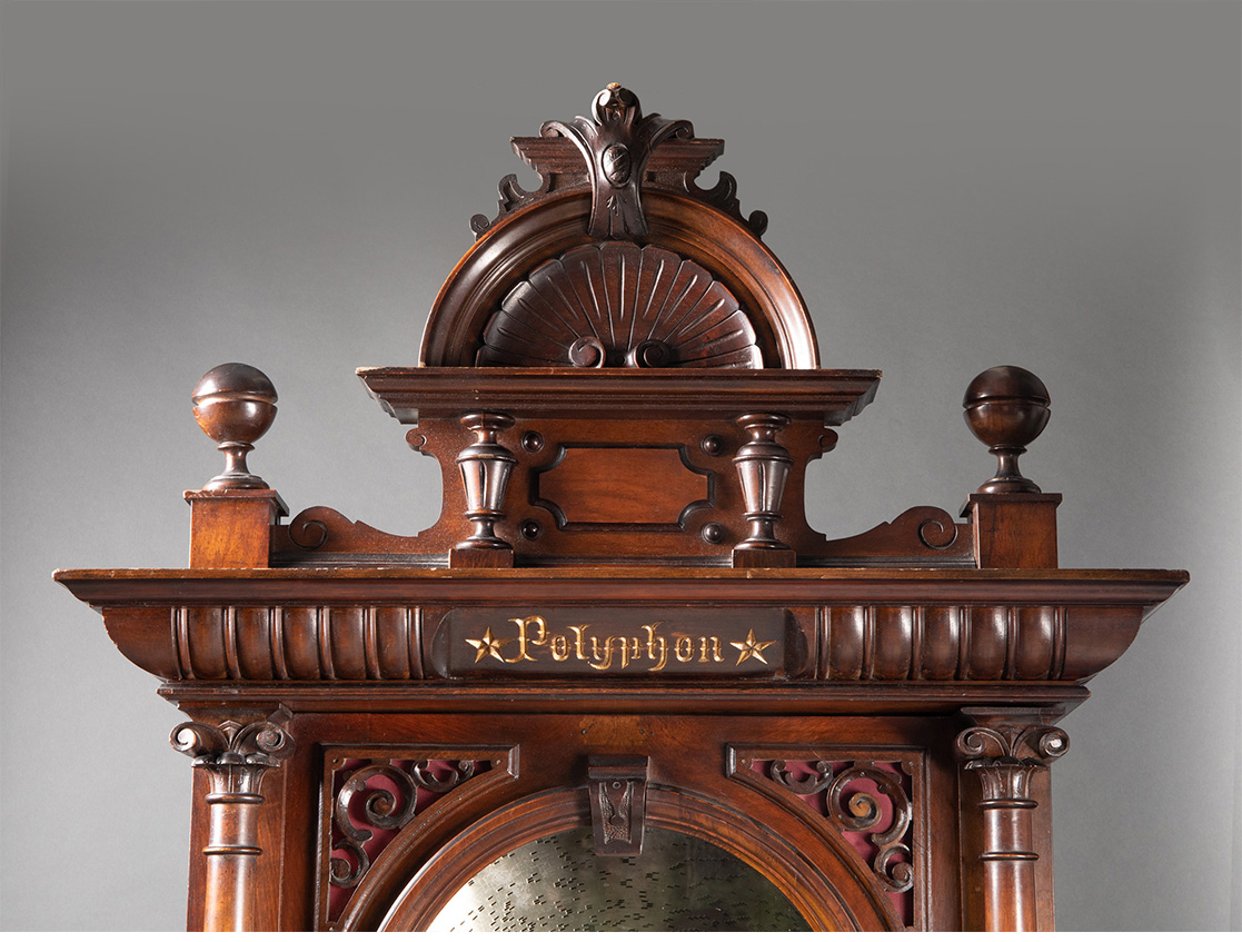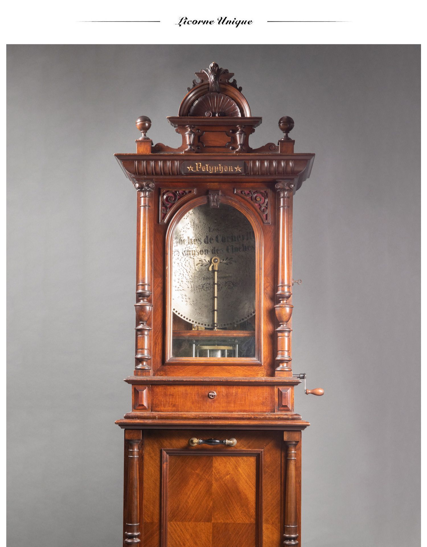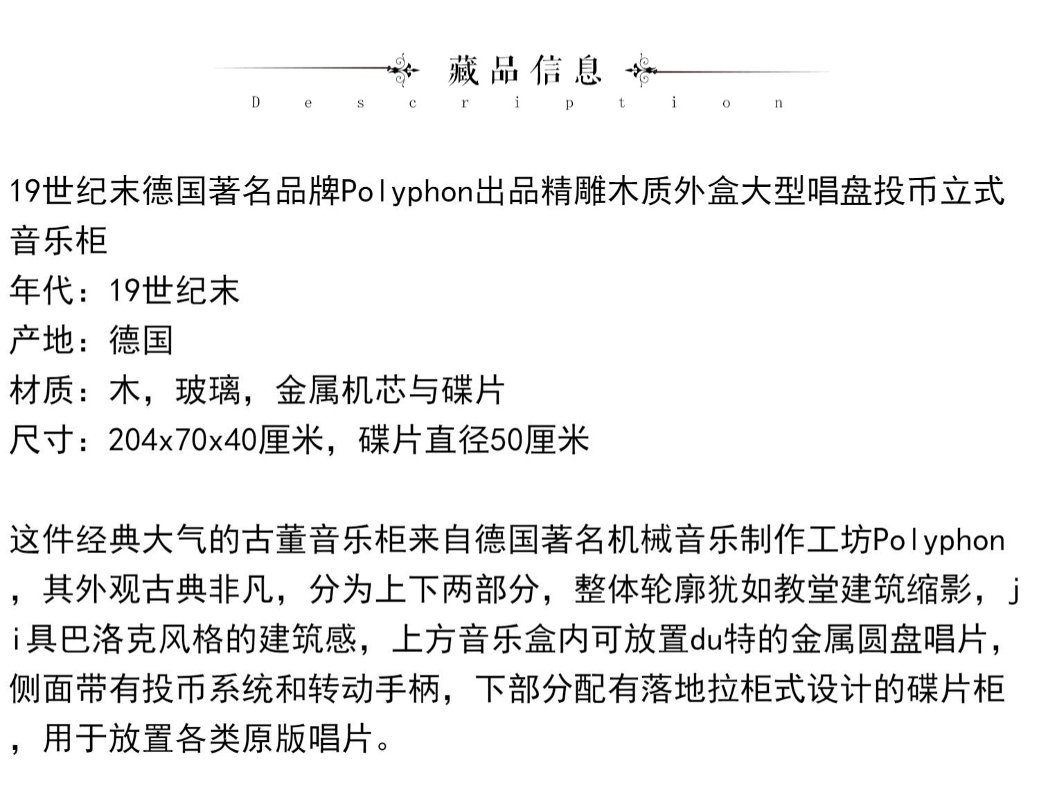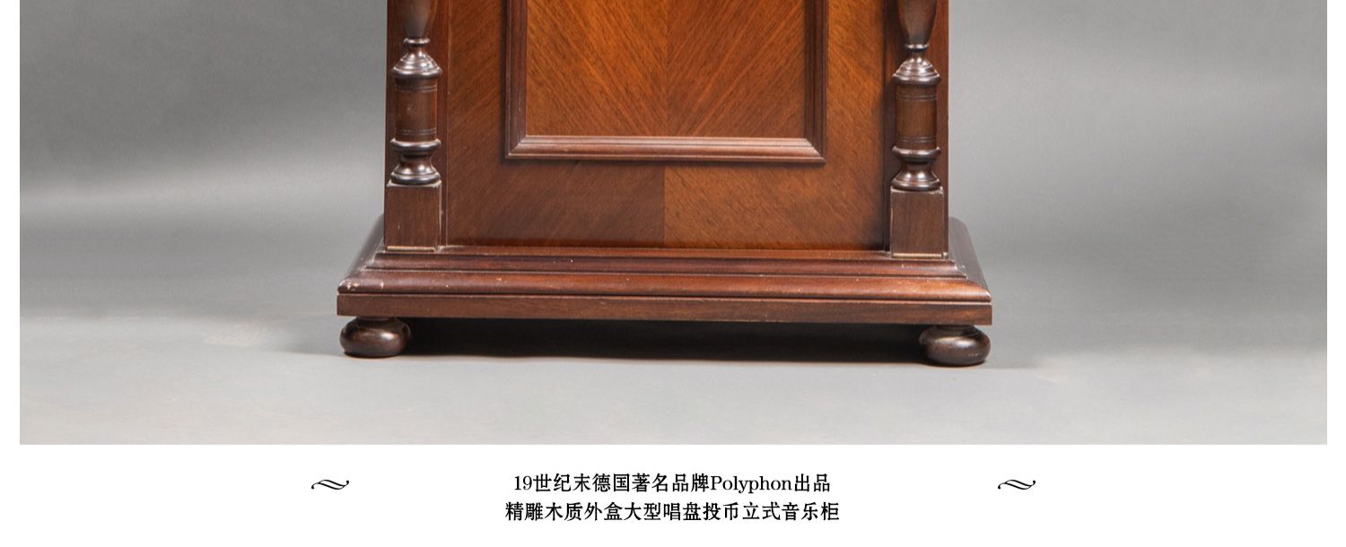 独角鹿西洋古董德国Polyphon精雕木质外盒大型唱盘投币立式音乐柜