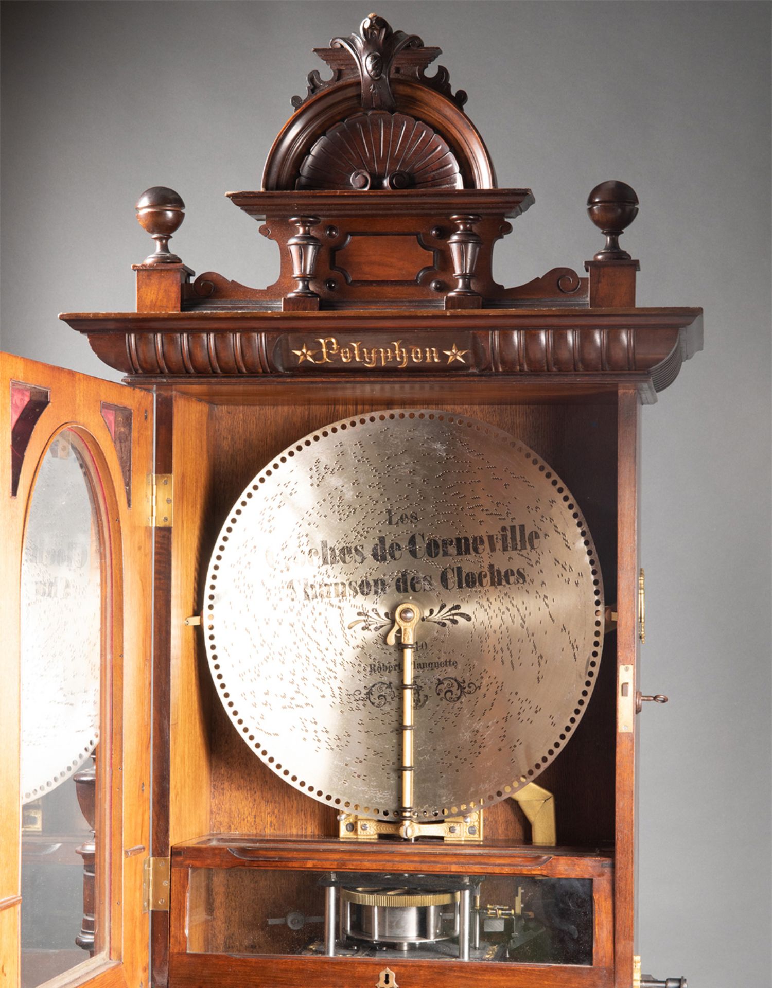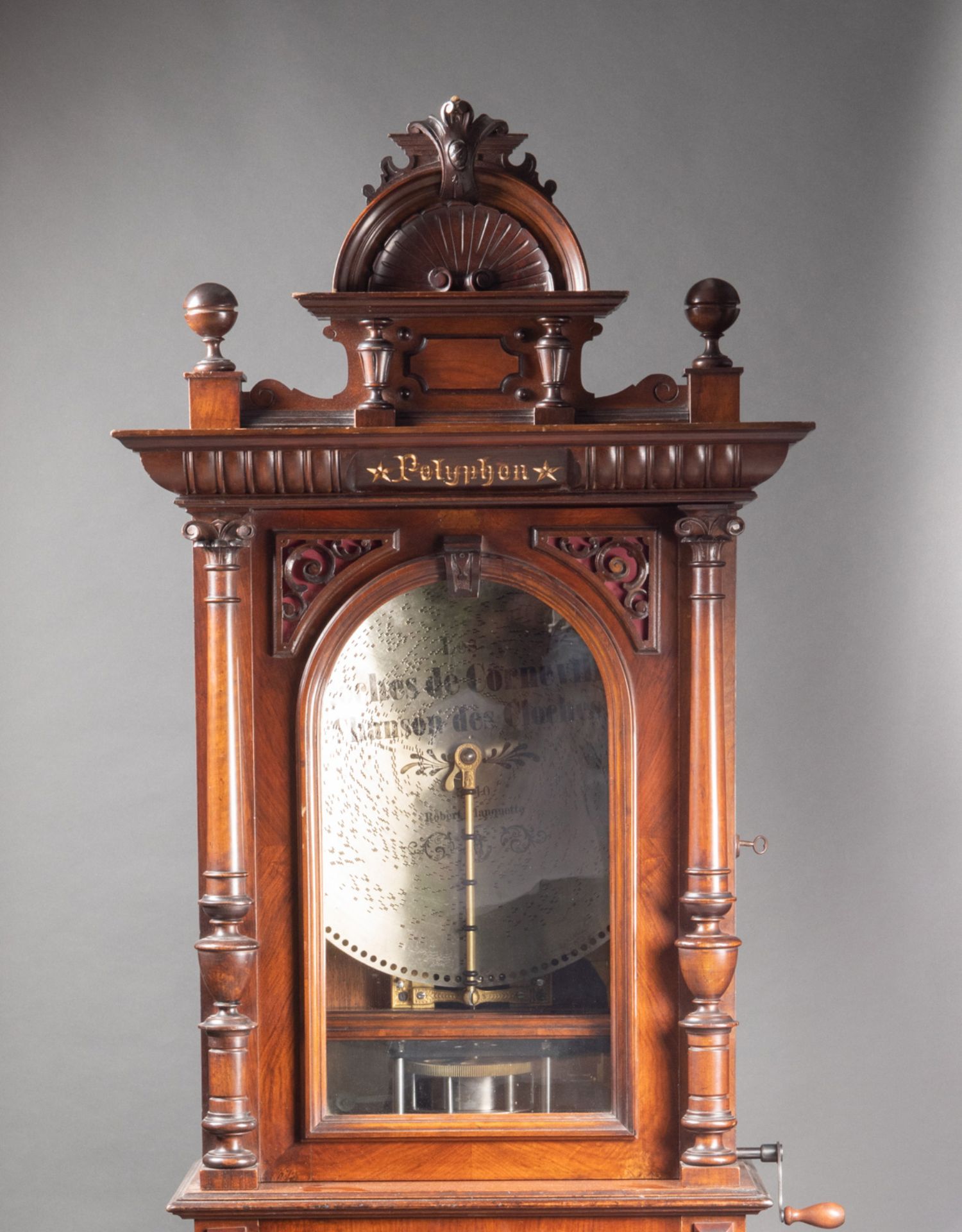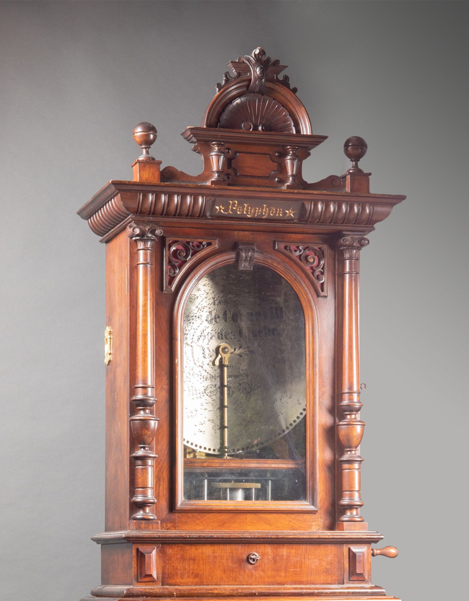 独角鹿西洋古董德国Polyphon精雕木质外盒大型唱盘投币立式音乐柜
