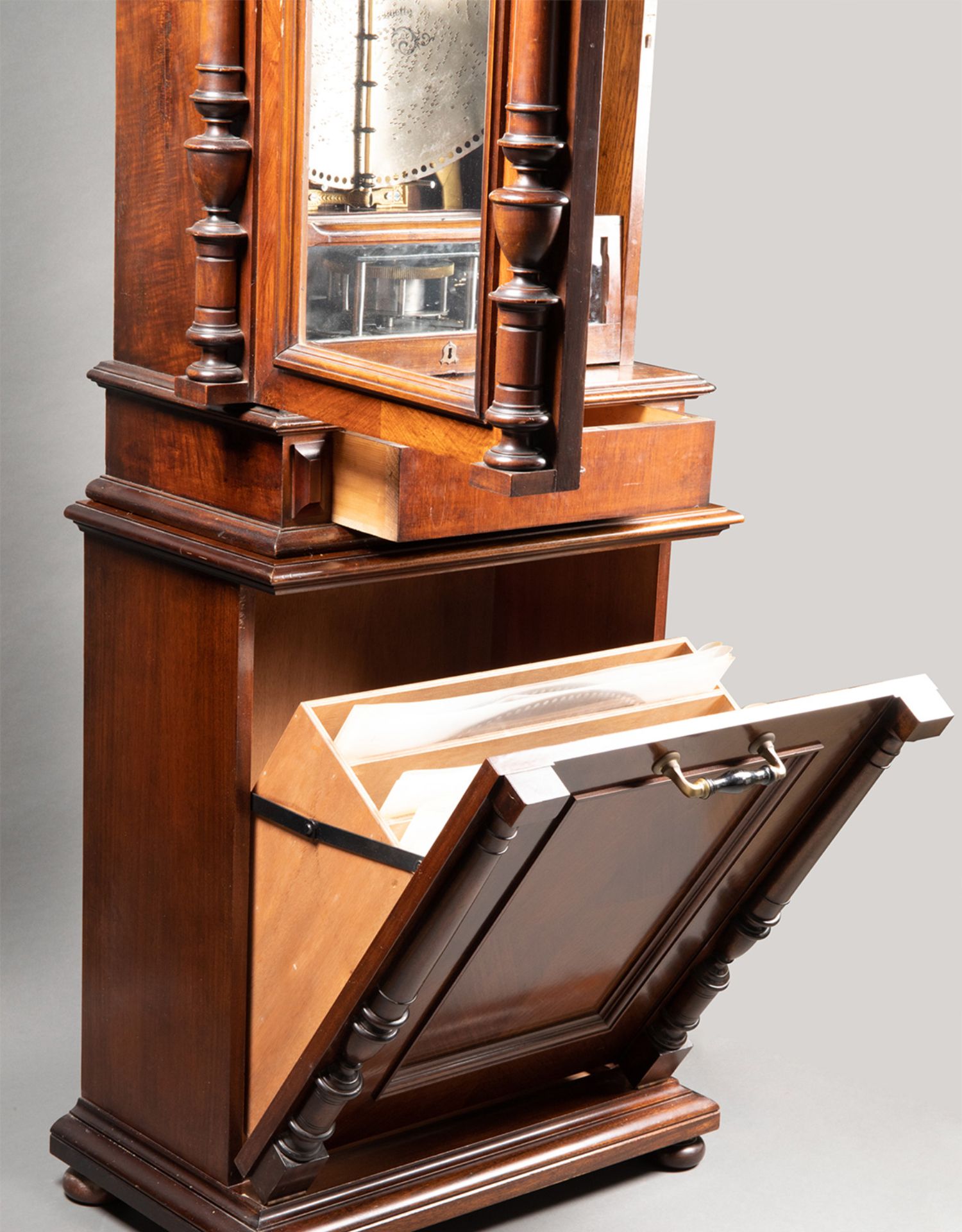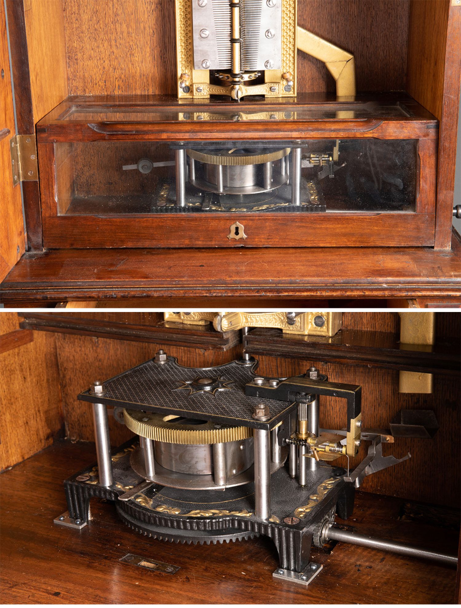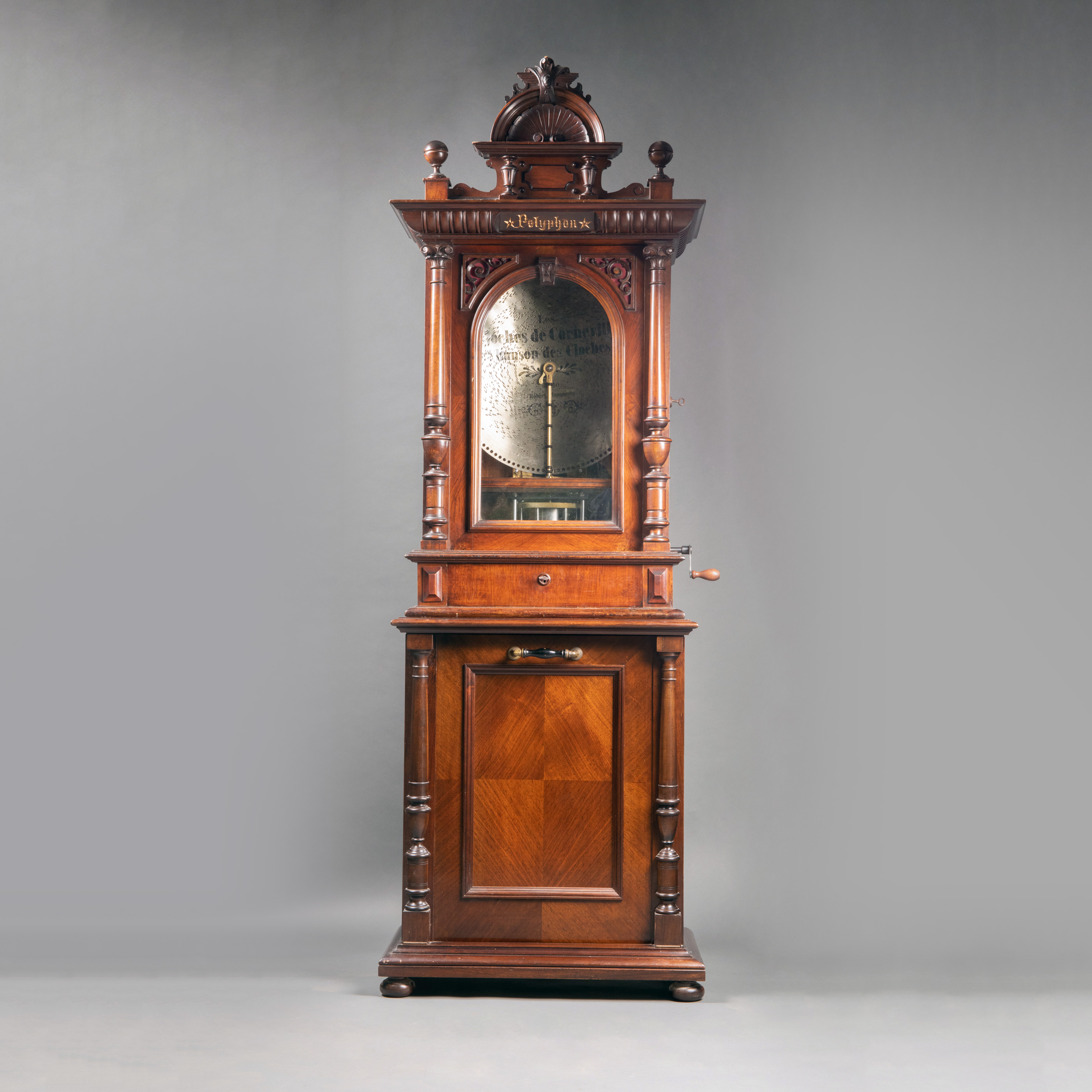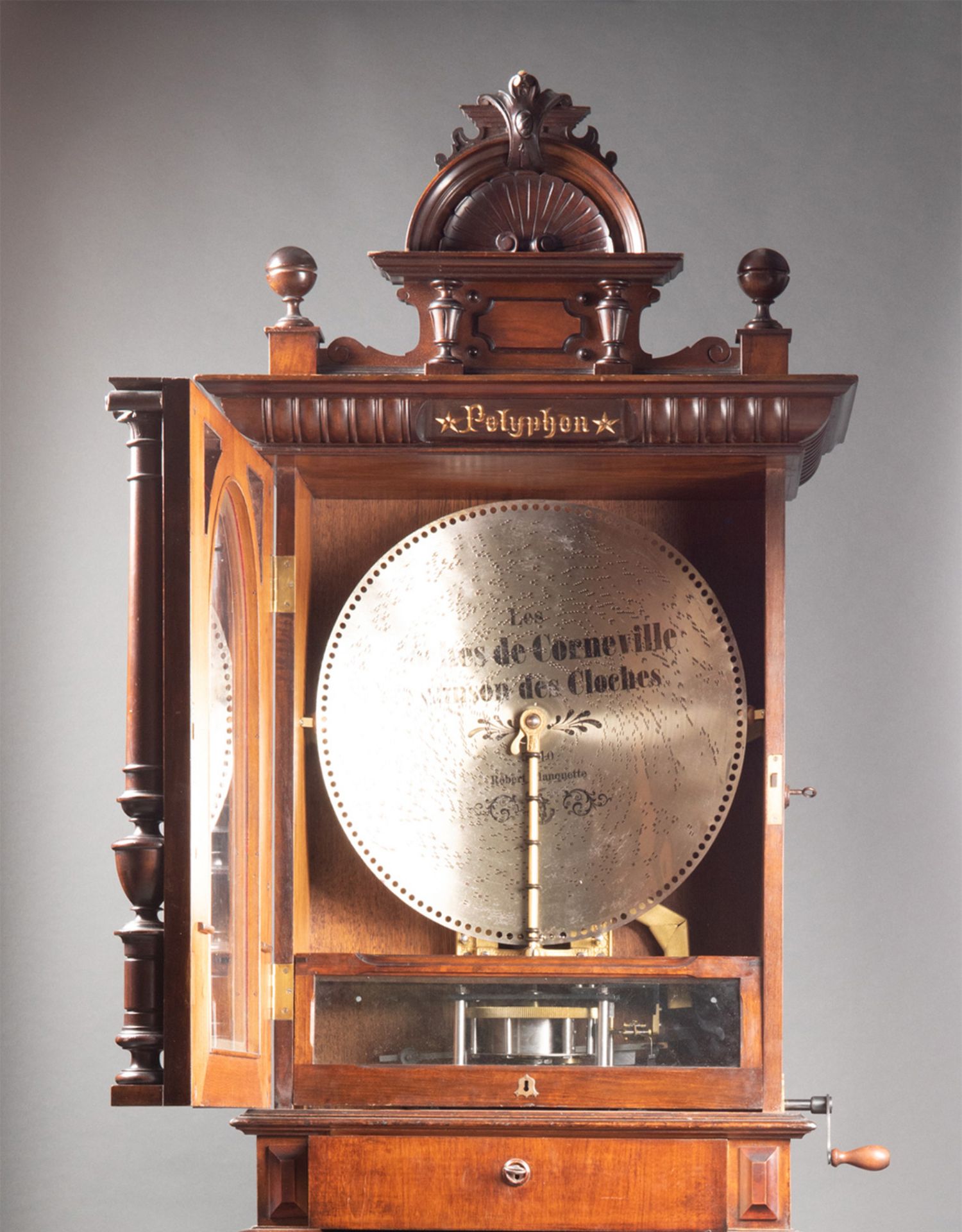 独角鹿西洋古董德国Polyphon精雕木质外盒大型唱盘投币立式音乐柜