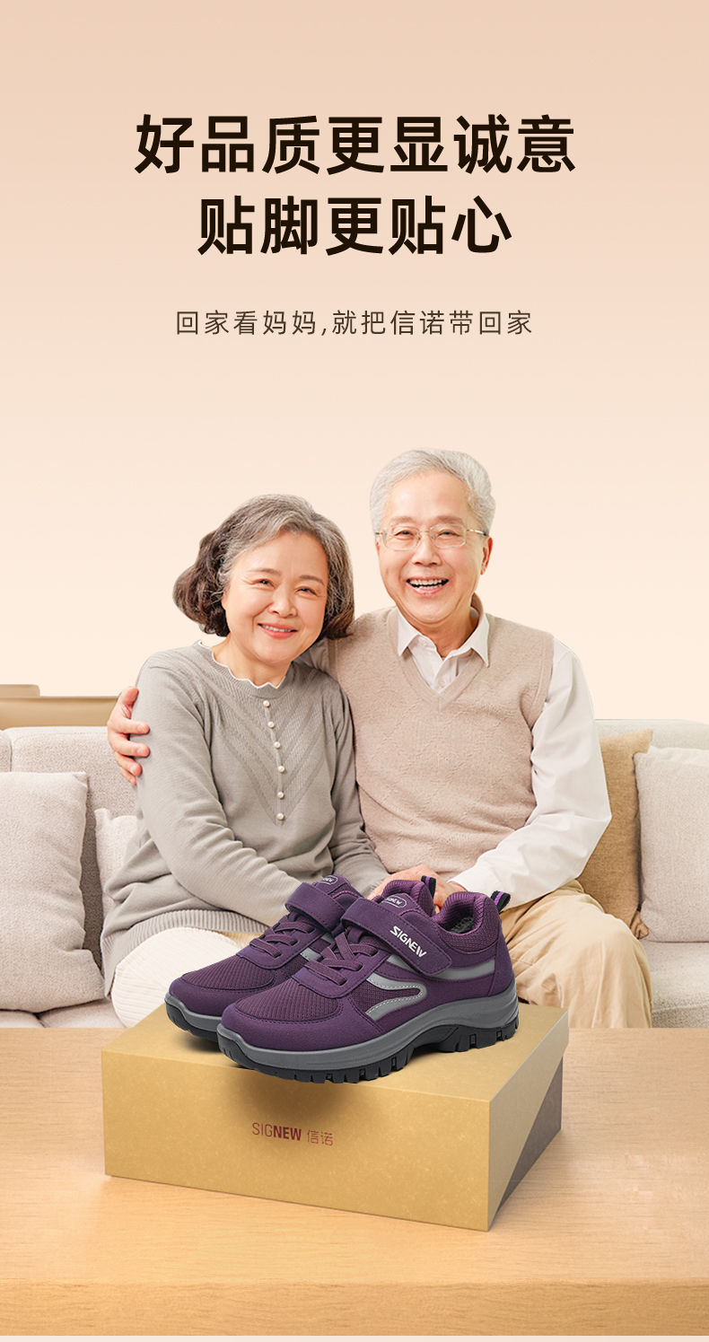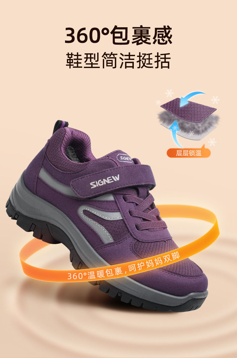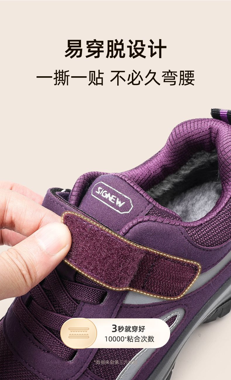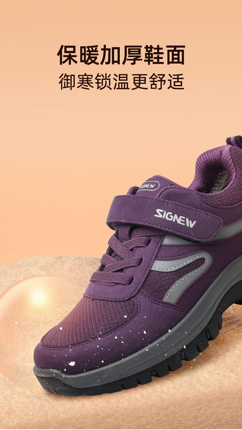 信诺舒适软底运动休闲鞋加绒妈妈棉鞋2024冬季新款女鞋厚底老人鞋M959-X21H