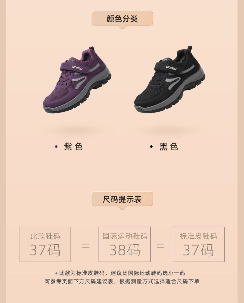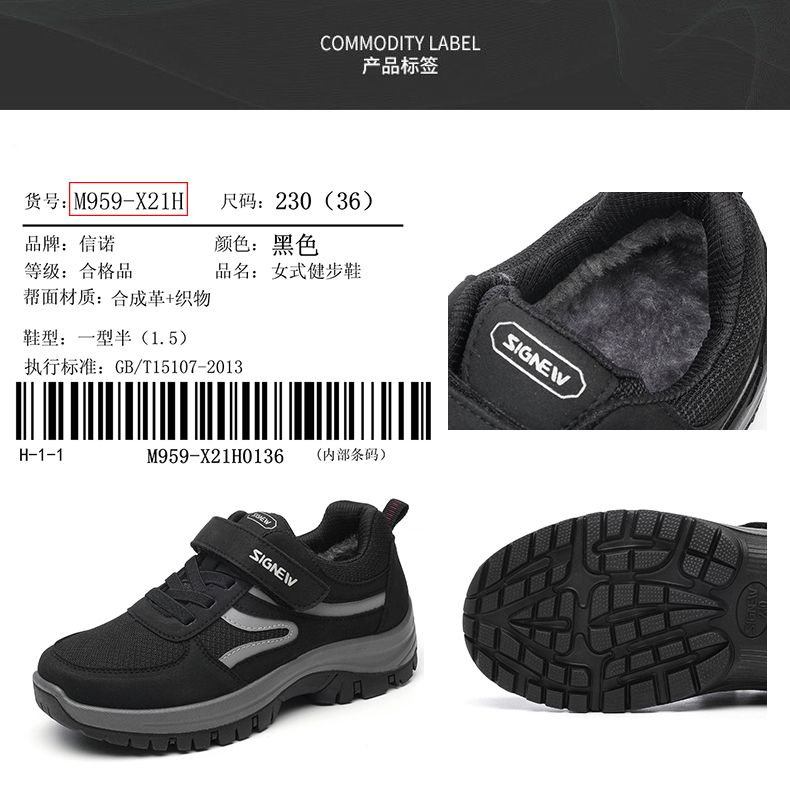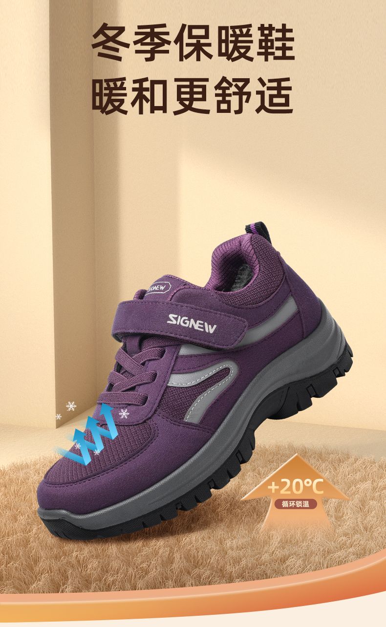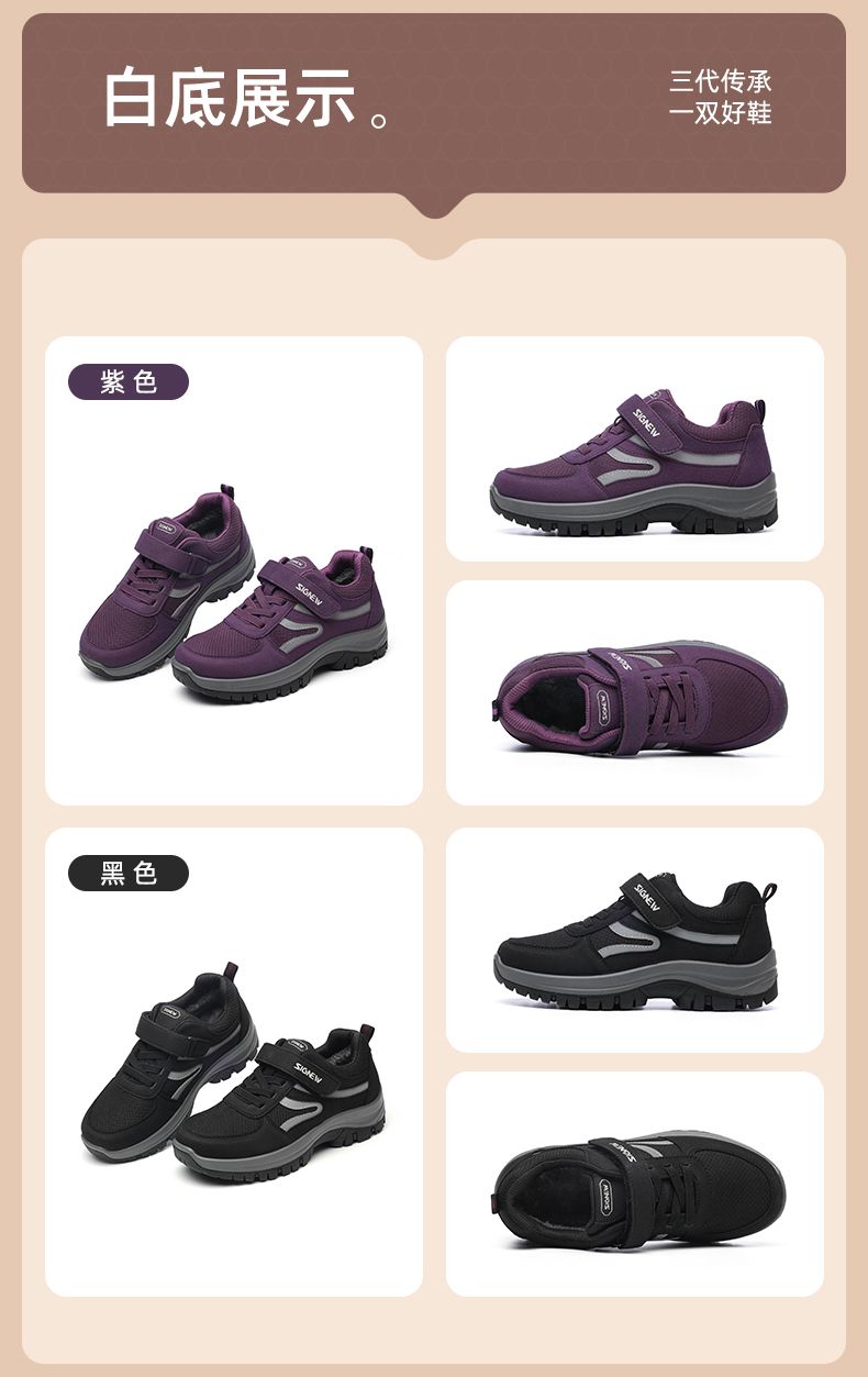 信诺舒适软底运动休闲鞋加绒妈妈棉鞋2024冬季新款女鞋厚底老人鞋M959-X21H