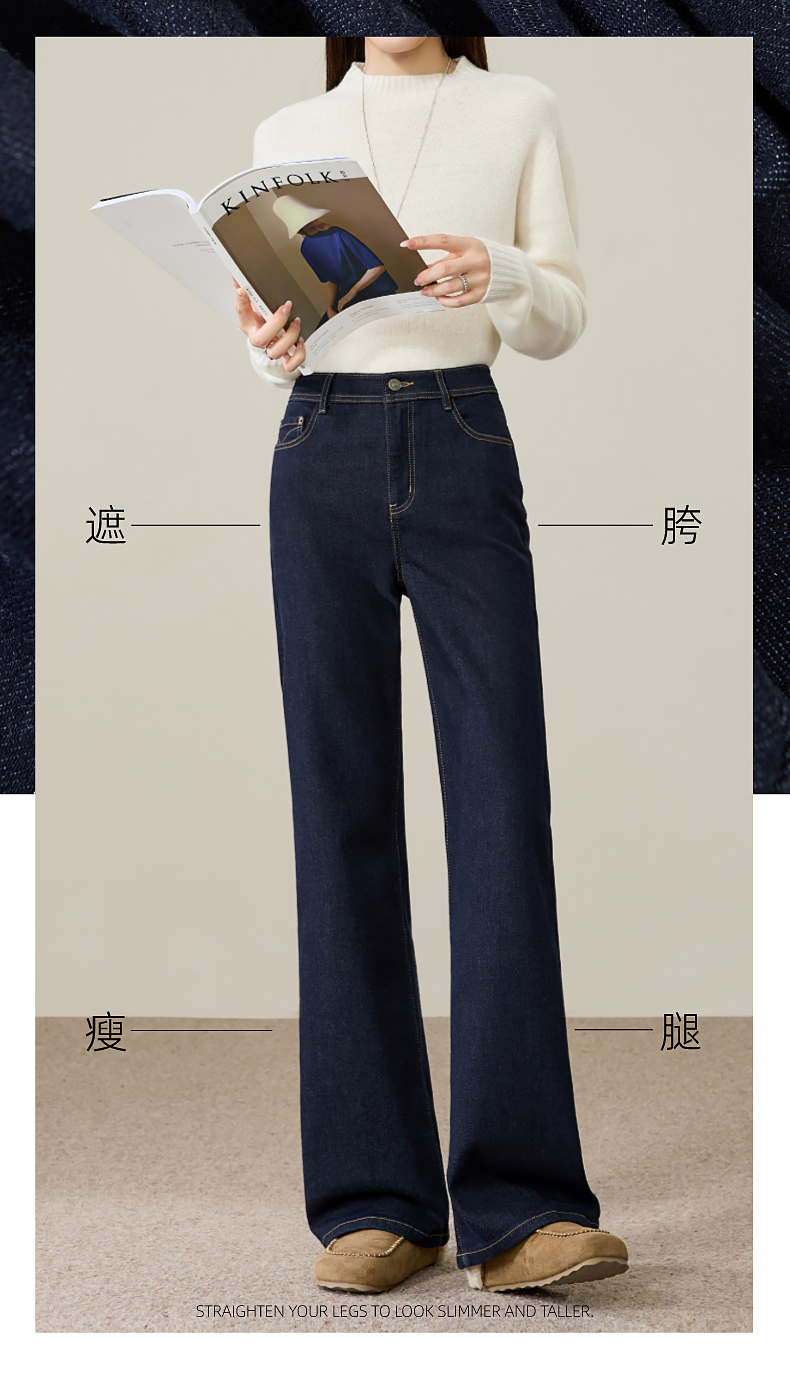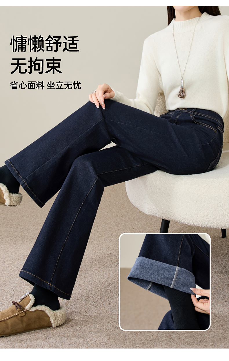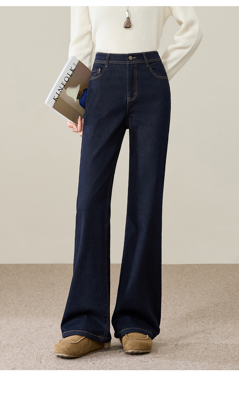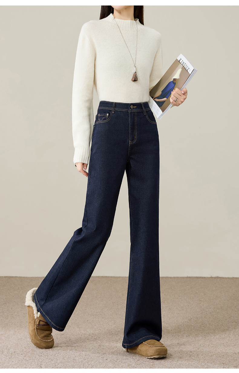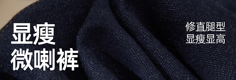 【初春-奢品-羊毛-微喇牛仔】逸阳春季高腰绵羊毛显瘦深蓝色喇叭牛仔裤8235