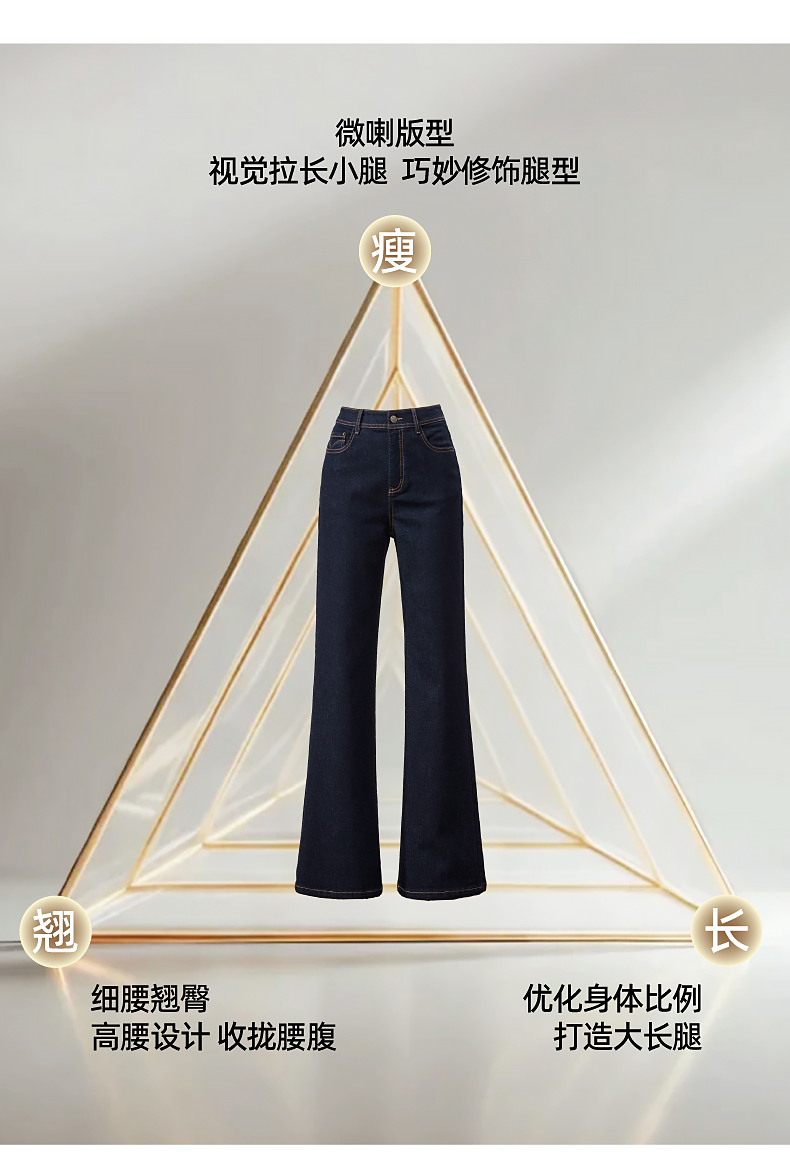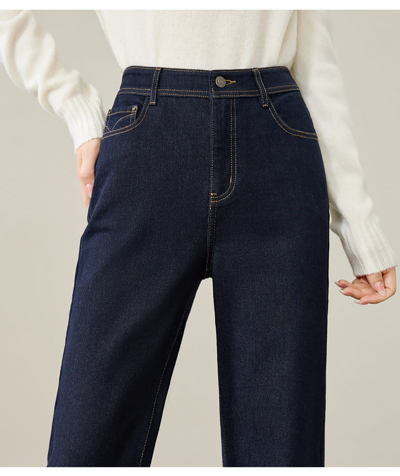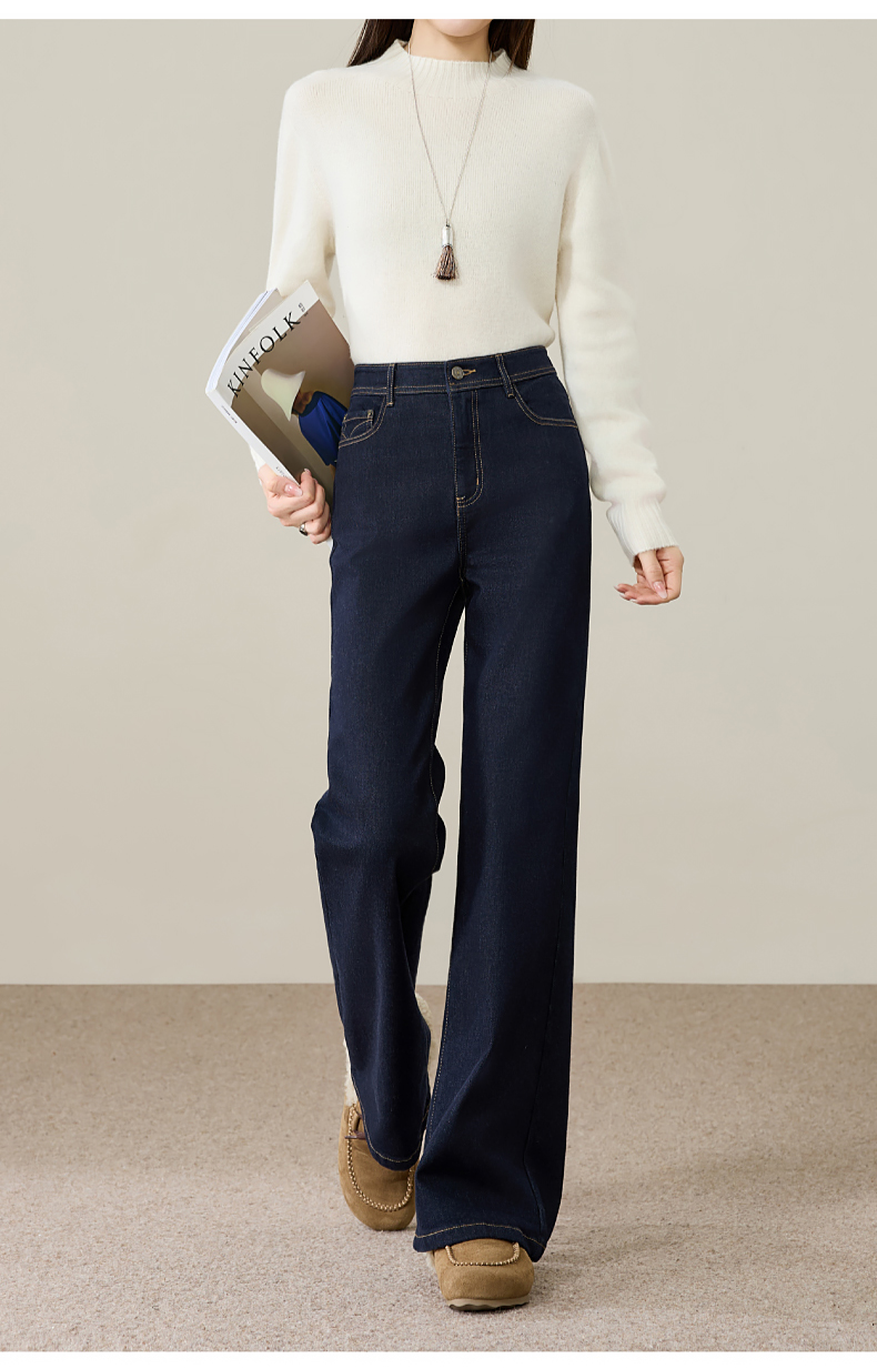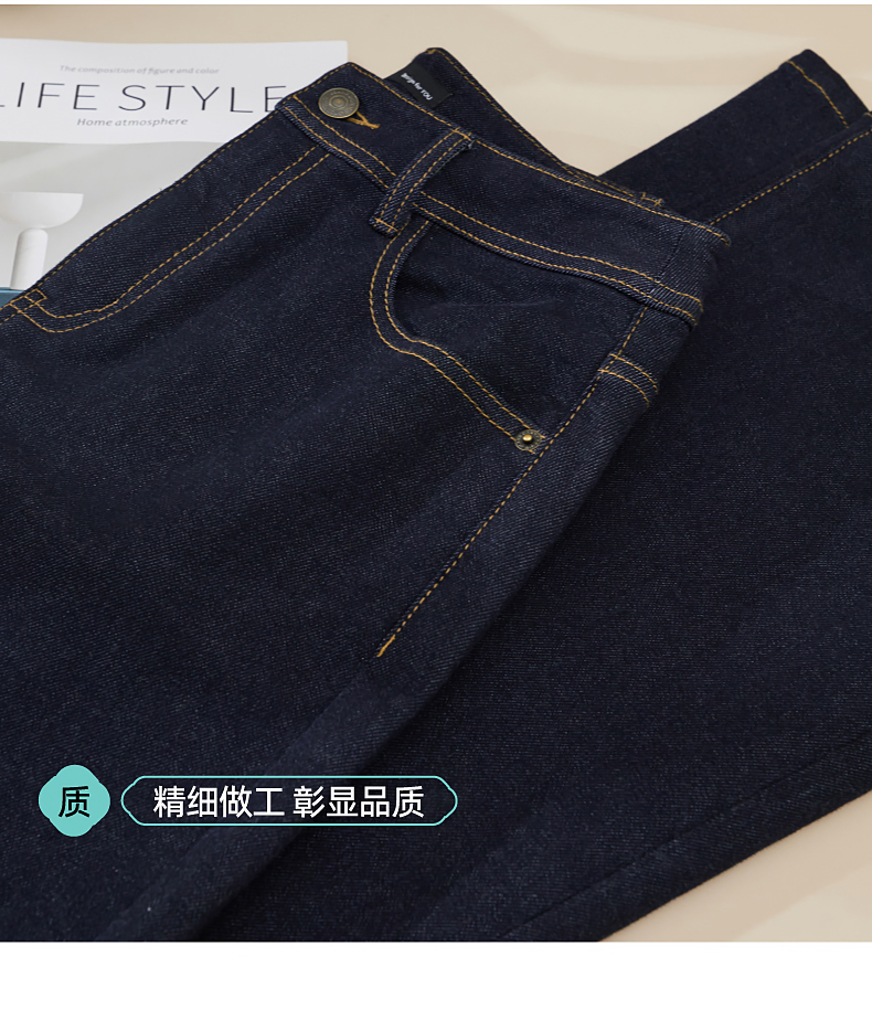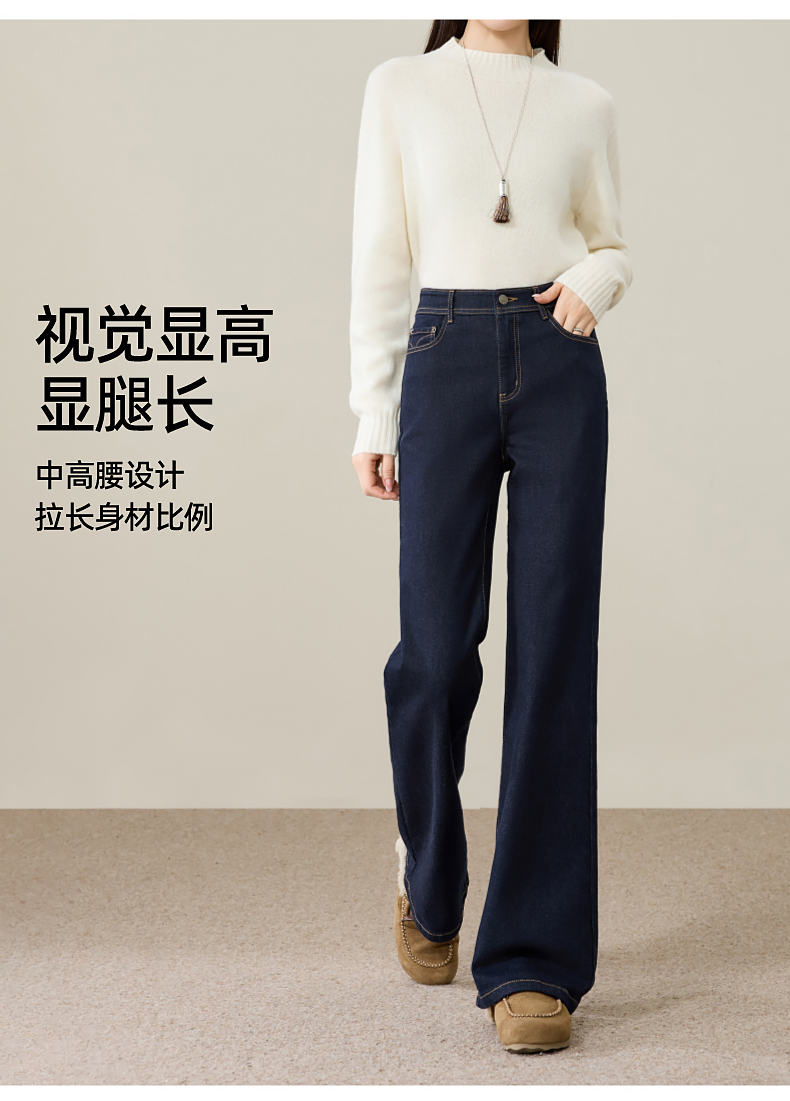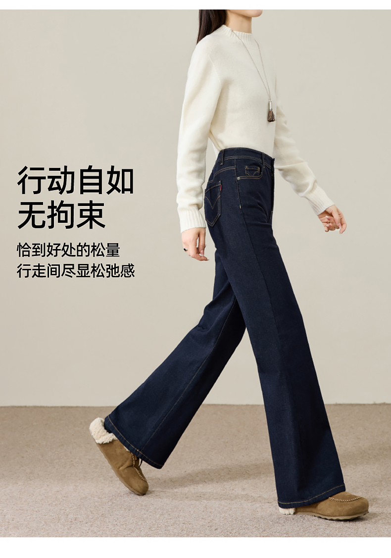 【初春-奢品-羊毛-微喇牛仔】逸阳春季高腰绵羊毛显瘦深蓝色喇叭牛仔裤8235