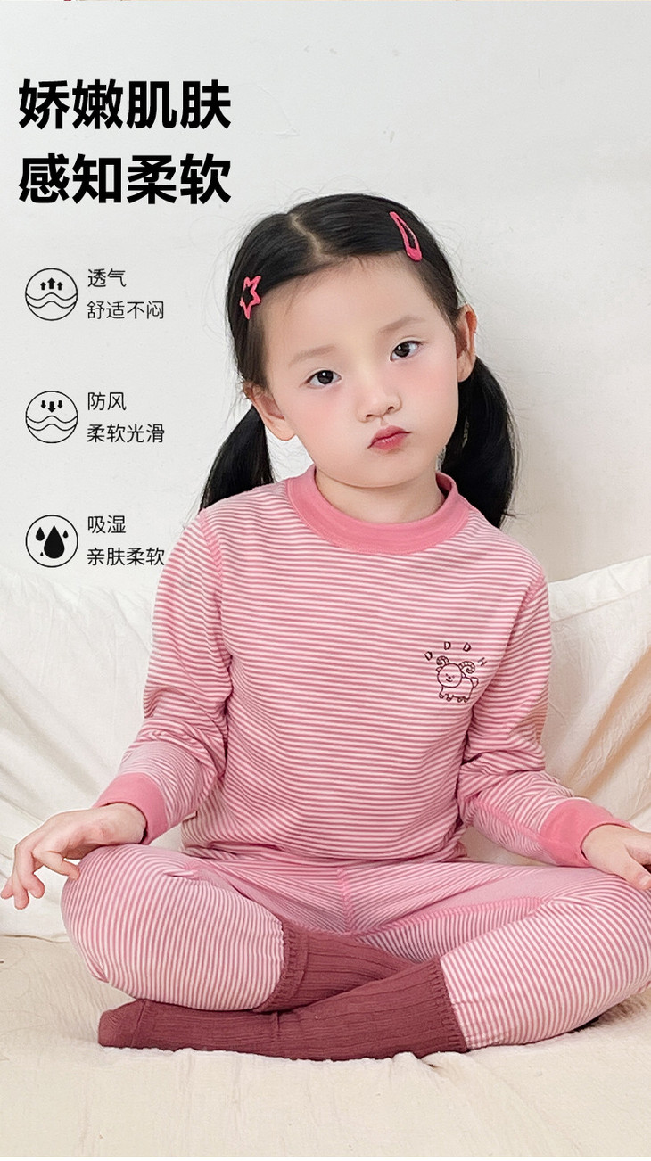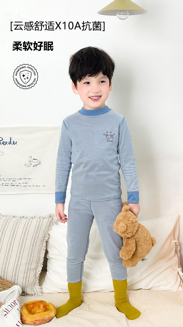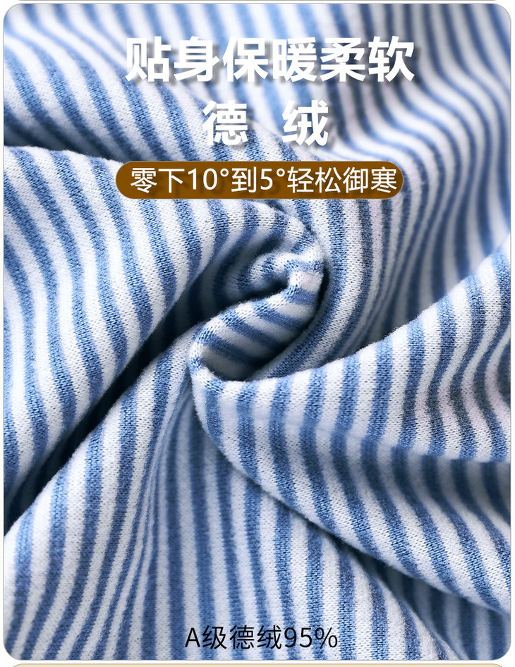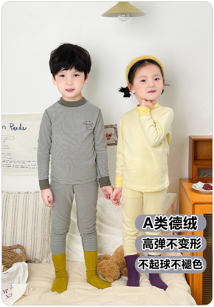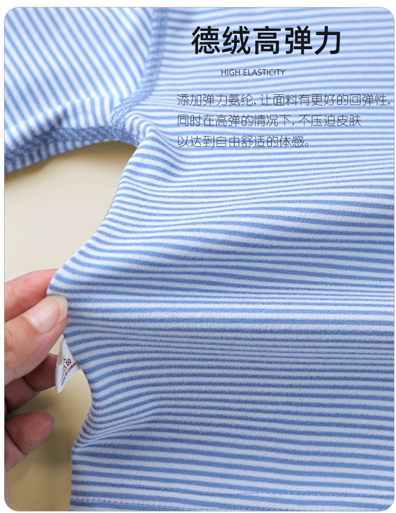 【男女孩加绒圆领秋衣】德绒儿童保暖上衣冬季条纹A类 抗菌打底衫内穿