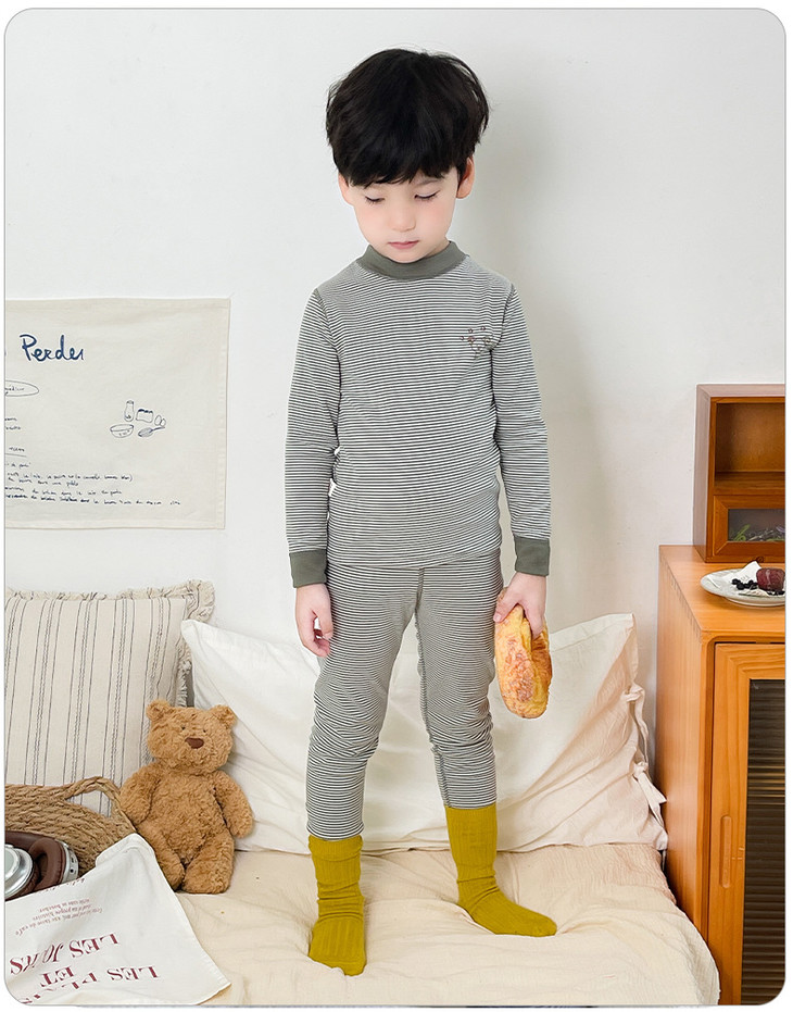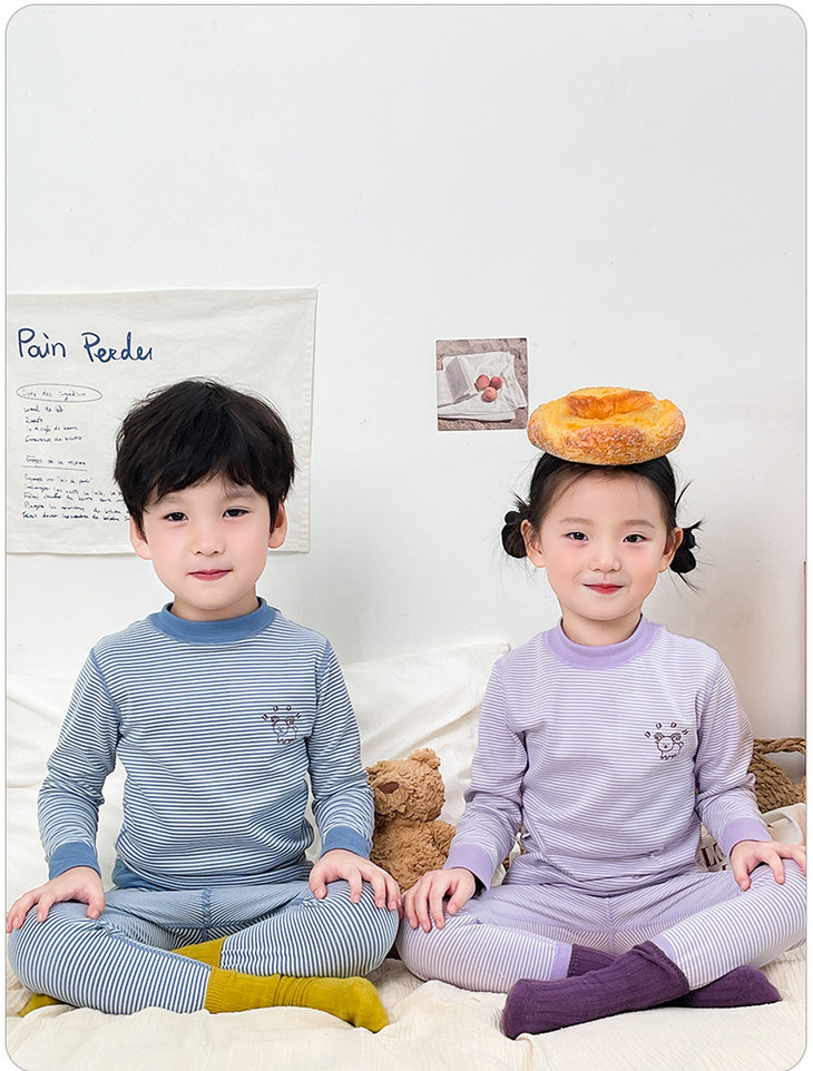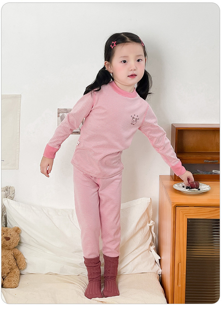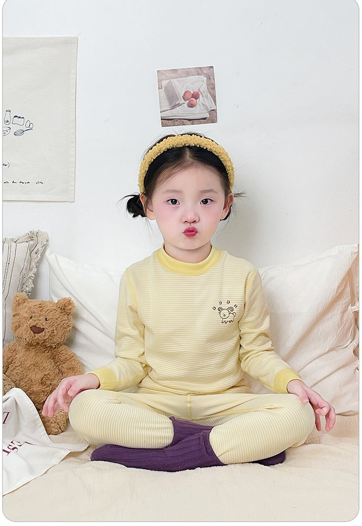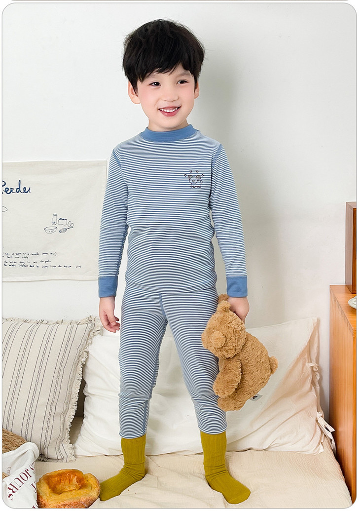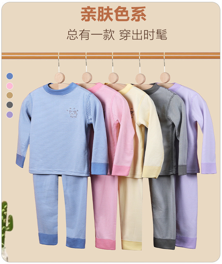 【男女孩加绒圆领秋衣】德绒儿童保暖上衣冬季条纹A类 抗菌打底衫内穿