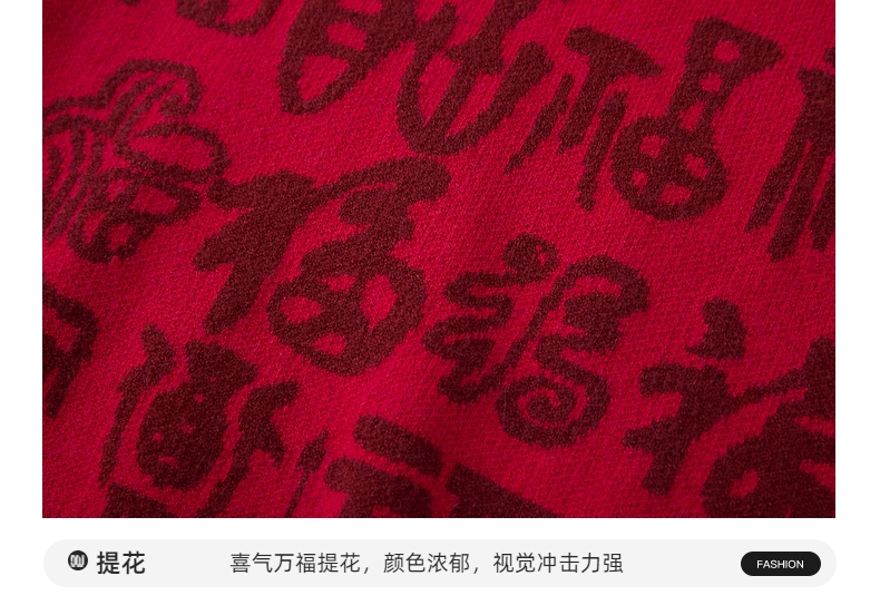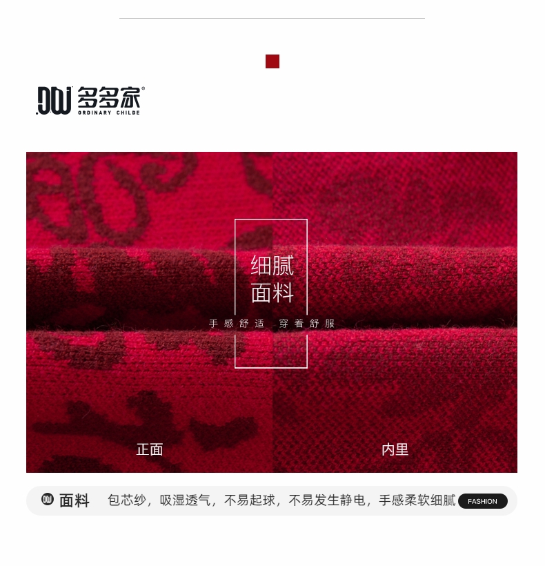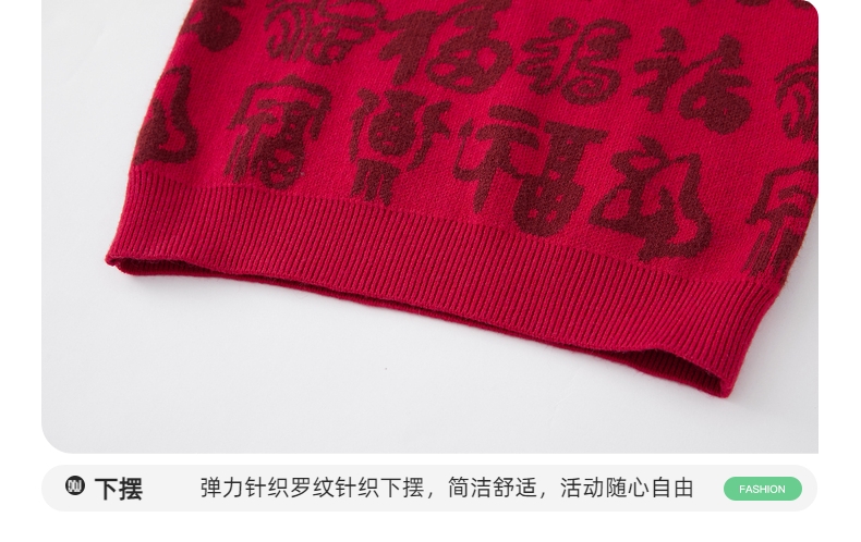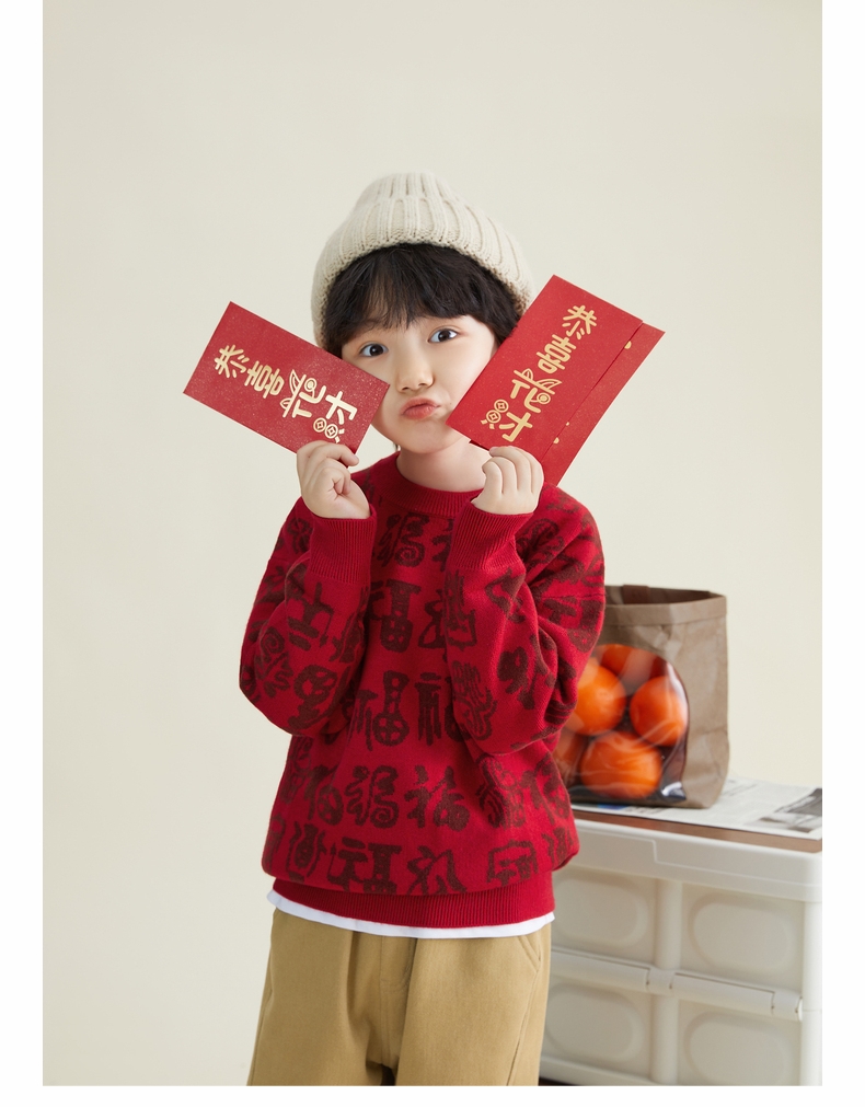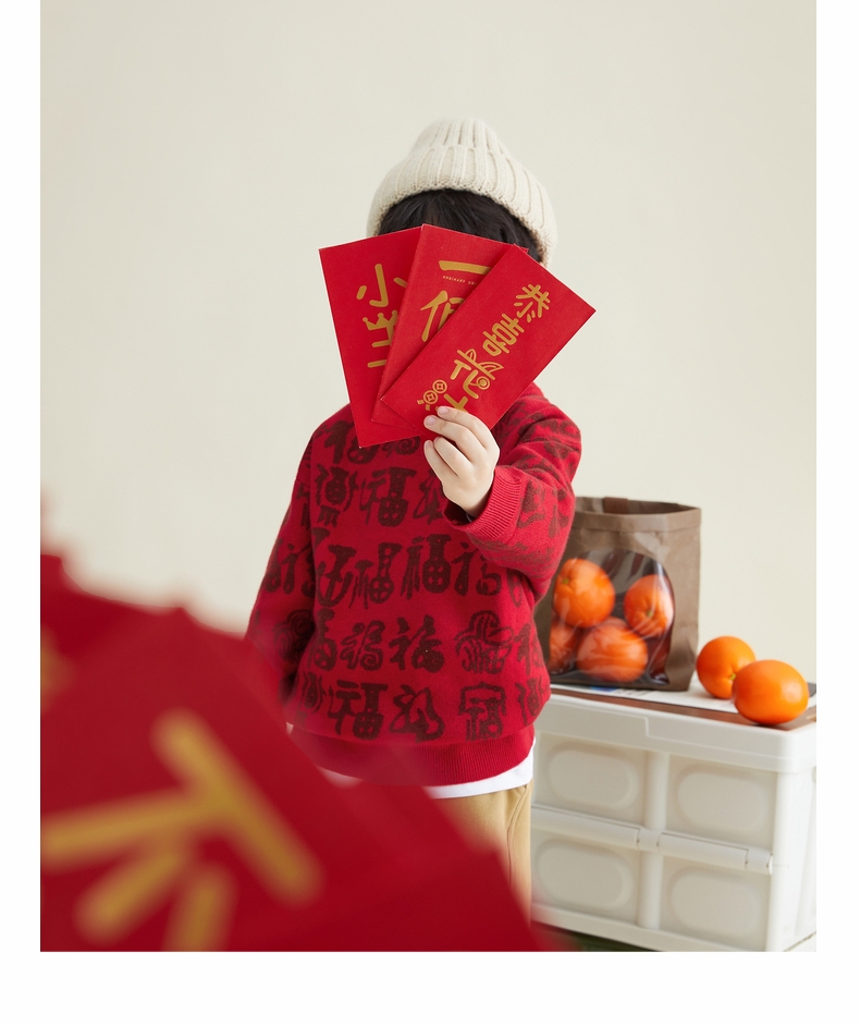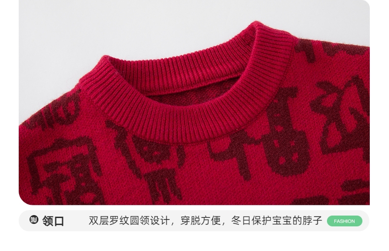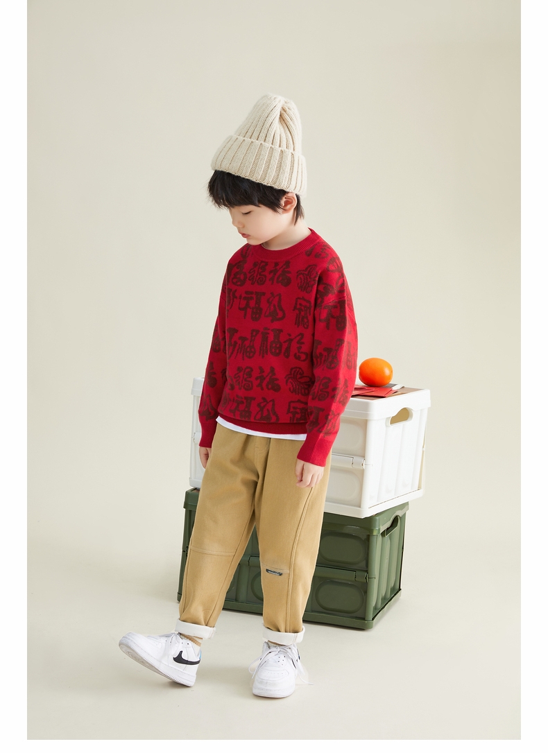 【团购价79.9-89.9】多多家男童毛衣红色年服2023新款福字满印儿童毛线衫中大冬上衣5726