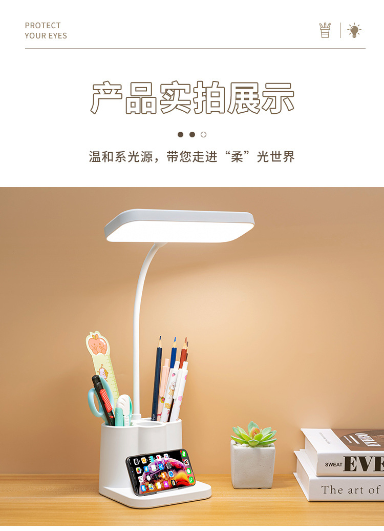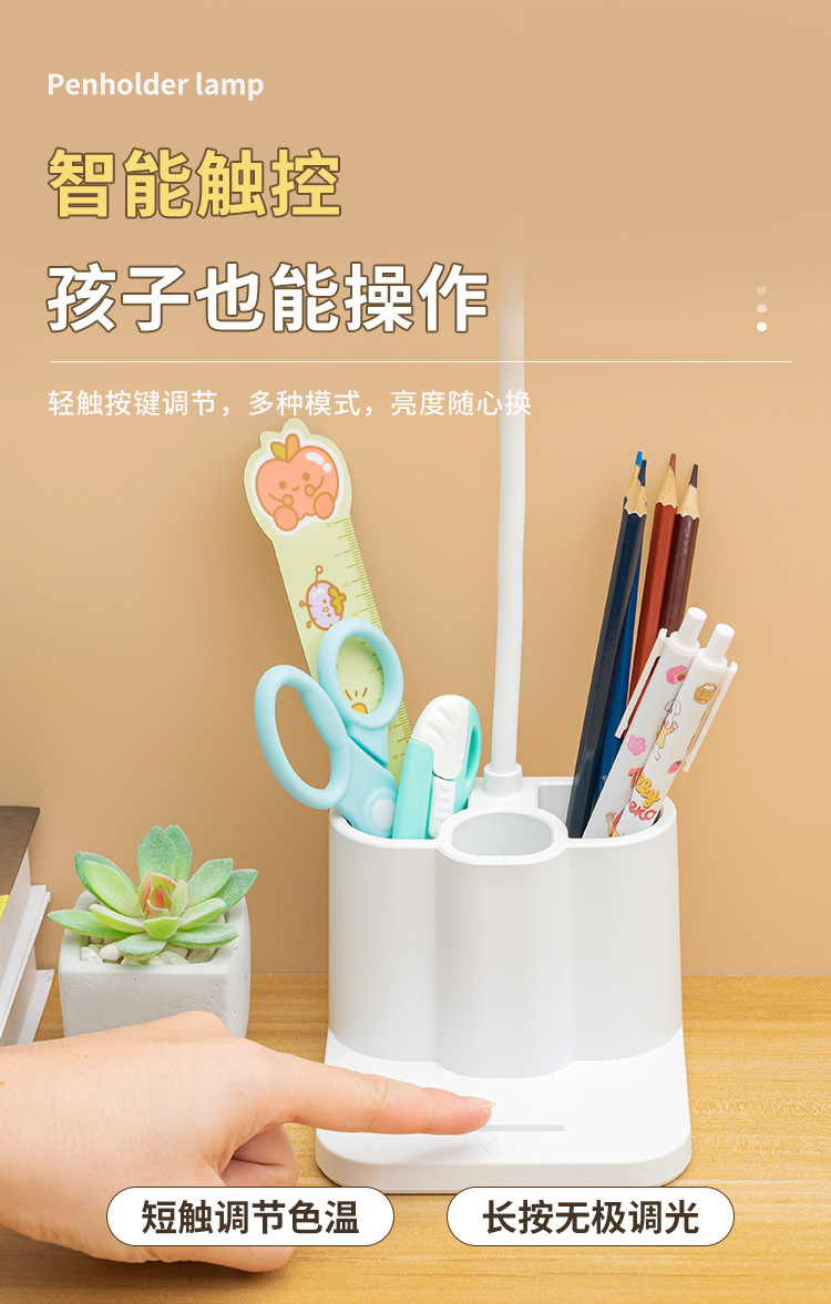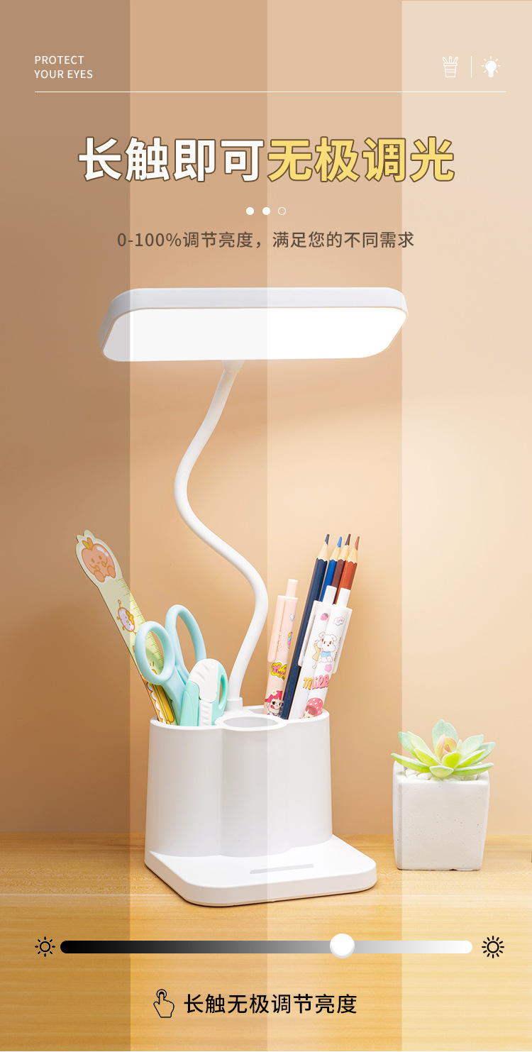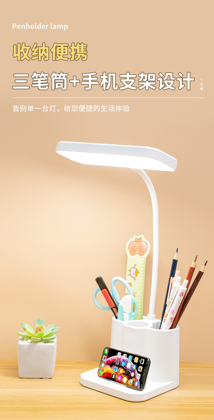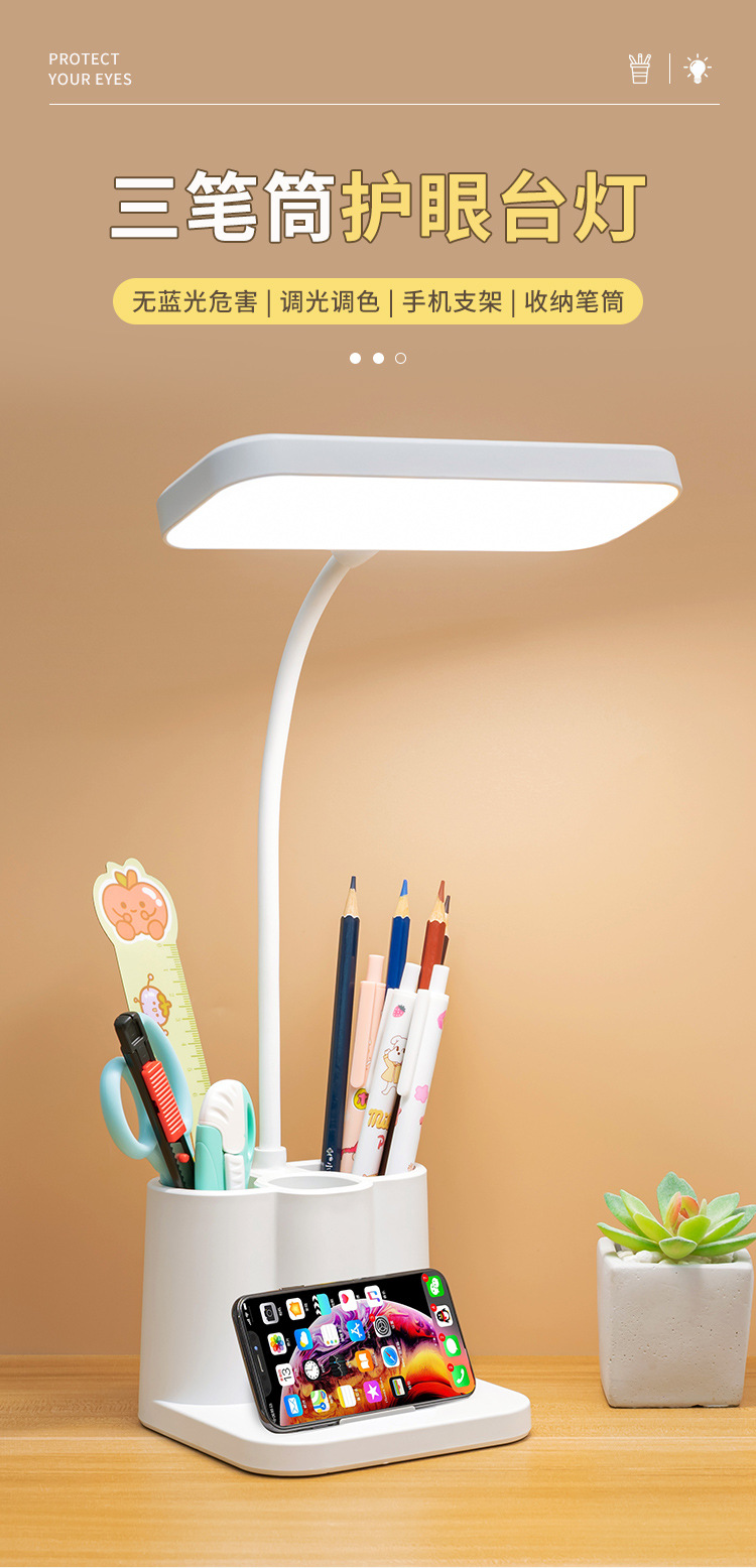 「柔光更护眼!三色温可调光」台灯创意智能学生宿舍书桌护眼灯 床头阅读led笔筒灯学生礼品生活电器