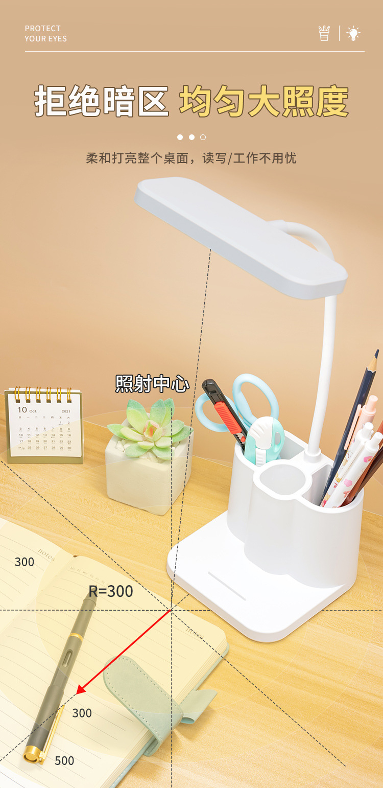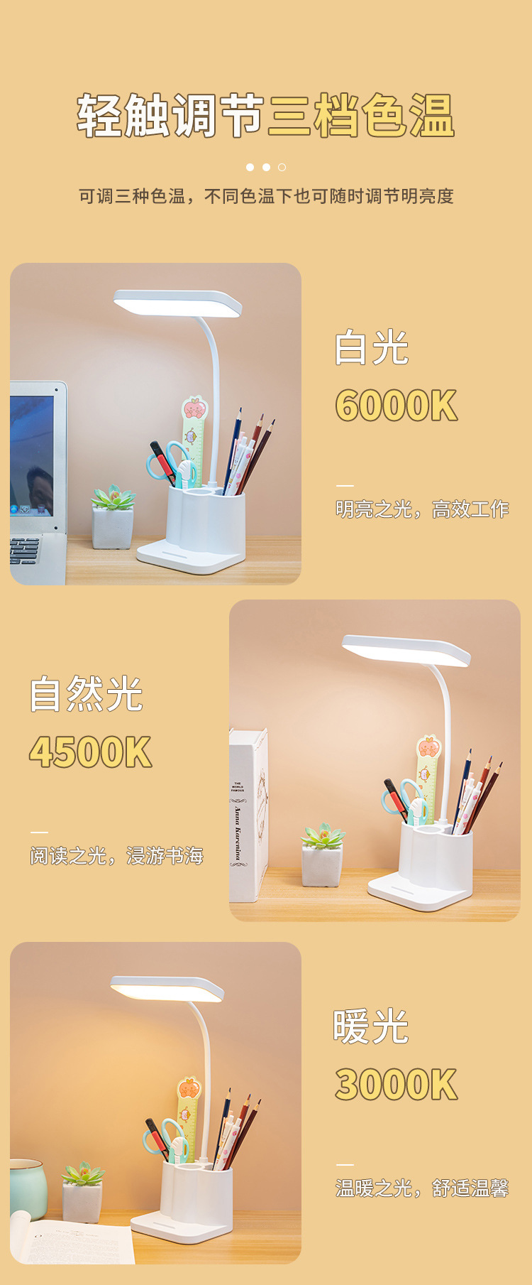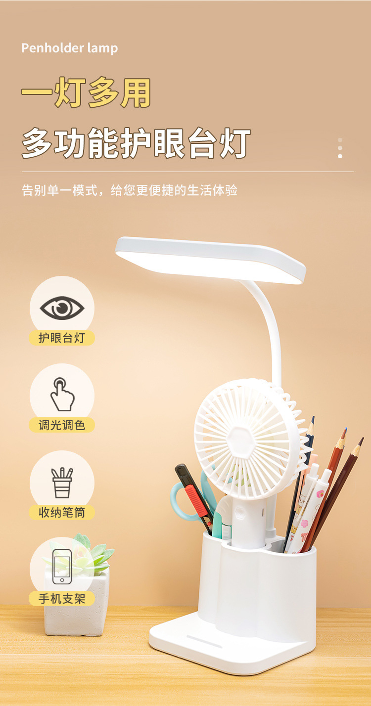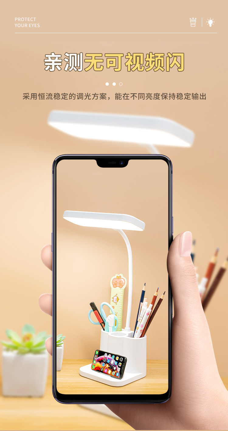 「柔光更护眼!三色温可调光」台灯创意智能学生宿舍书桌护眼灯 床头阅读led笔筒灯学生礼品生活电器