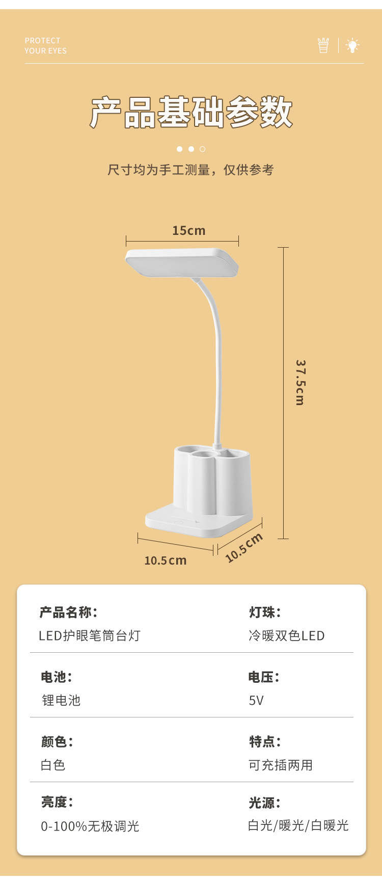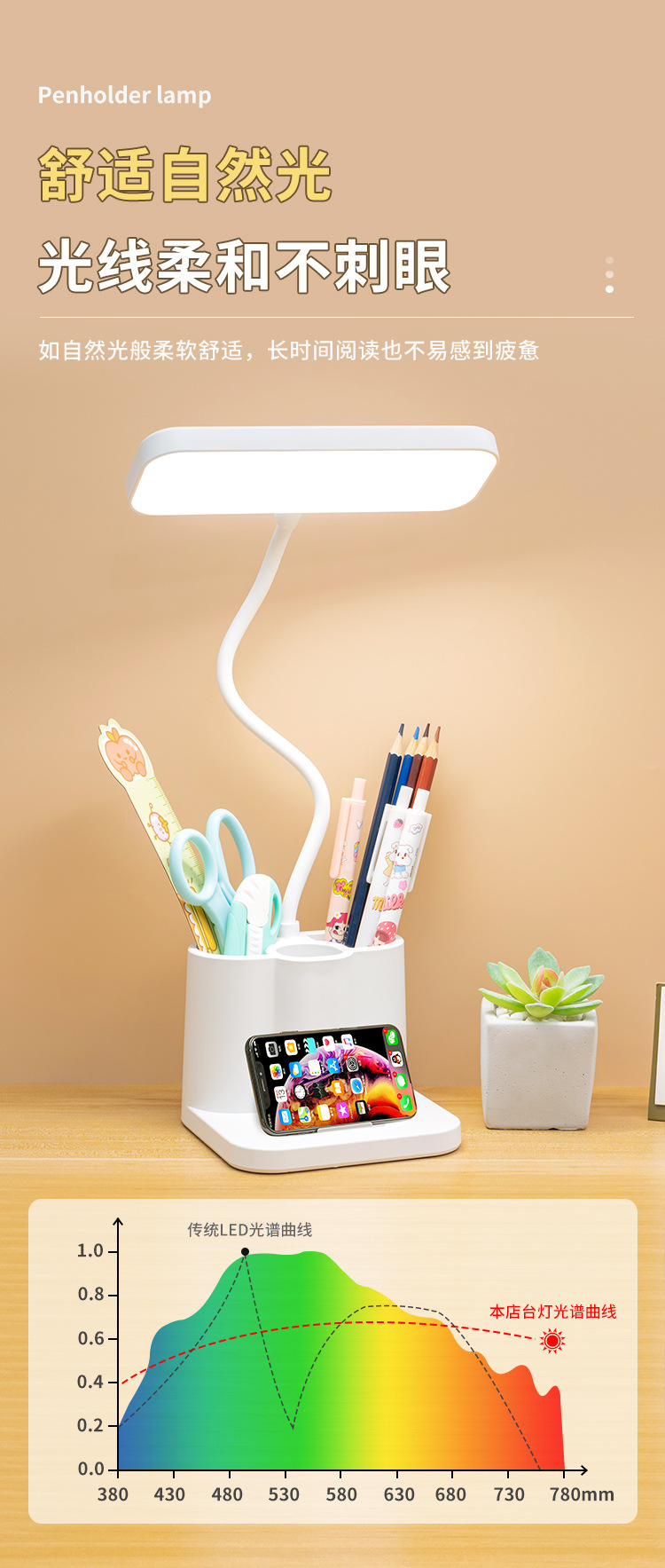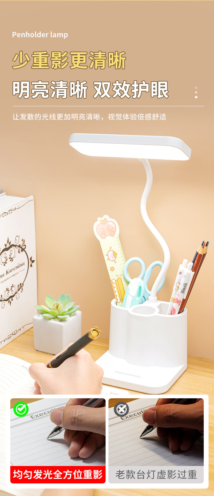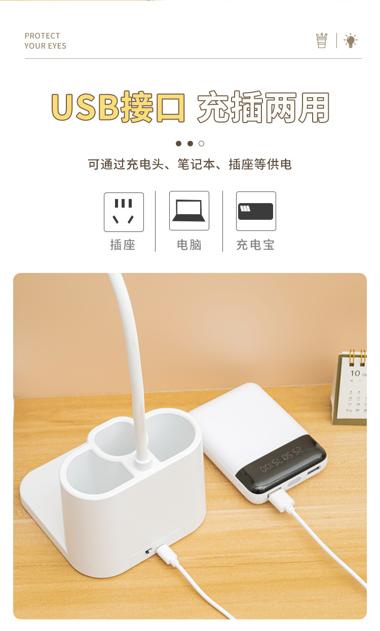 「柔光更护眼!三色温可调光」台灯创意智能学生宿舍书桌护眼灯 床头阅读led笔筒灯学生礼品生活电器