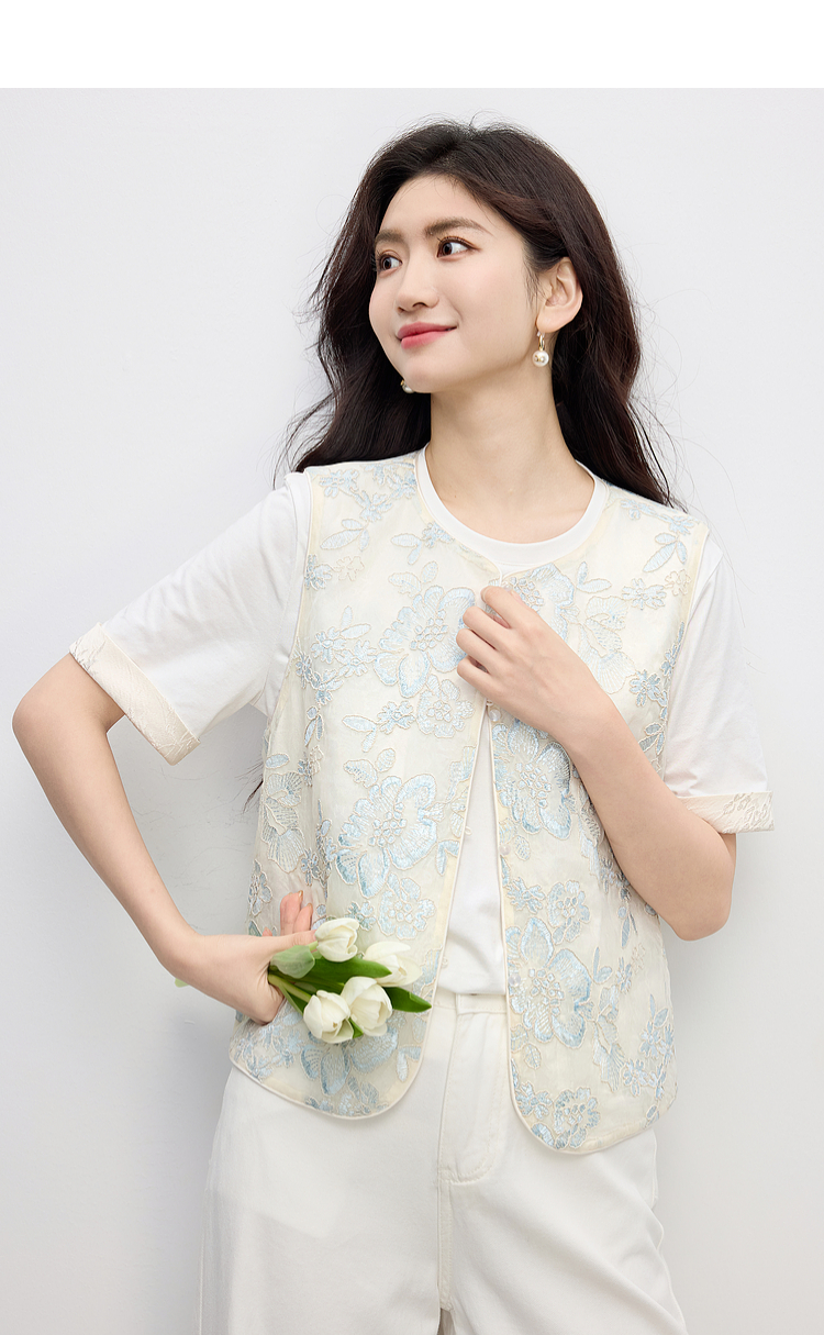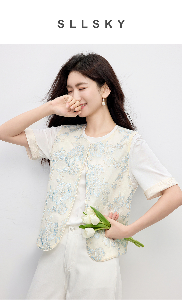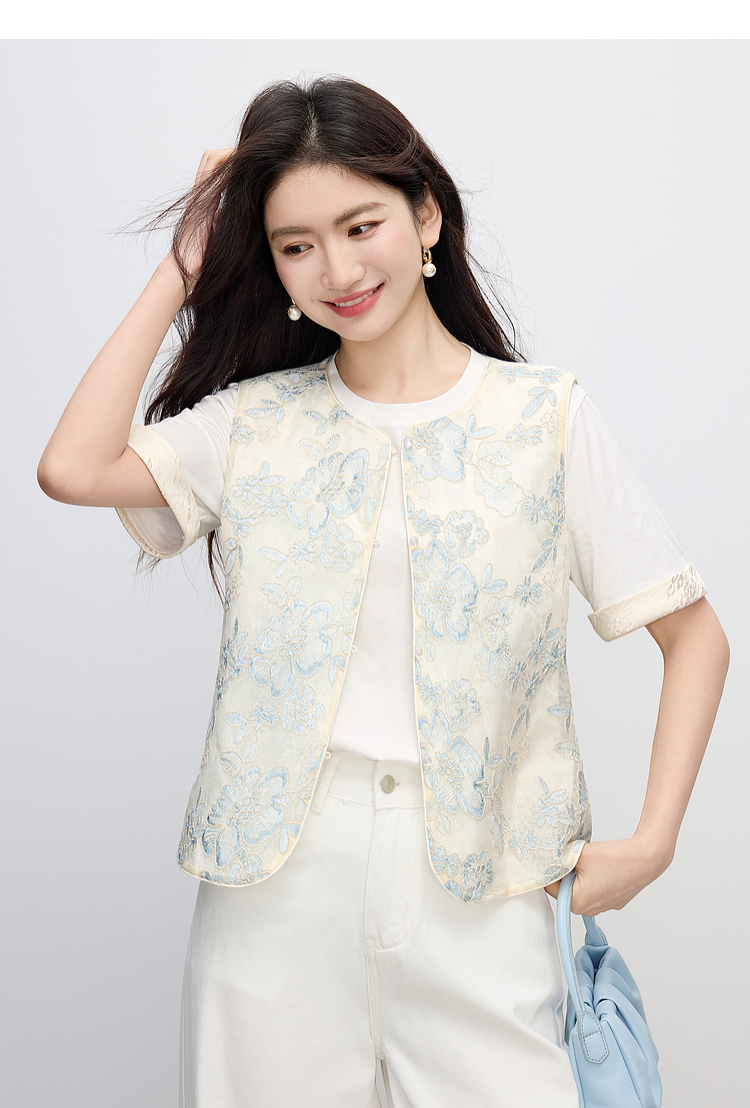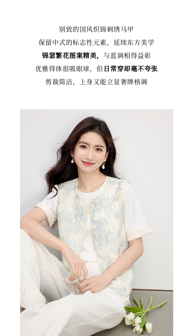 熙世界夏天外搭国风马甲女薄款高级感织锦提花背心新中式坎肩上衣