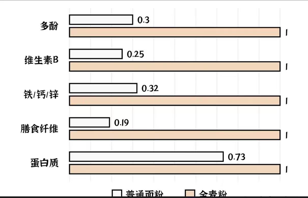 还有矿物质和抗氧化的多酚等,是其他面粉的3-4倍,也属于膳食指南里推荐摄入的全谷物食品。