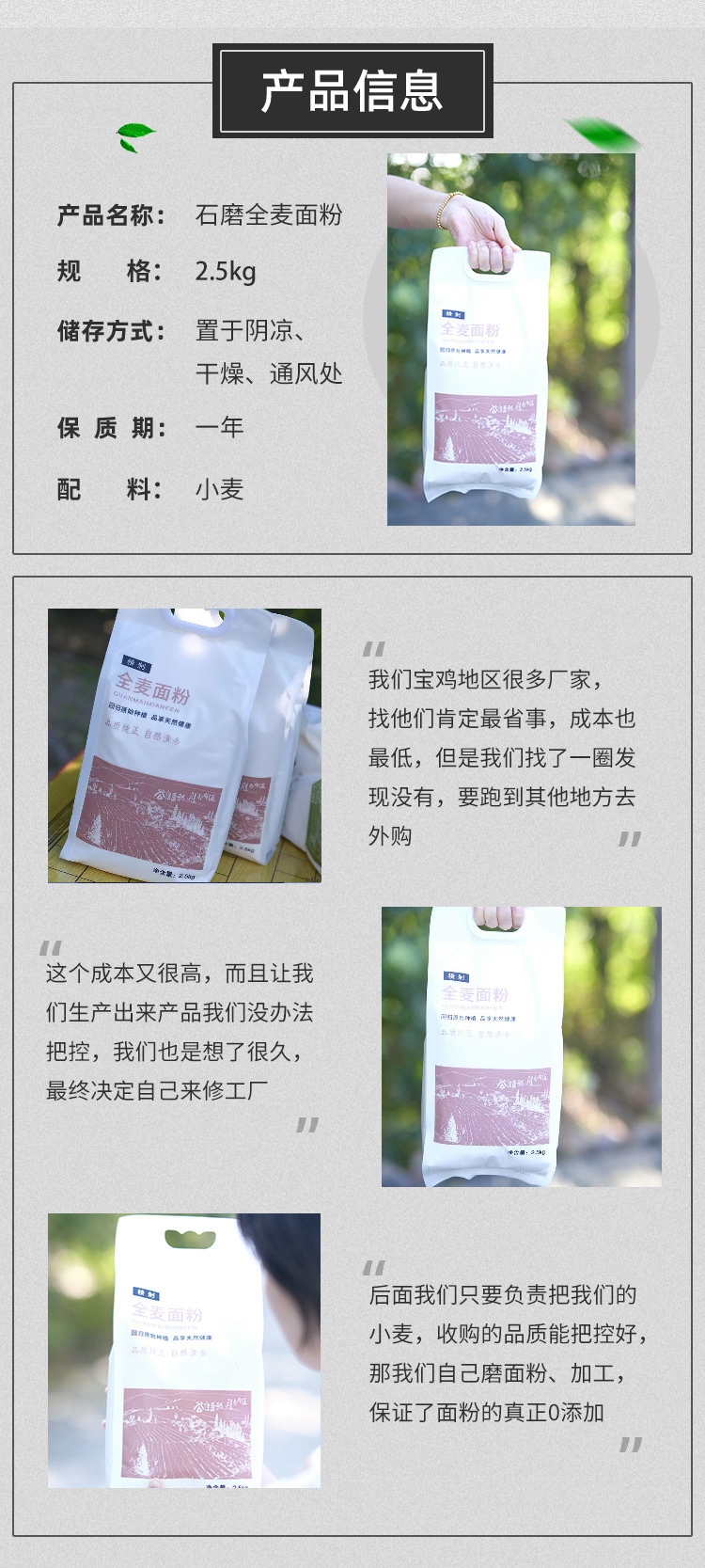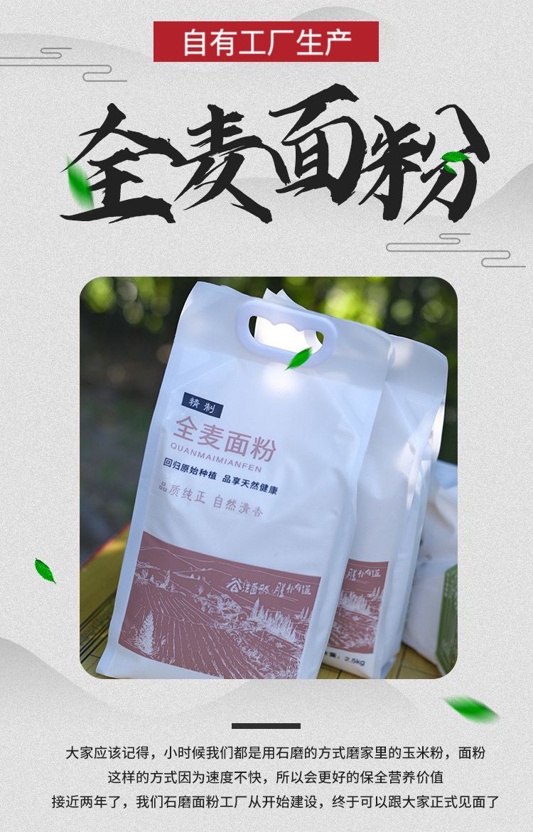 【石磨全麦面粉】古法石磨,原始种植!低温低速,营养流失最少!保留膳食纤维,饱腹感强!麦香味浓郁,可做任何面食,天然健康!