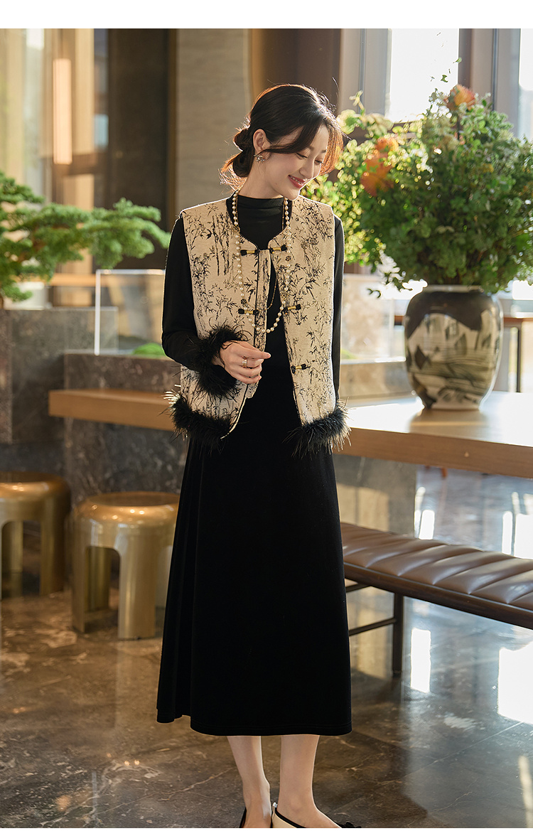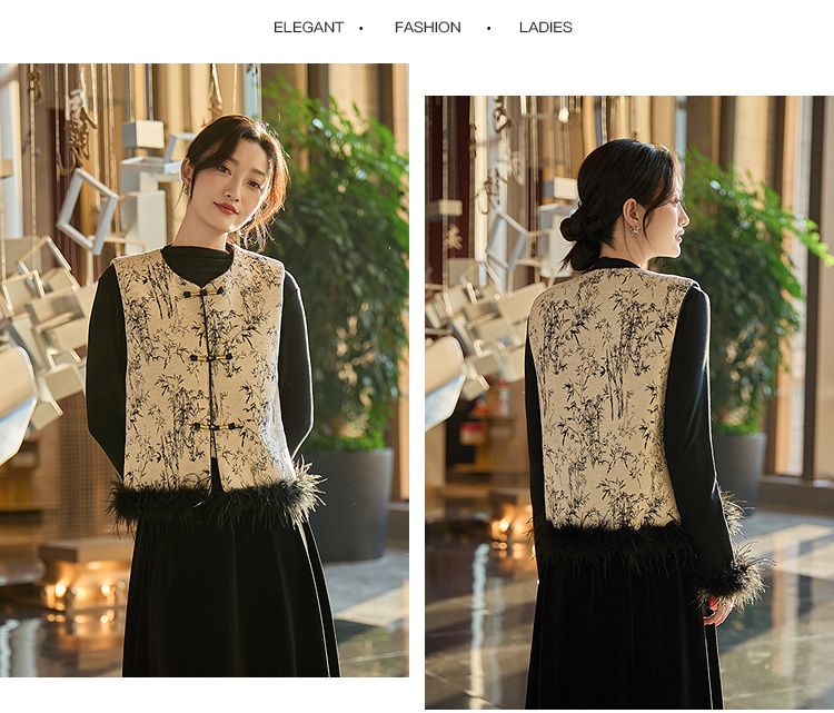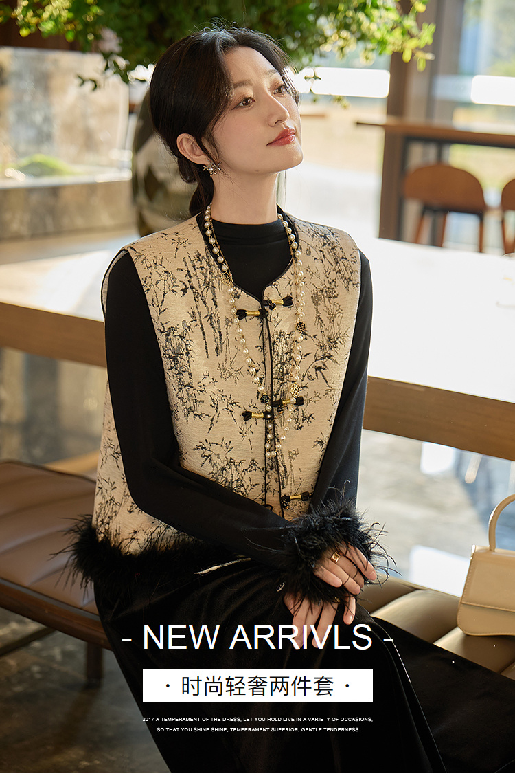 奢姿大码女装2025冬季减龄山水画设计流苏两件套胖妹妹时尚套装9954954060A