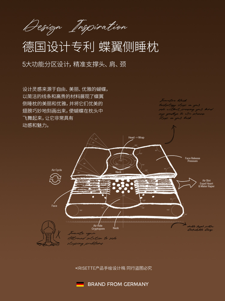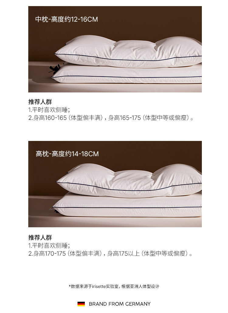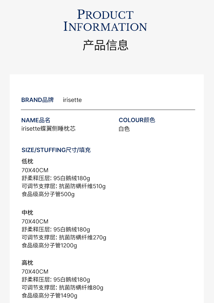 品牌直发 irisette 双层侧睡枕 分区蝶翼枕