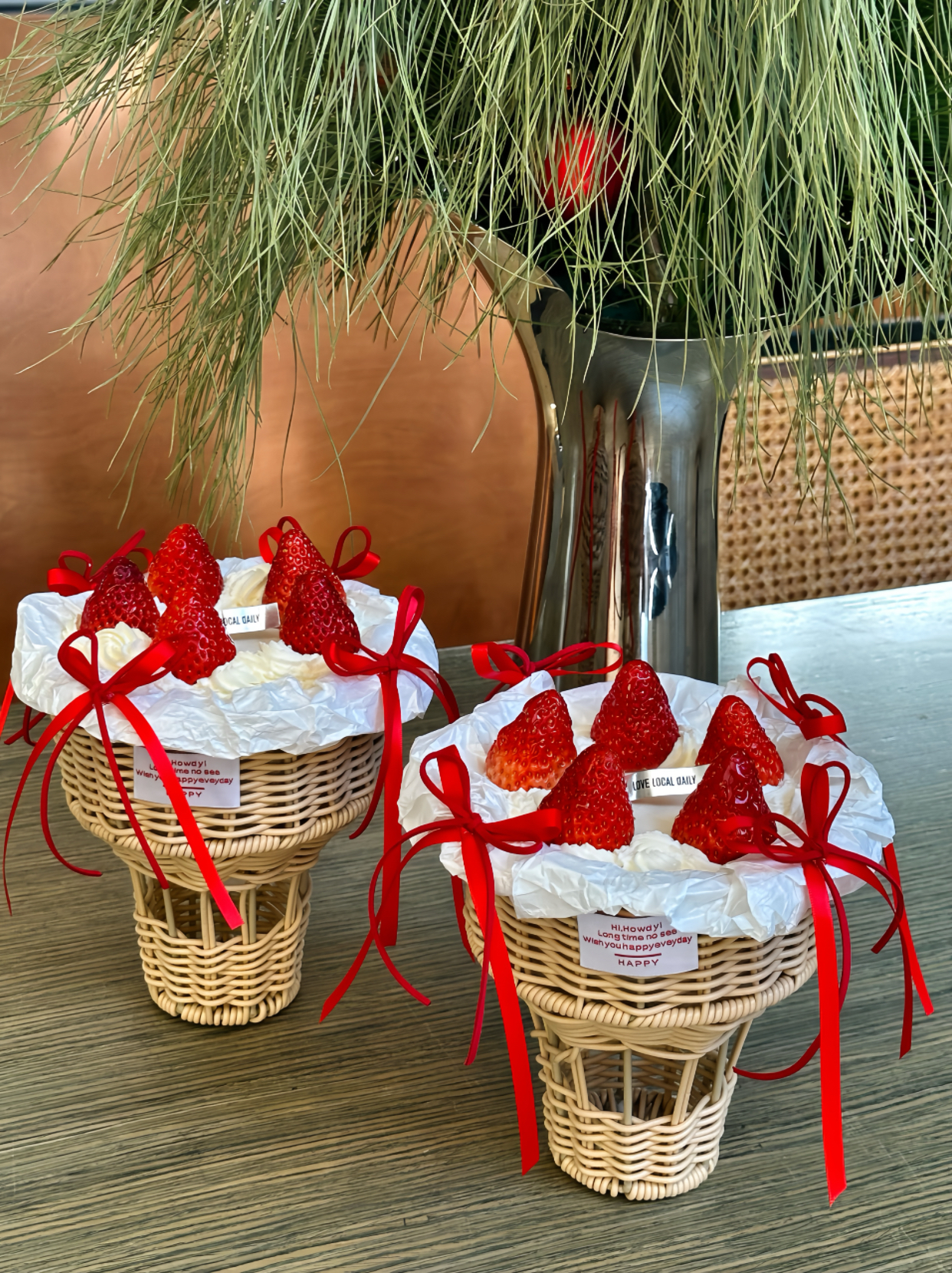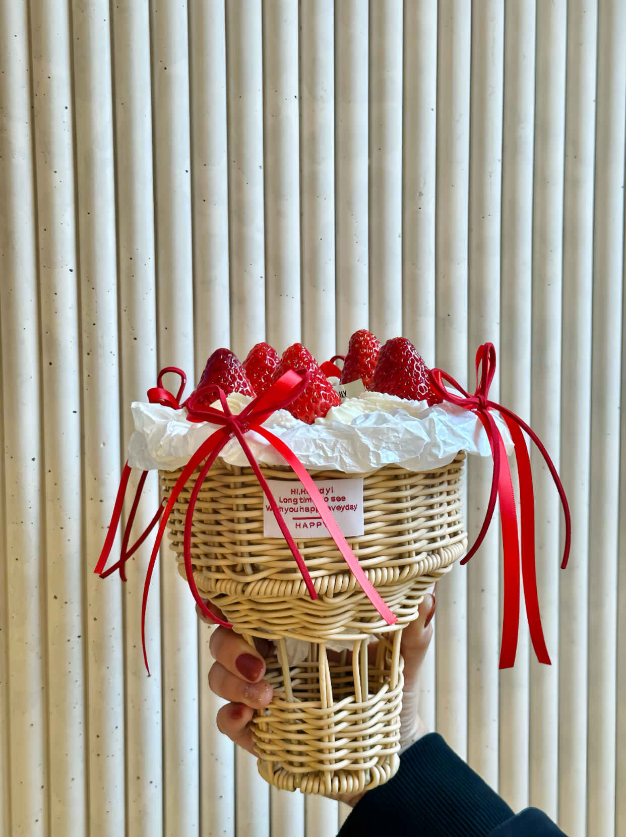 送你一束草莓花·奶油蛋糕【采用丹东九九草莓🍓,竹筐最大口直径15cm组建递减尺寸】