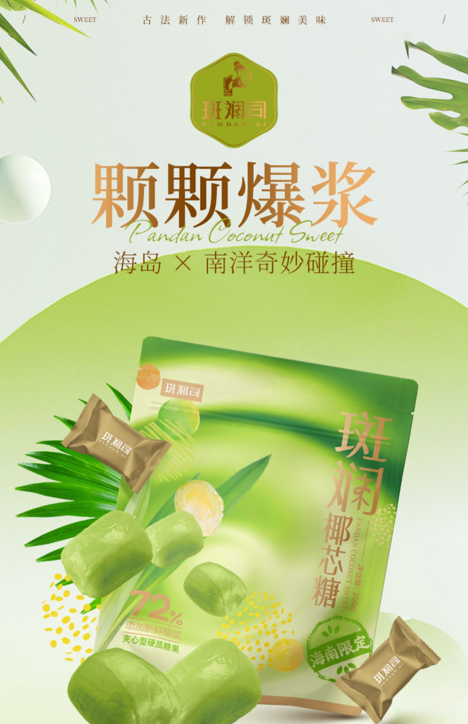 斑斓司斑斓椰芯糖爆浆喜硬糖零食果夹心糖小吃网红休闲食品解馋200g