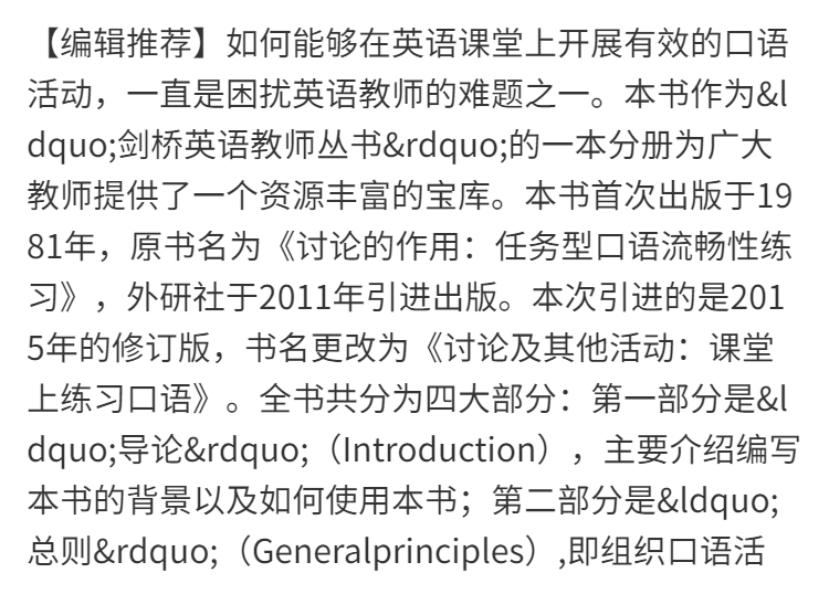 讨论及其他活动:课堂上练习口语