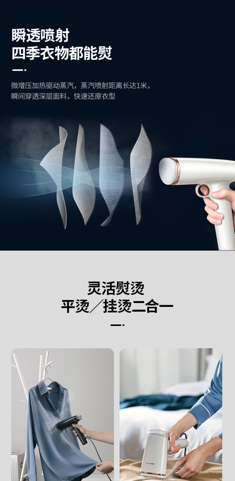 摩飞电器(Morphyrichards)手持挂烫机家用蒸汽熨斗烫斗迷你便携式熨烫机 MR2030灰