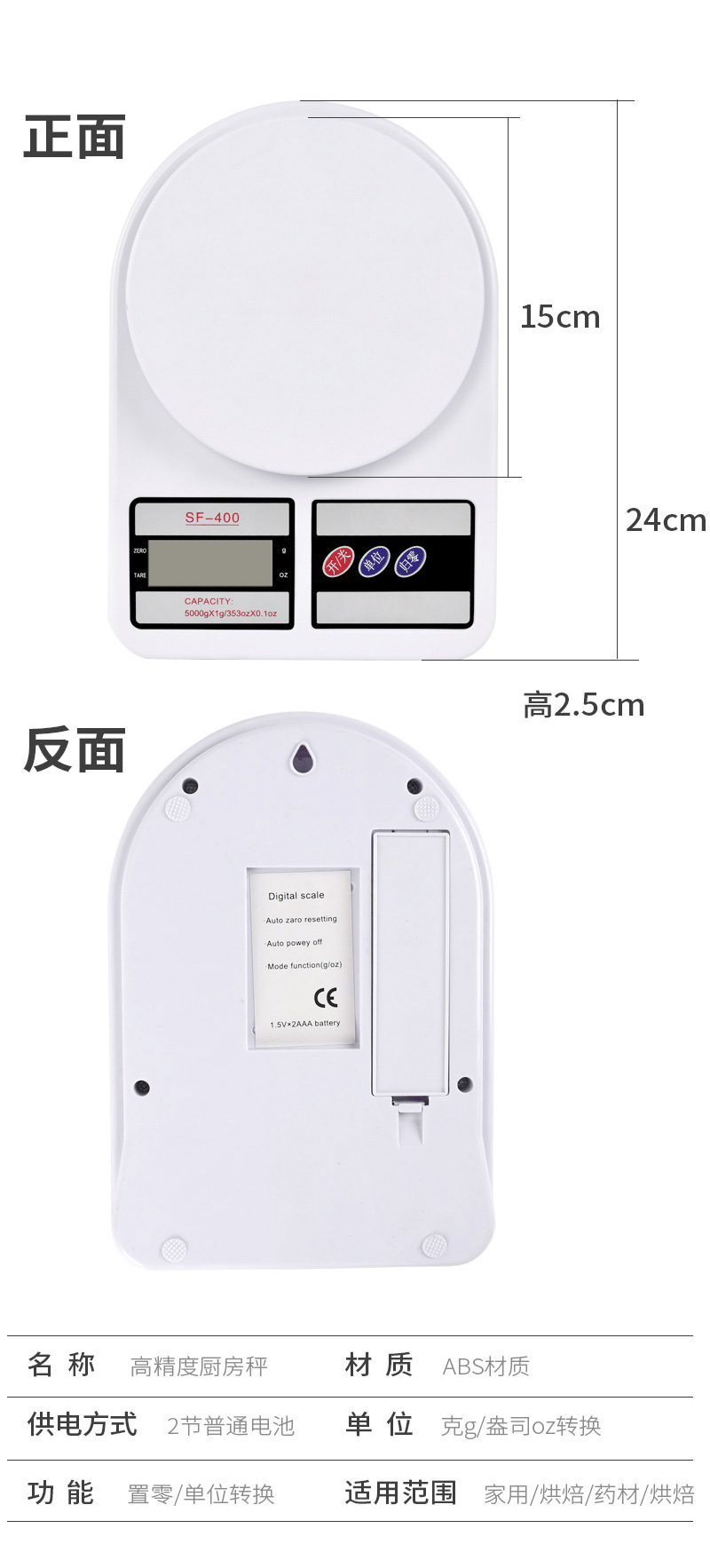 厨房电子秤家用SF400食品药材烘培计量秤饰品称重克称礼品电子称