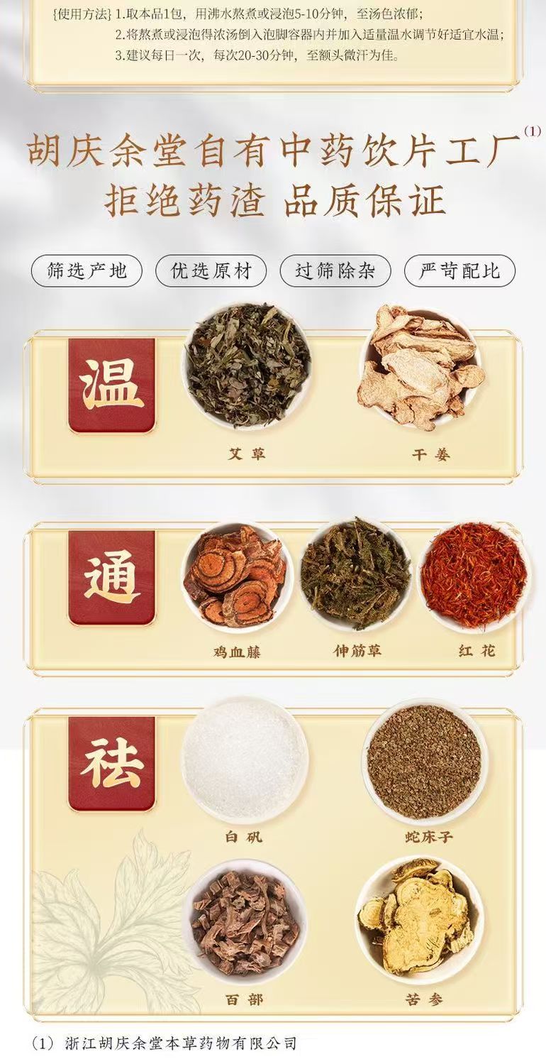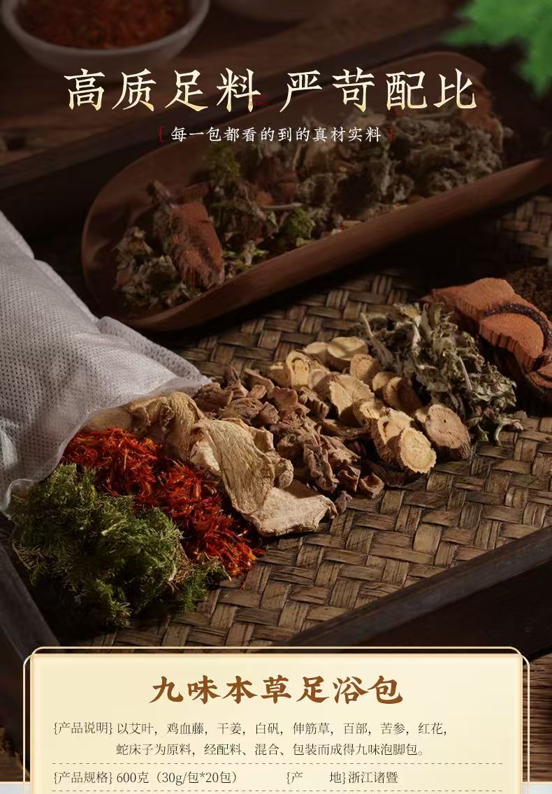九味本草足浴包中药泡脚泡600克大份量20泡/袋 A-5457 胡庆余堂