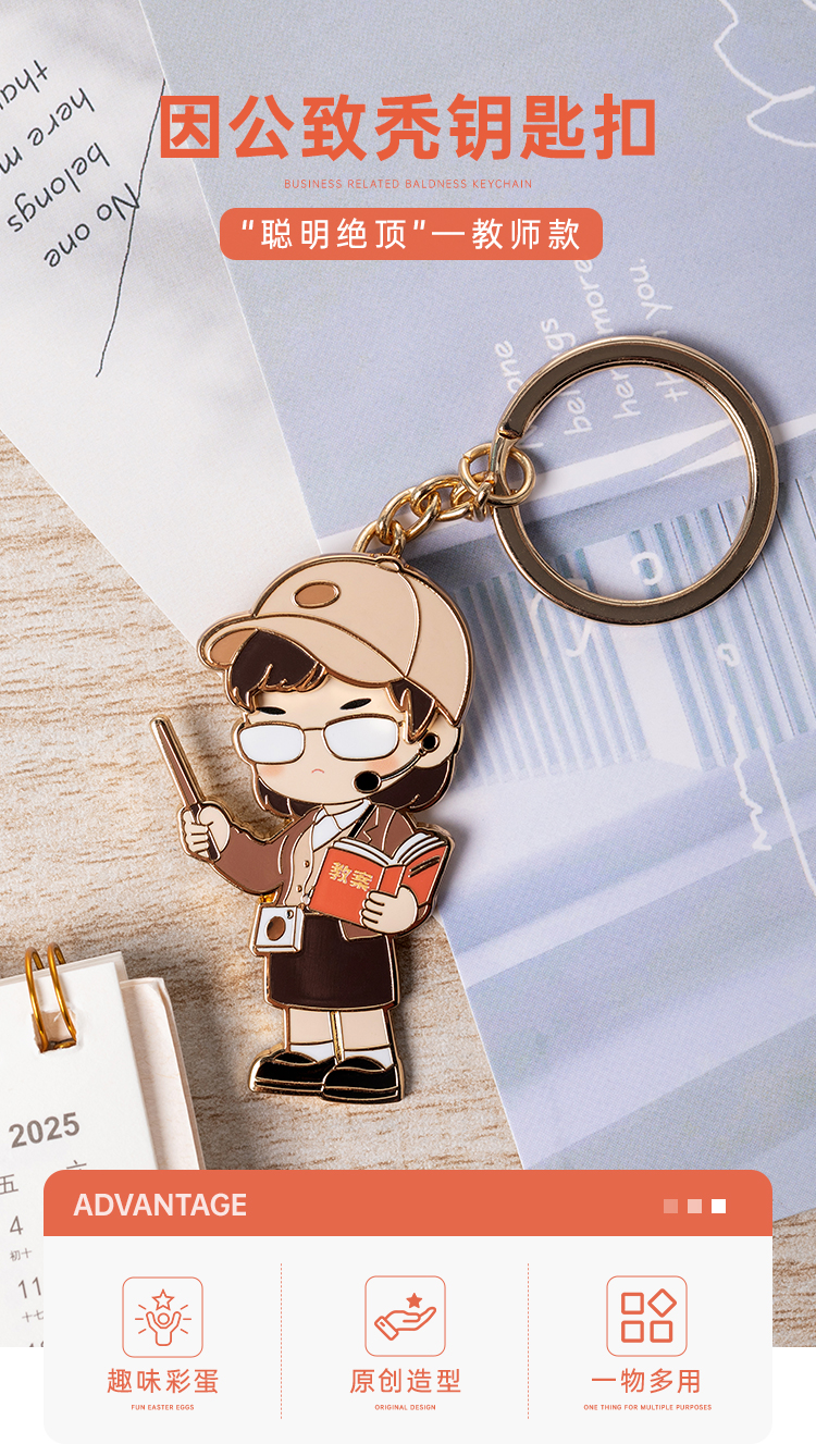 【实付满199送钥匙扣】【教师因公致秃钥匙扣】锌合金创意钥匙扣 男女包包钥匙挂件送礼