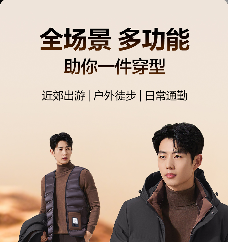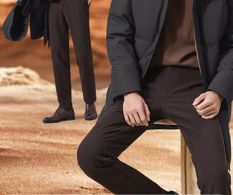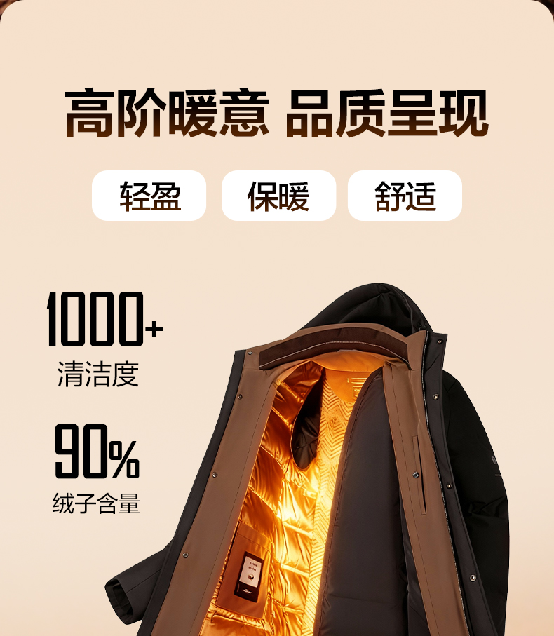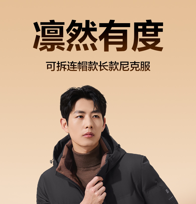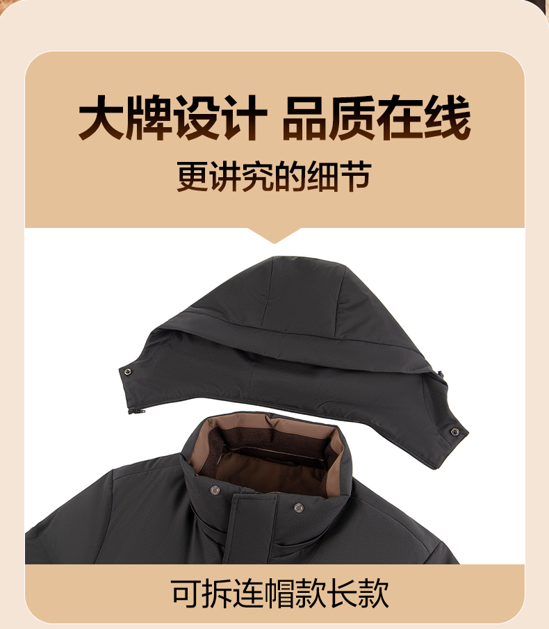 【尼克服/兔毛内胆/长款连帽】柒牌提花鹅绒可拆卸连帽保暖长外套129J70740