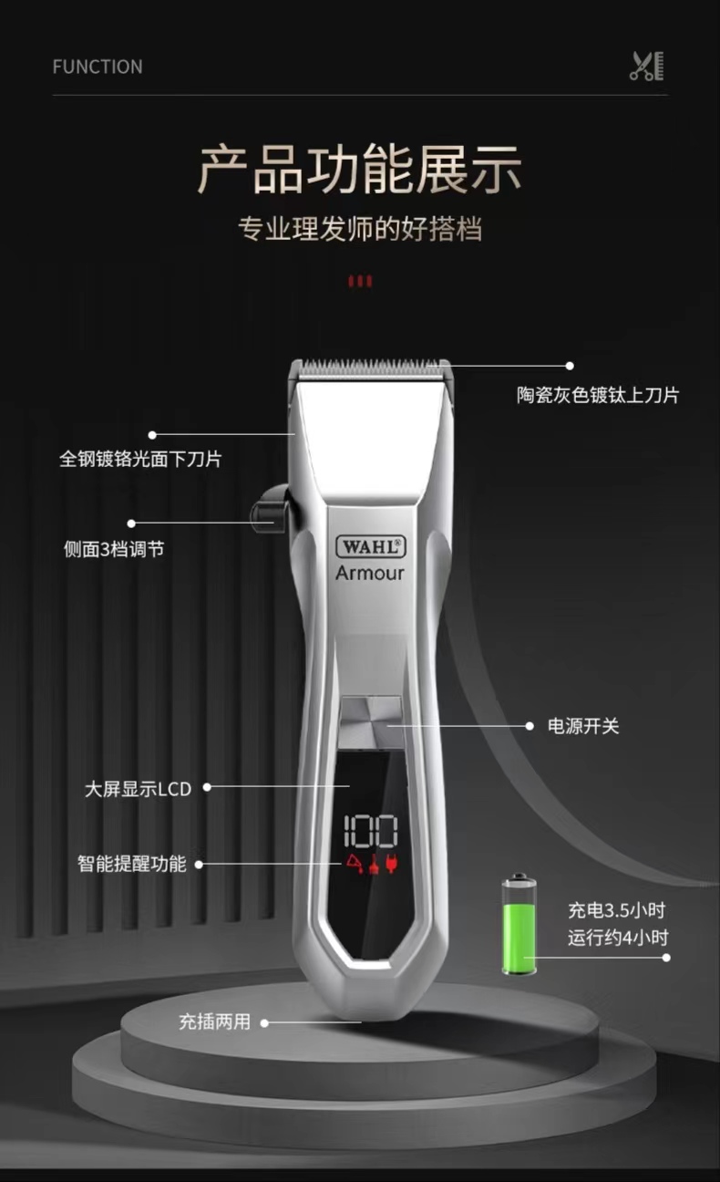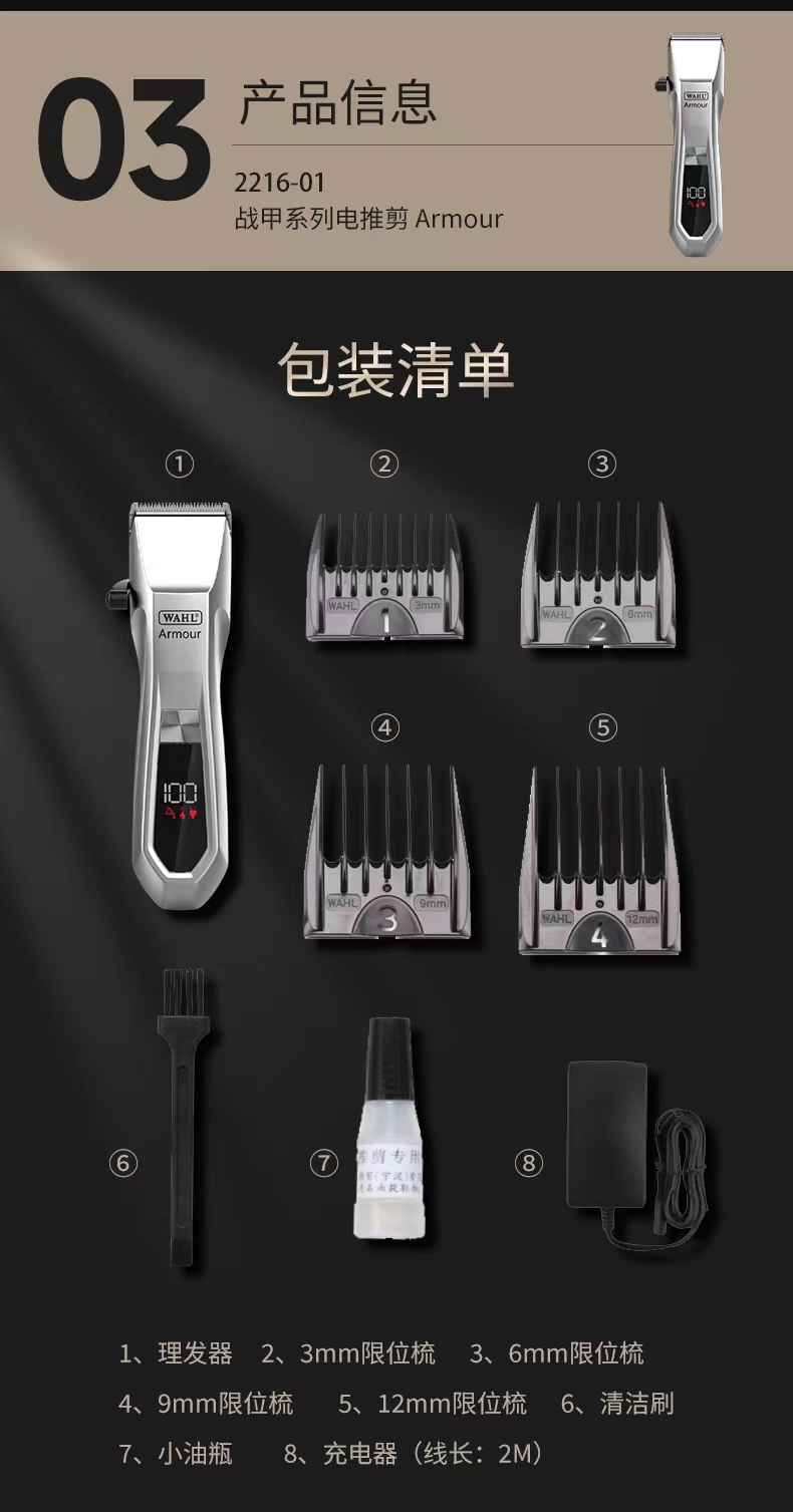 WAHL华尔电推 2216-01银色大推//华尔/电推剪/充电头/锂电池/充电/脱线