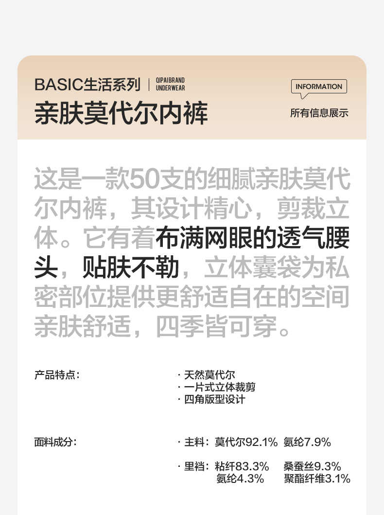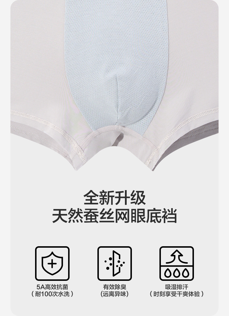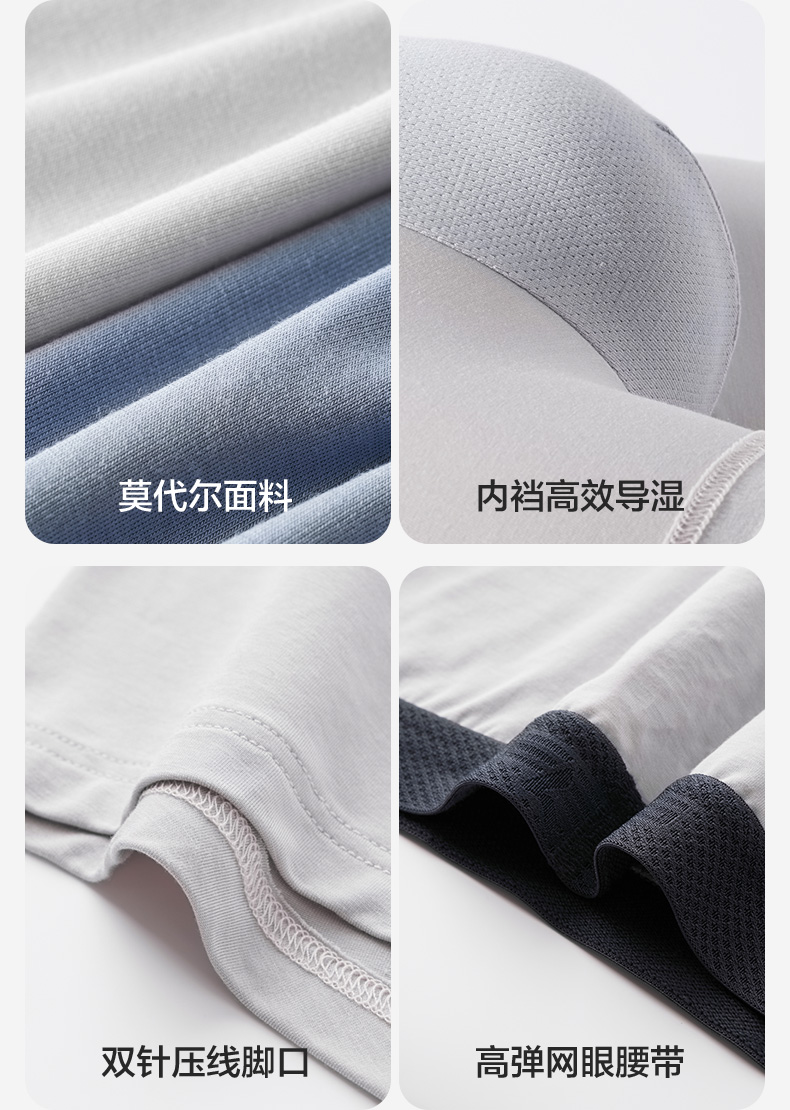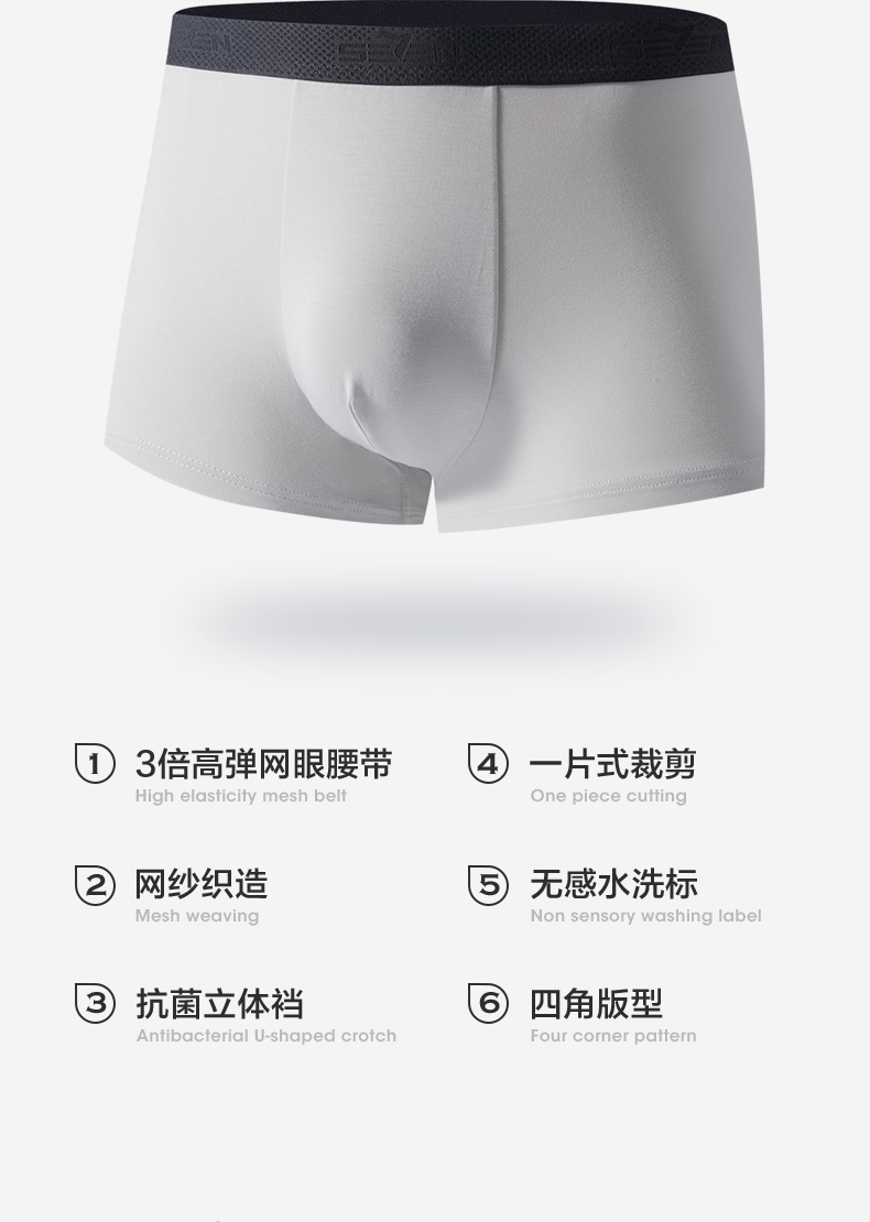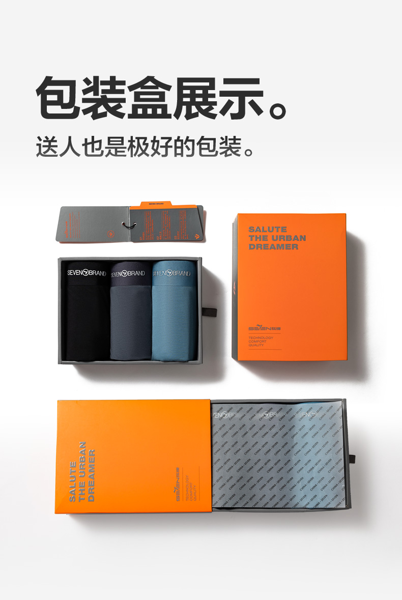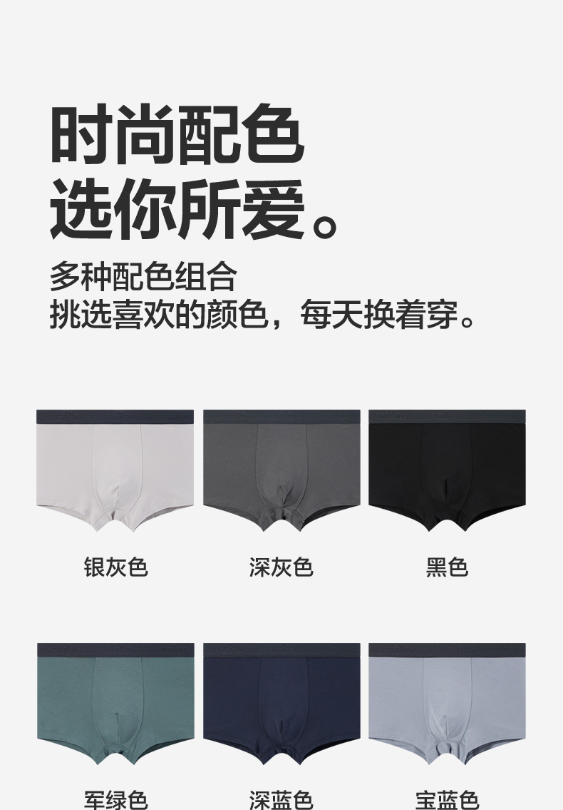 柒牌男士内裤莫代尔男生5A抗菌透气四角裤男款短裤衩3条装平角裤 127F70320