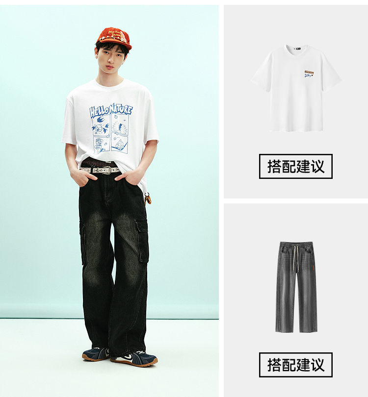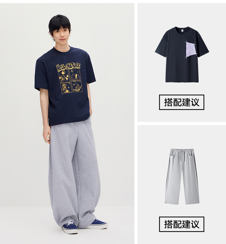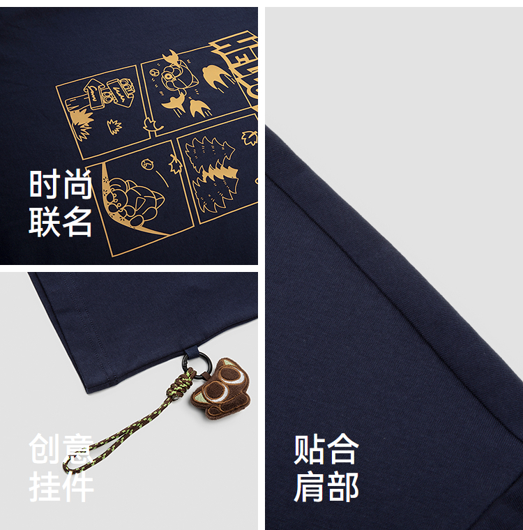 森马罗小黑短袖T恤男夏季吸湿速干针织衫2026新款可拆卸吊坠上衣