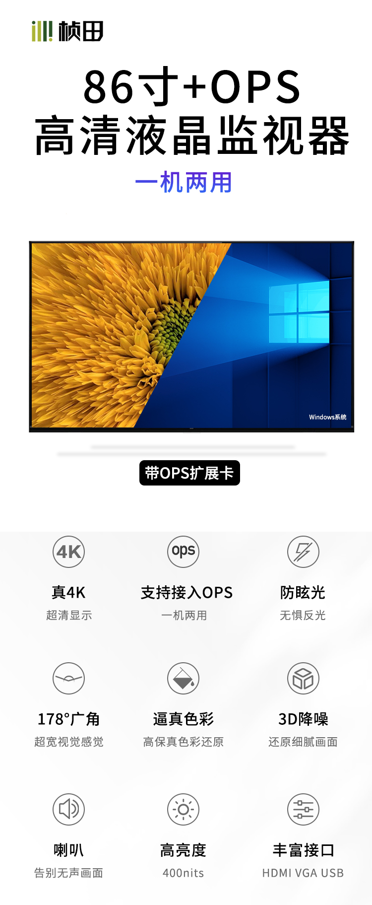 86寸4K防爆液晶监视器/带OPS扩展卡 L8F4KE