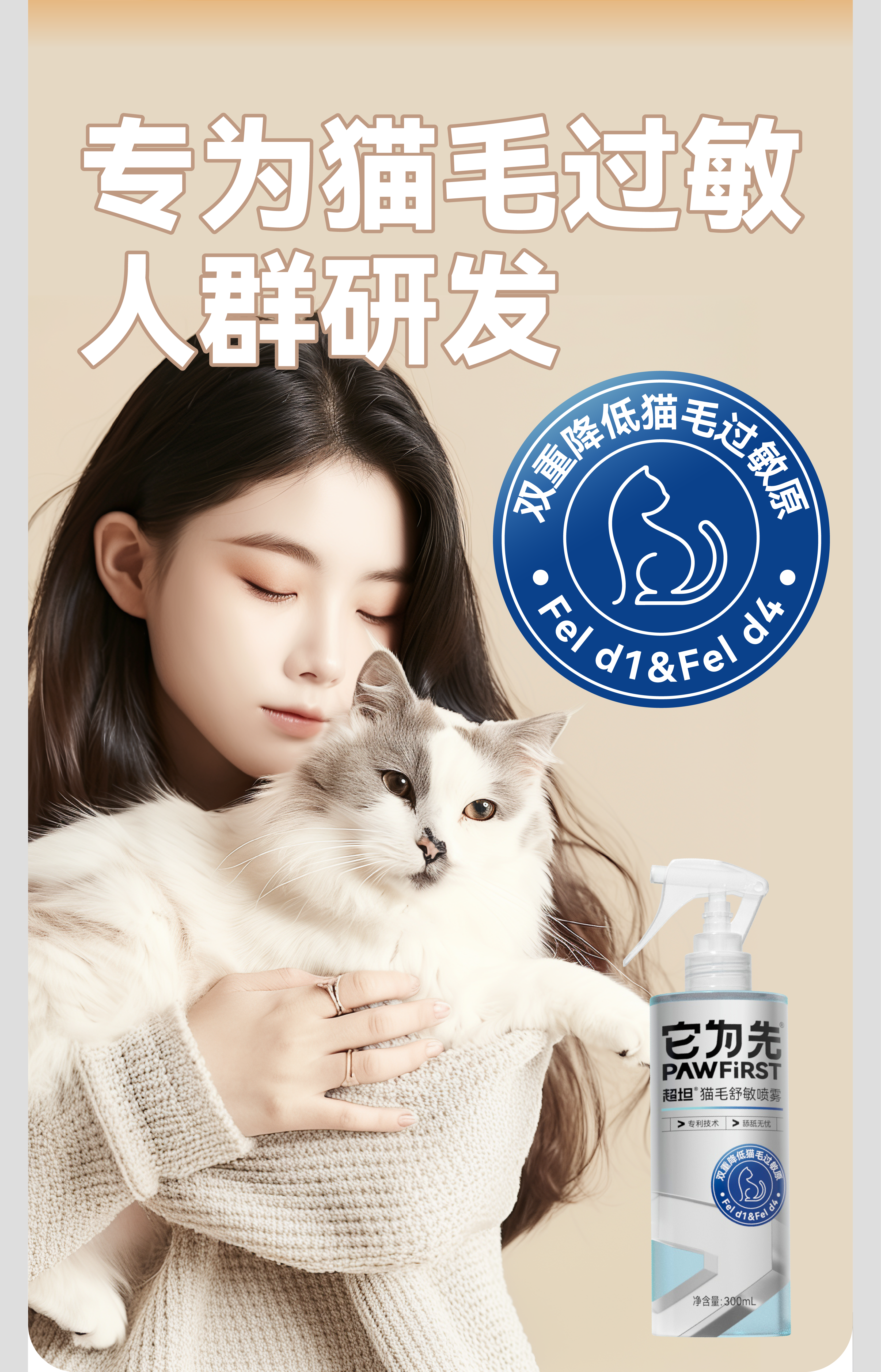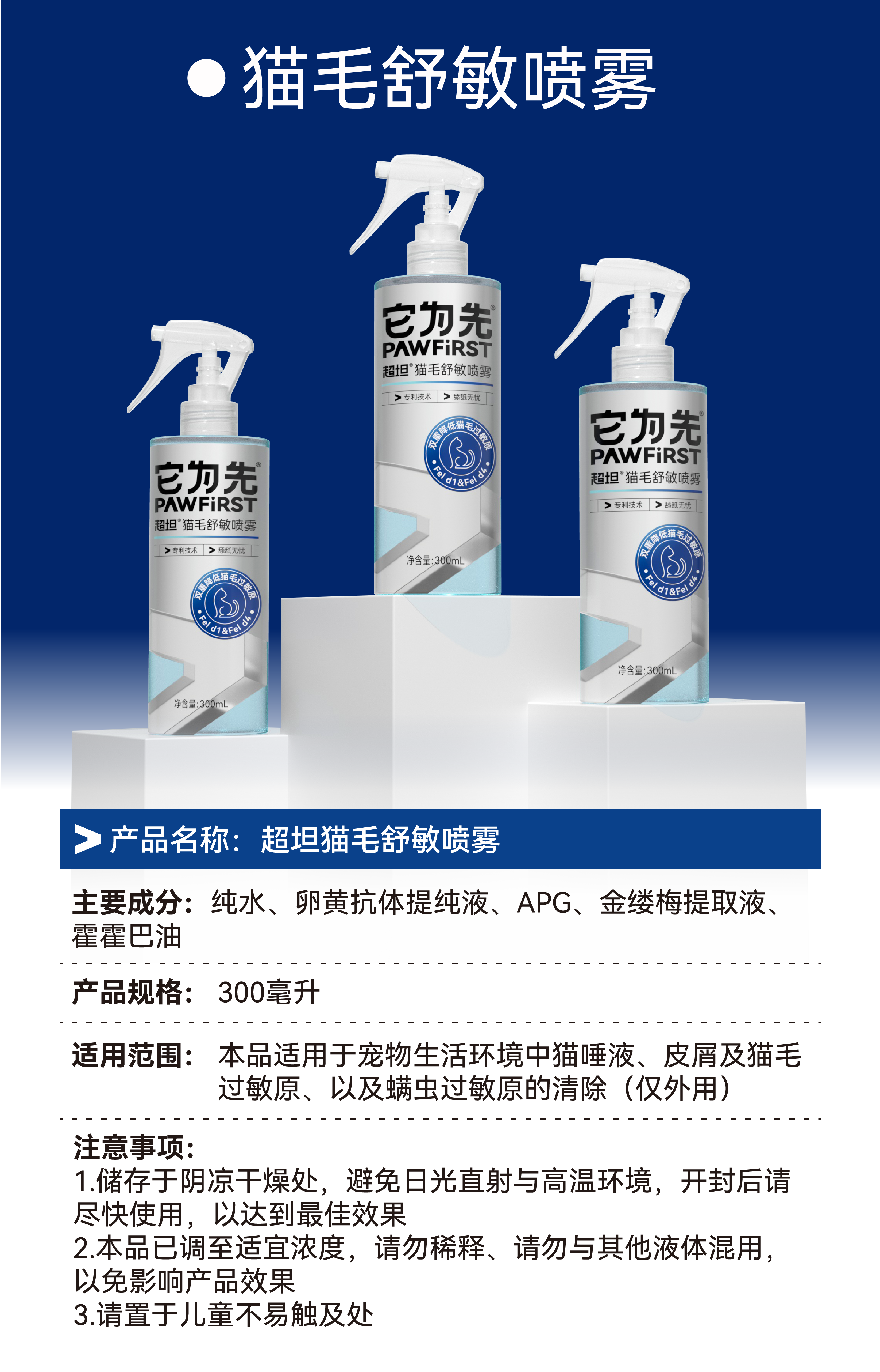 【近效期处理】它为先超坦猫毛舒敏喷雾 300ml 有效综合环境猫咪唾液、皮屑以及螨虫过敏原 专利技术 保质期到2026年1月