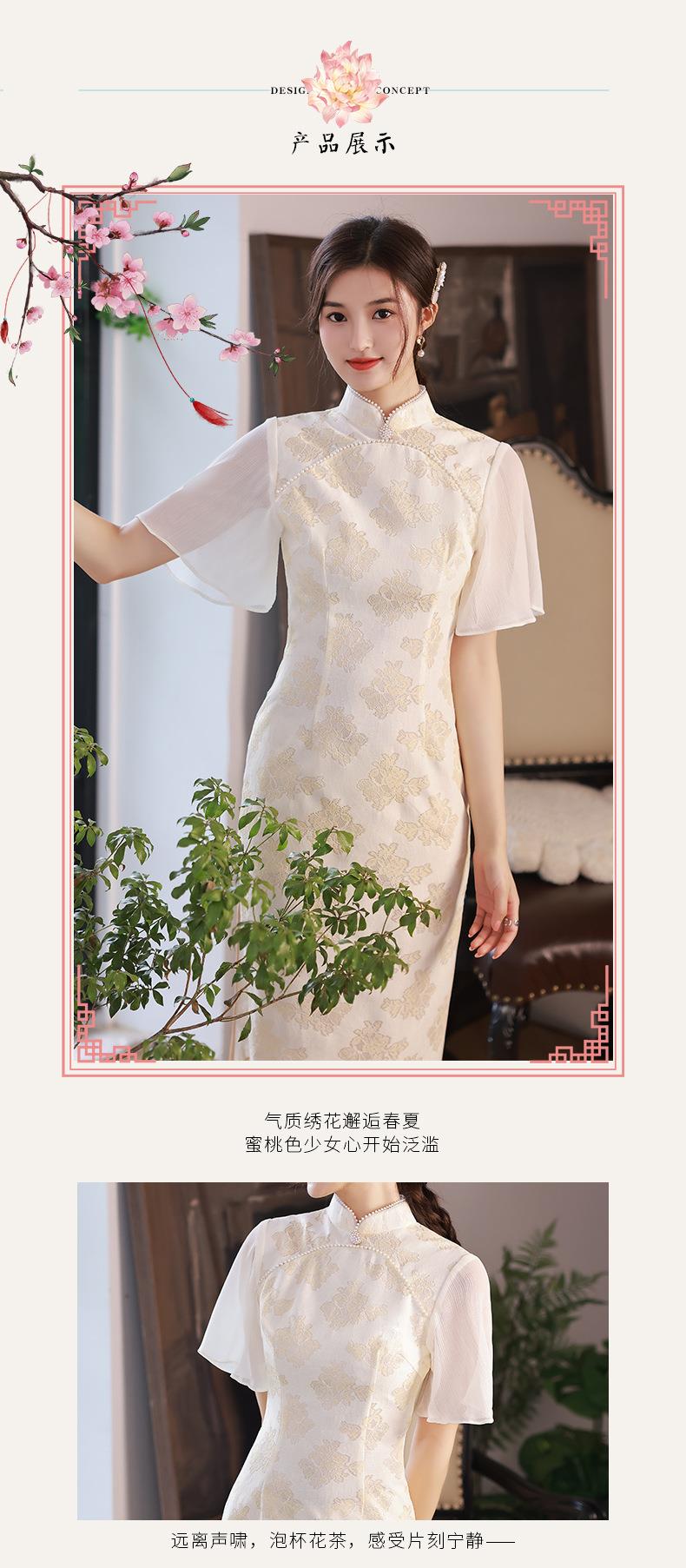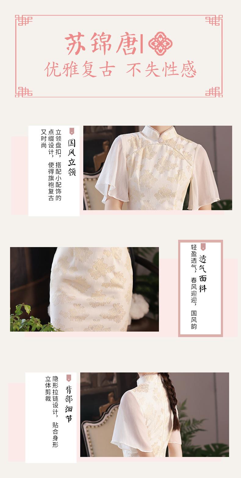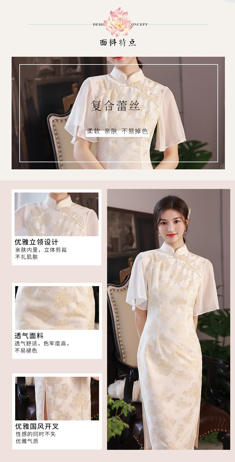 2023春夏款飞飞袖复合蕾丝中长款旗袍仙女裙清新文艺民国风连衣裙