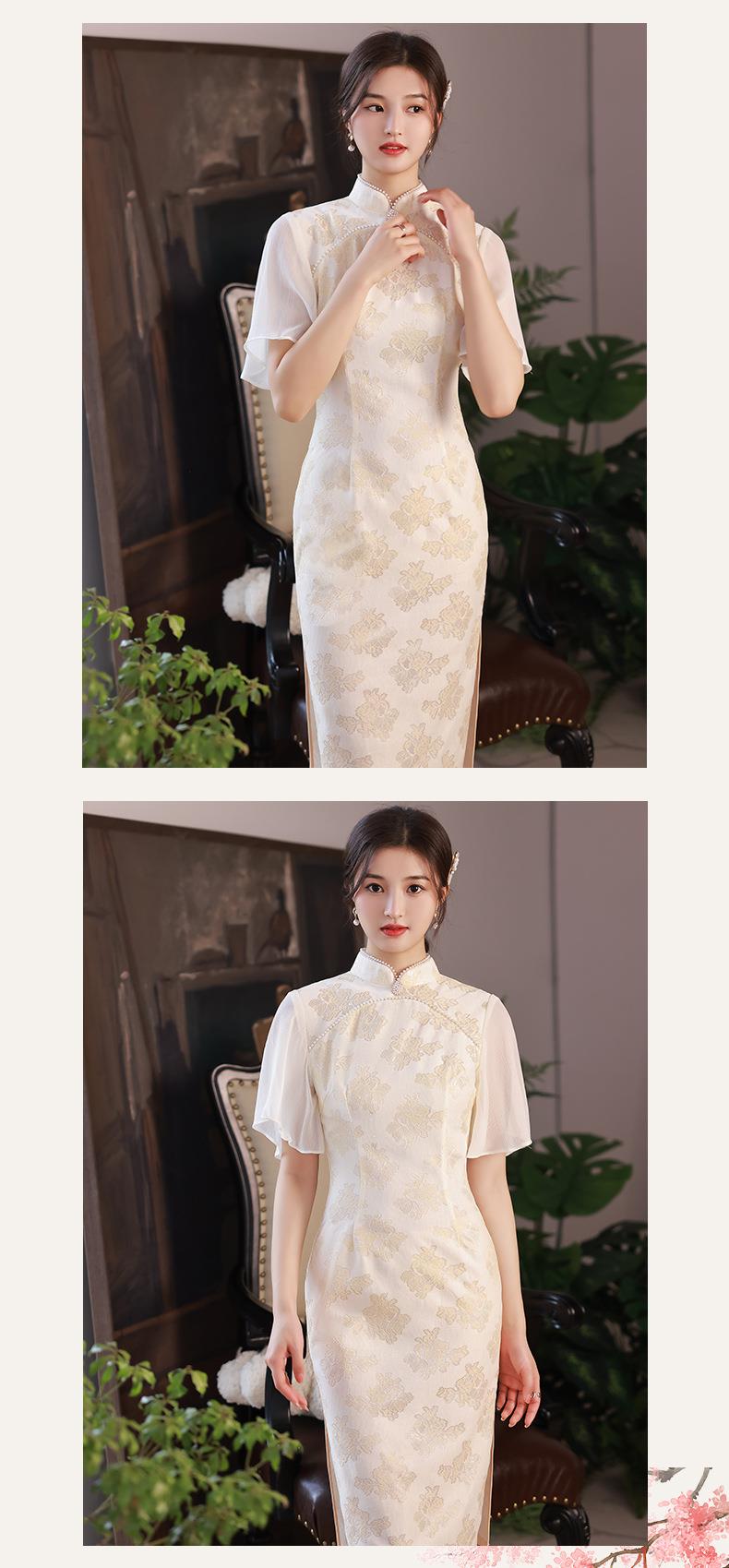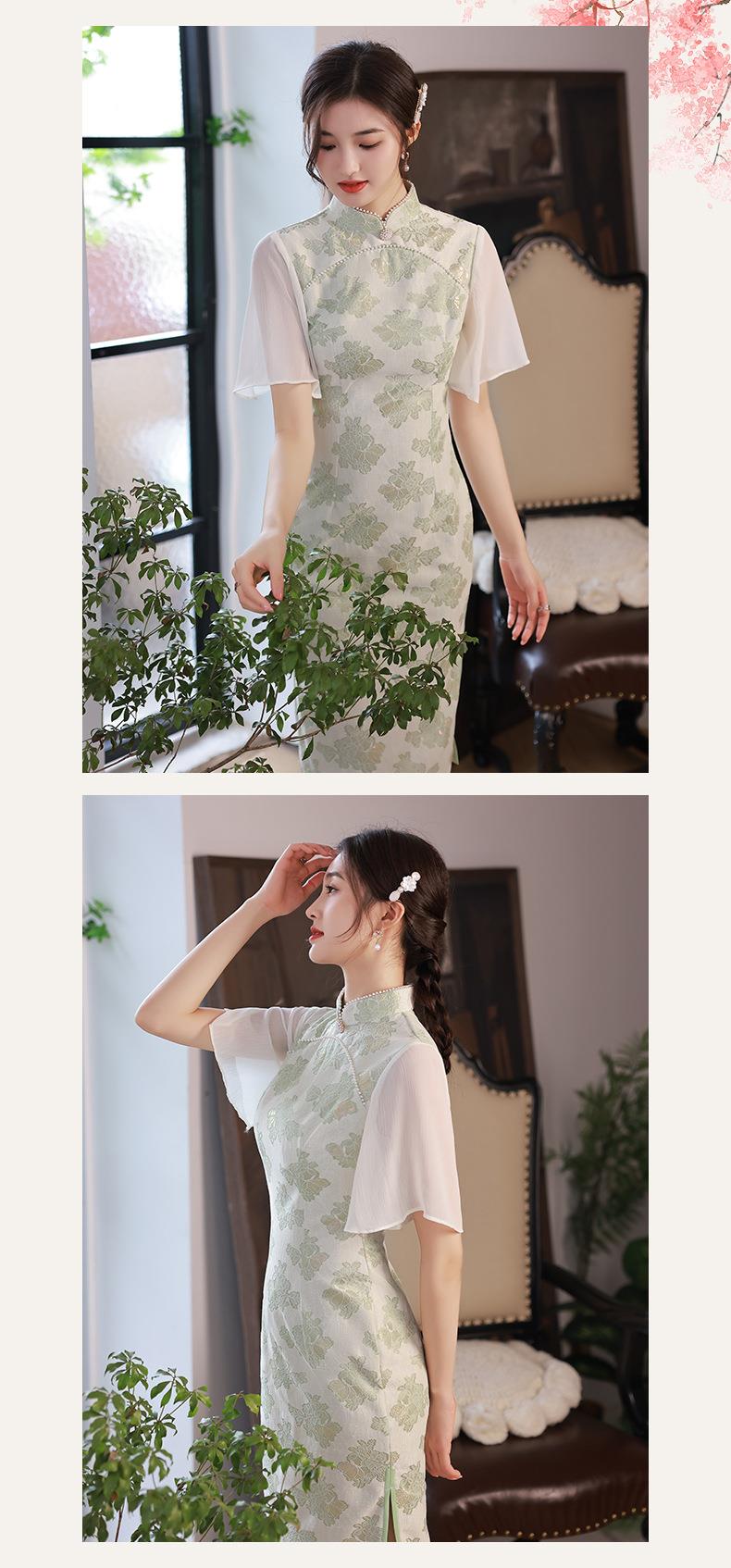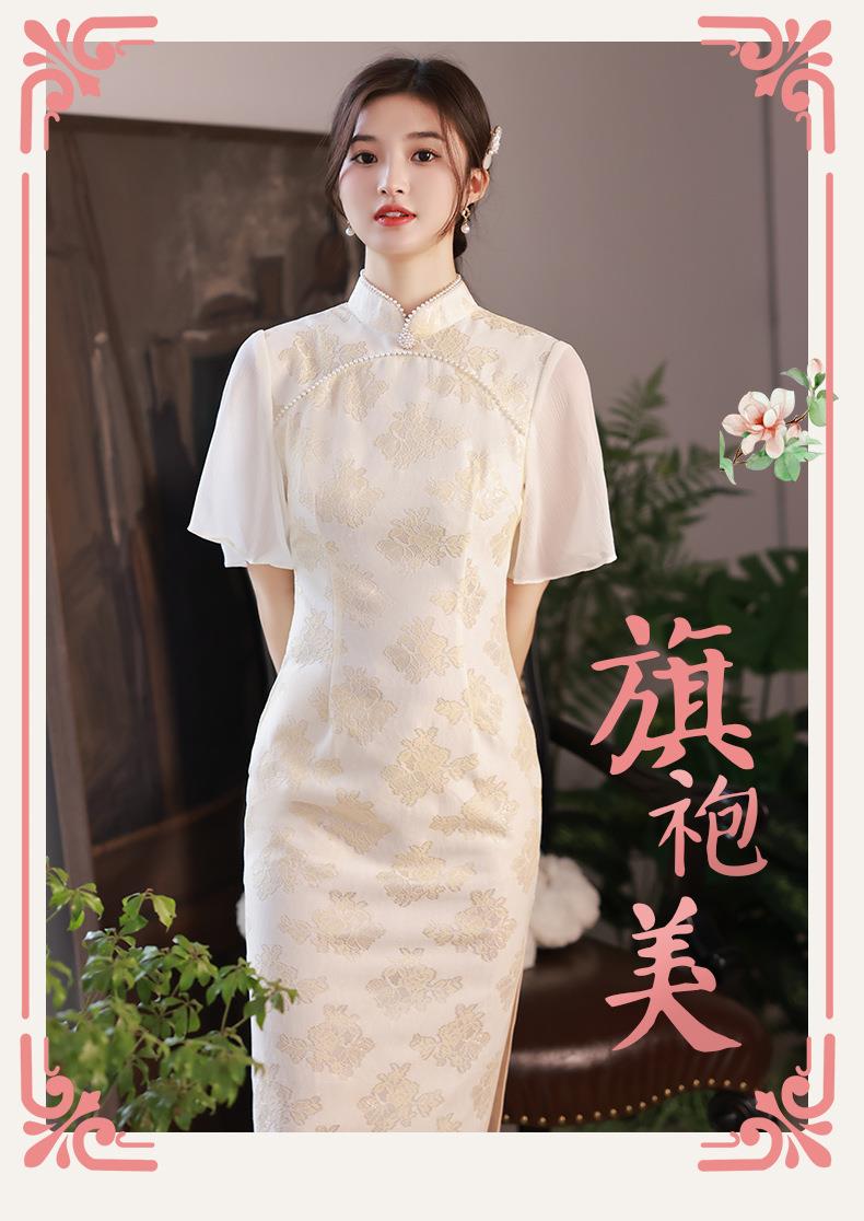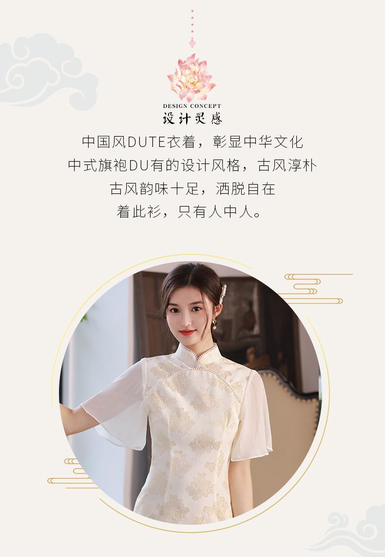 2023春夏款飞飞袖复合蕾丝中长款旗袍仙女裙清新文艺民国风连衣裙