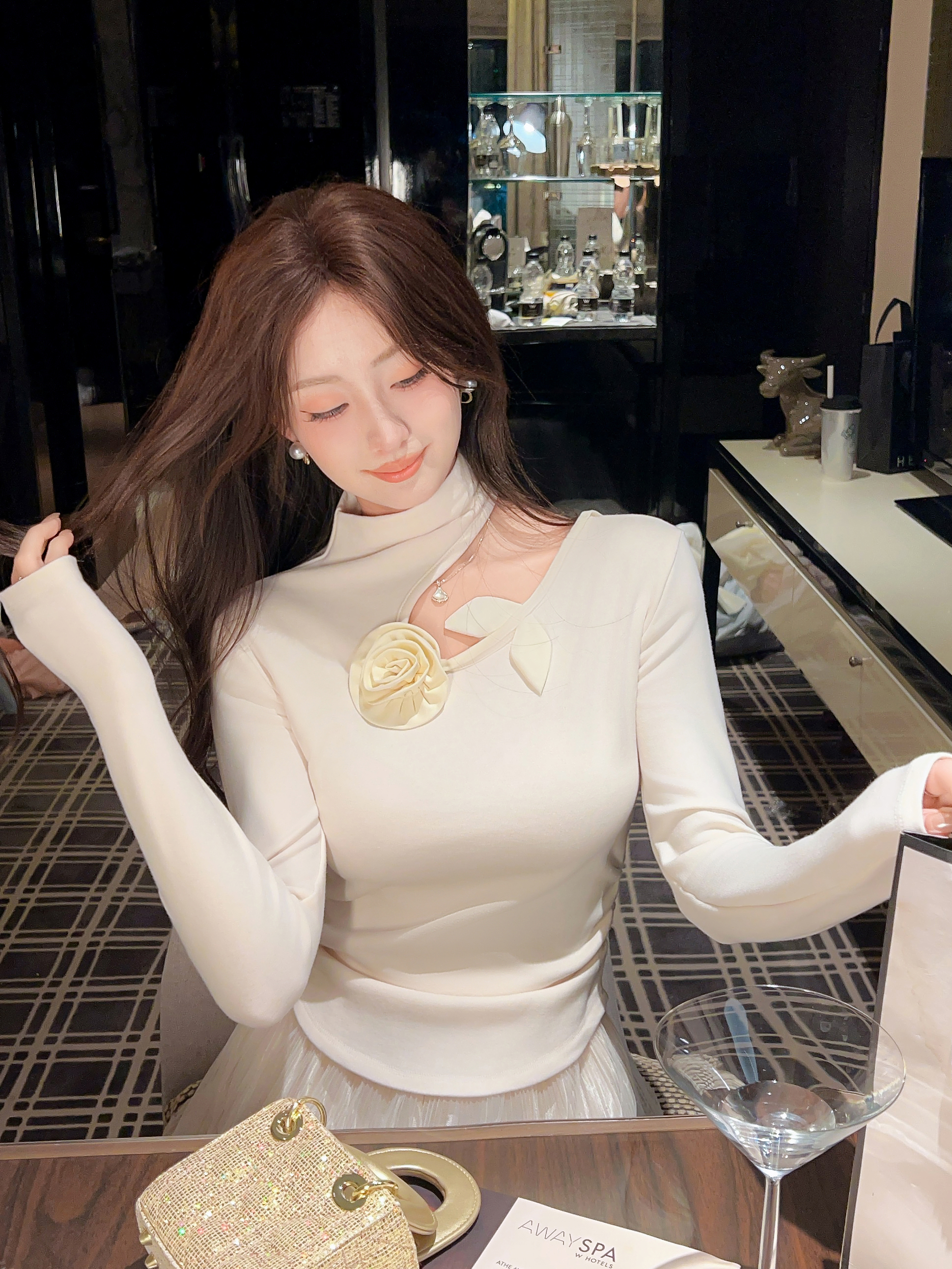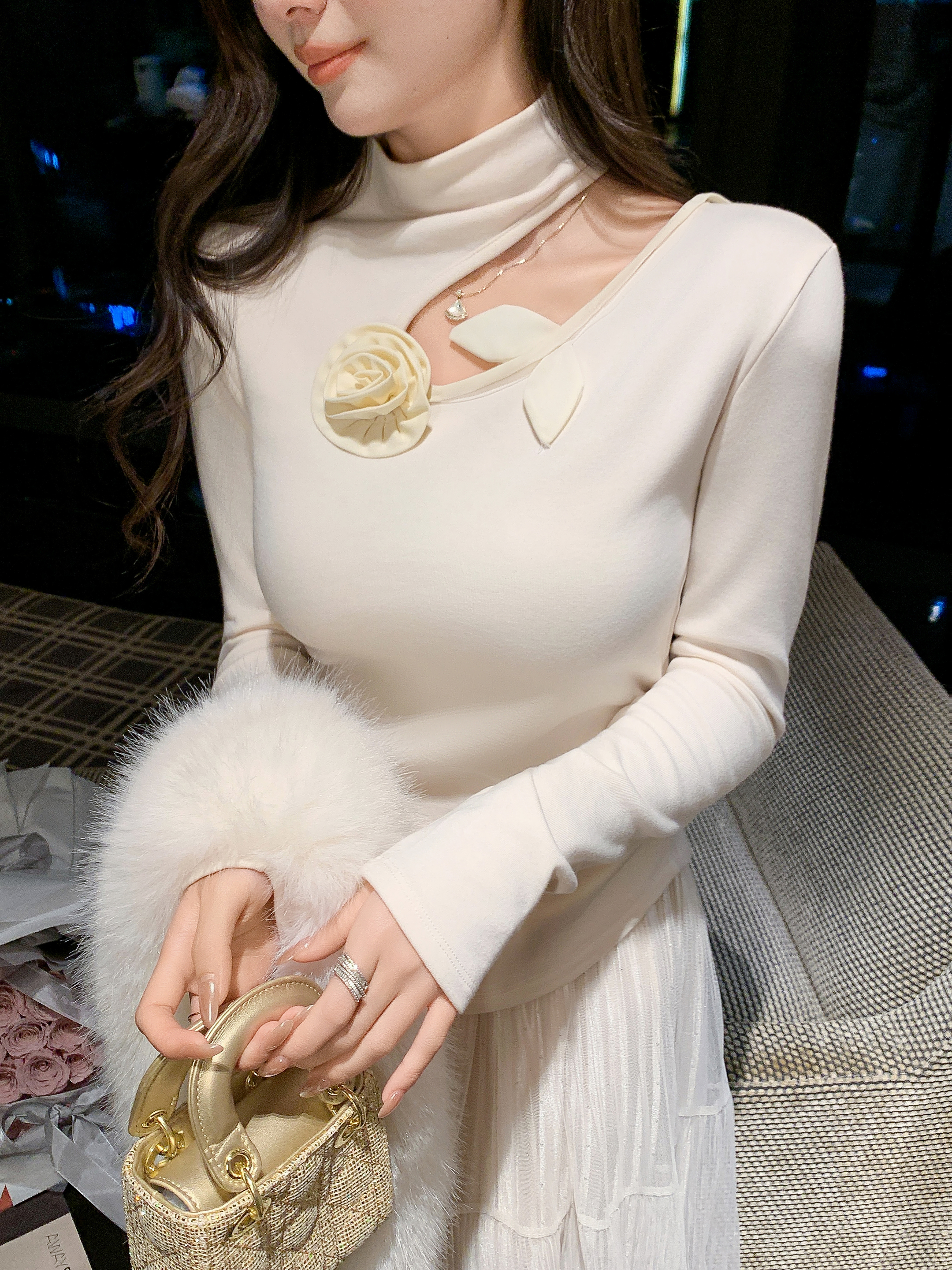 张心子【入冬私语】镂空半高领收腰加绒显瘦上衣 U2601012