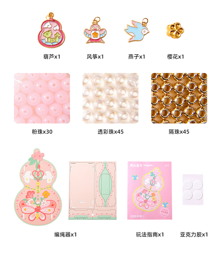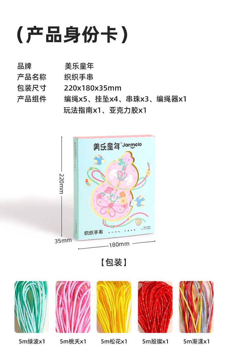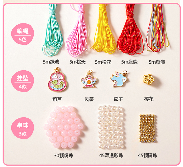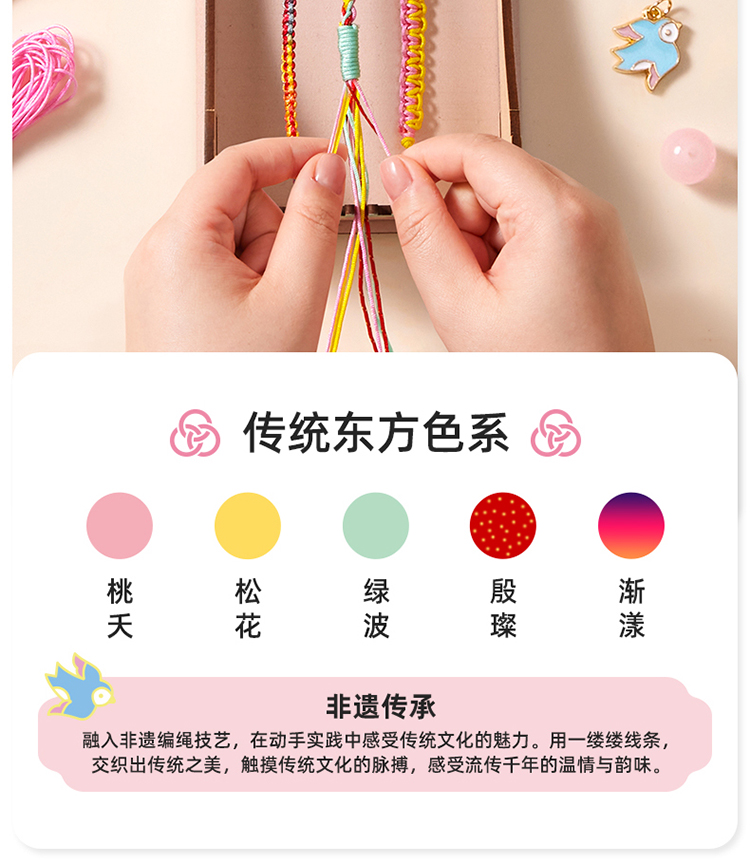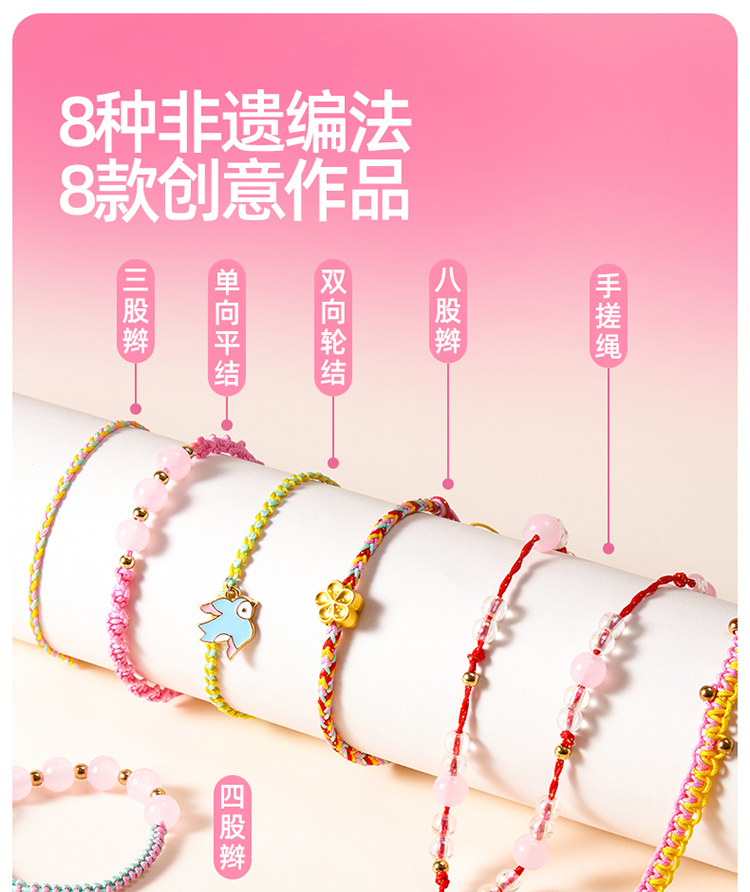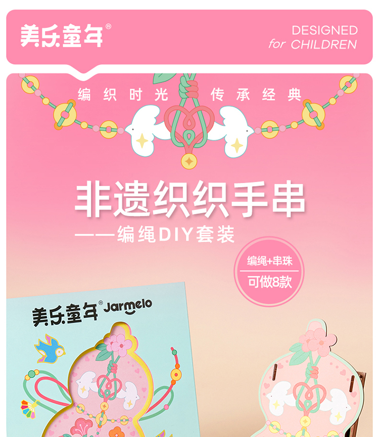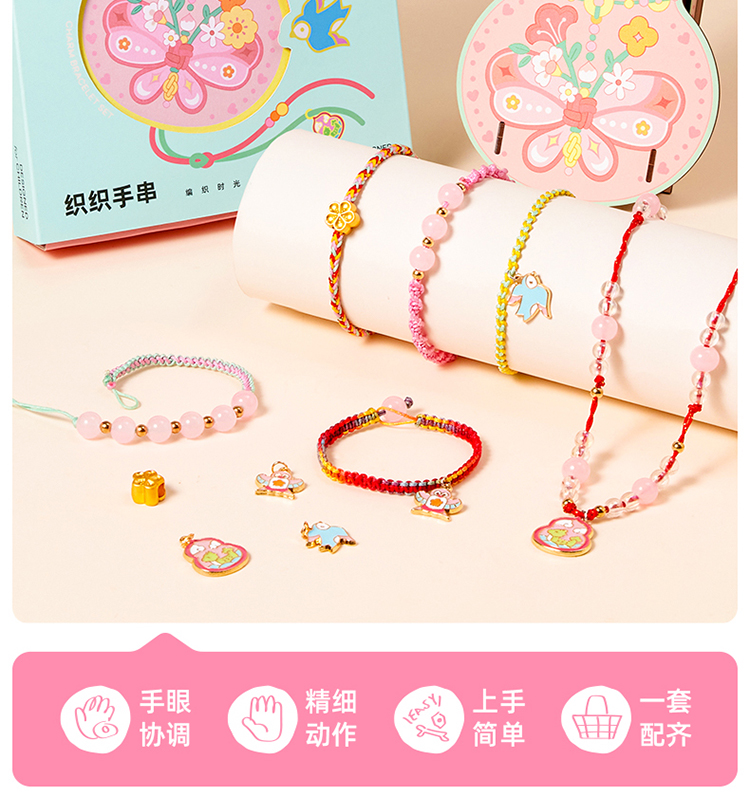 美乐童年非遗手串女孩手工diy五彩编绳儿童串珠手链礼盒生日礼物