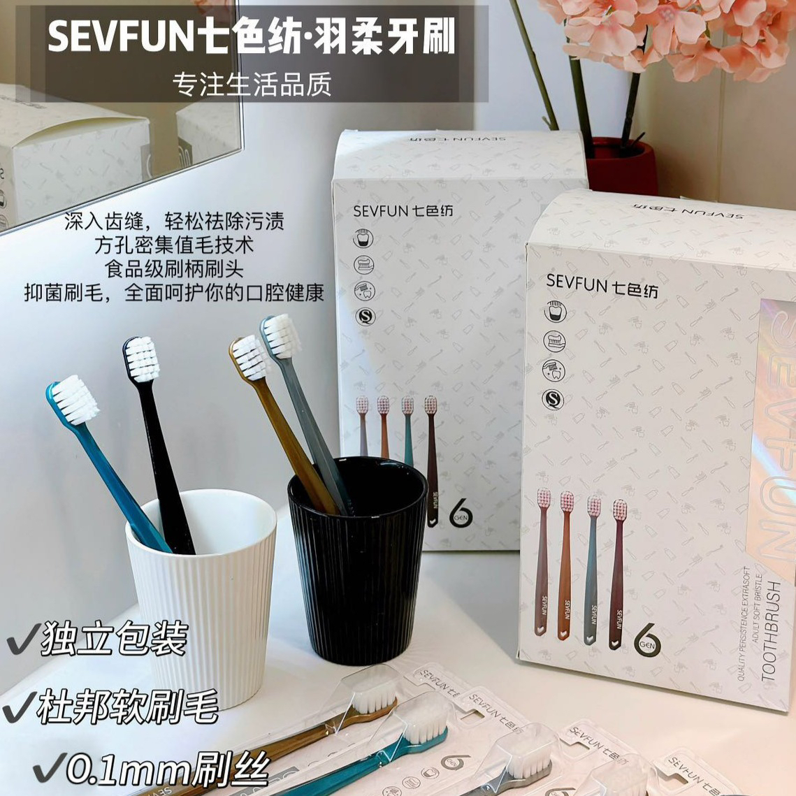 SEVFUN七色纺 迪拜6代杜邦万毛软头牙刷宽头升级家用装20支装/盒(买整盒送鹿晗明信片)