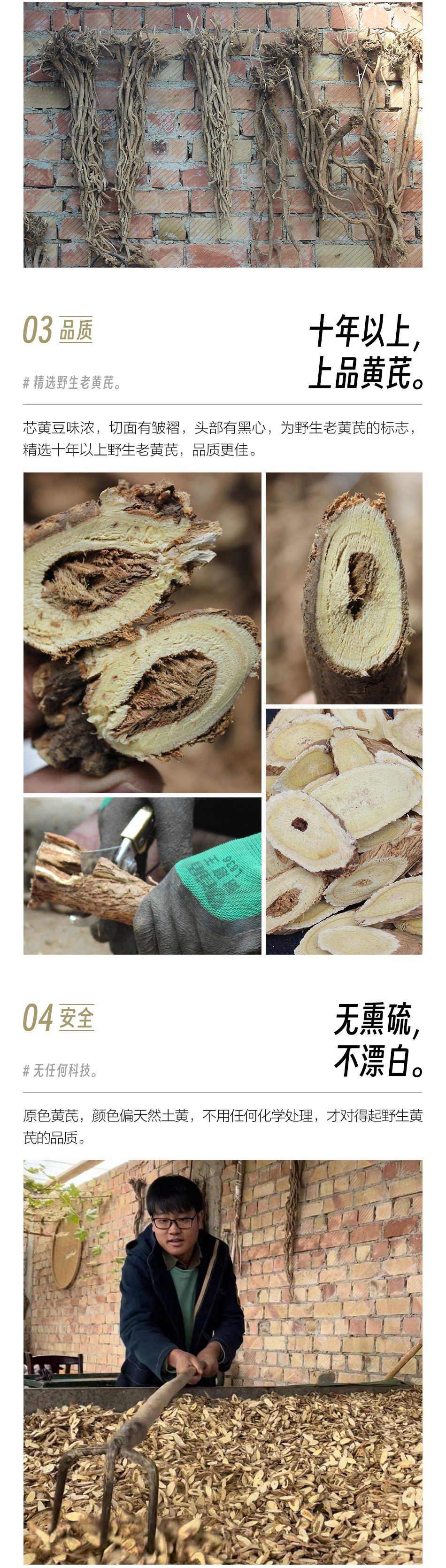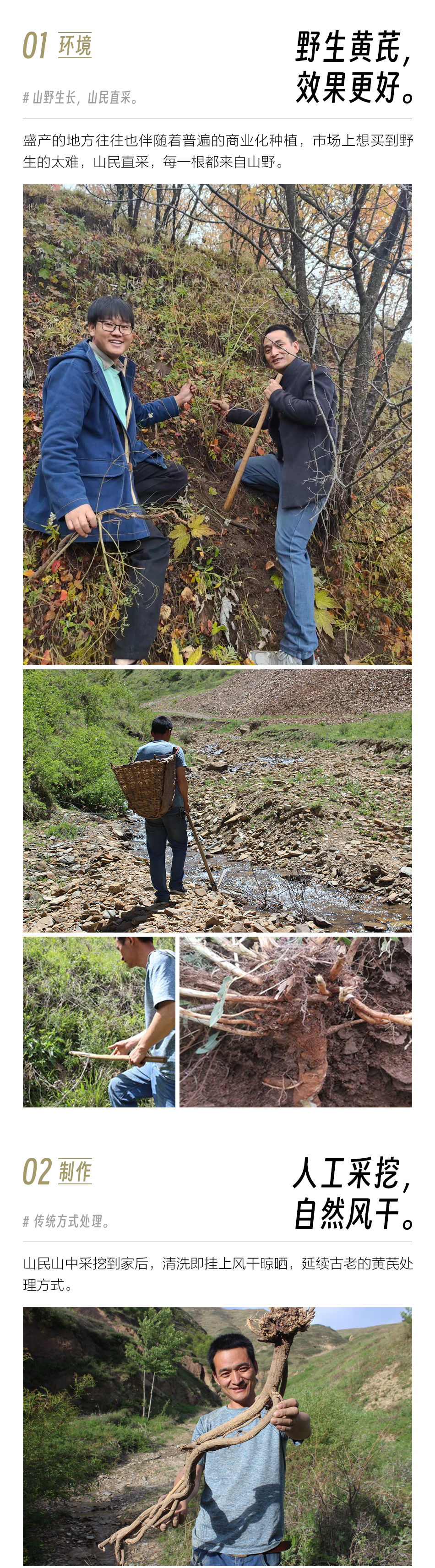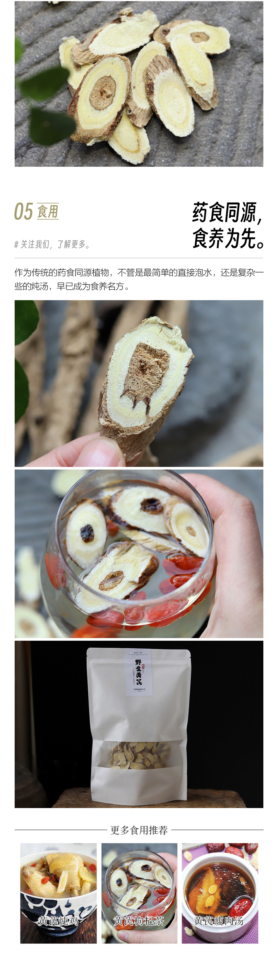 【品名】岷县野生黄芪 【规格】250g/袋 【品级】特级(切面1cm以上) 【采集人】周尚书 【采集标准】野生采挖,十年以上树龄,自然晾晒不熏硫 【生产日期】见包装 【保质期】18个月 【保存方法】阴凉避光密封保存 【生产地址】甘肃省岷县周边山区 【注意事项】感冒、发烧患者不宜食用,孕妇及生理期间不宜食用,肝火旺盛者也少食用为佳。 【注意事项】 1、受天气或库存等原因影响快递可能偶有耽误,急单请发货前咨询客服。 2、已发货后不接受没有沟通的退款申请。