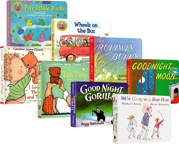 【0-6岁·启蒙必备套装五】睡前故事纸板英文经典绘本 公交巴士上的轮子、晚安月亮等精选8册