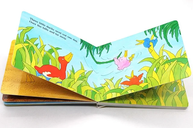 有一天5只小鸭出去玩,翻过山去跑了很远,鸭妈妈到处找孩子,但是只回来了4只。第二天,4只小鸭出去玩,但是只回来了3只……每一天都会少一只小鸭,直到剩下一只也走丢了,鸭妈妈十分悲伤。鸭妈妈独自度过了萧条的秋天和寒冷的冬天,春天来临了,悲伤的鸭妈妈依然在翻越高山寻找她的孩子。鸭妈妈不停的呼唤小鸭们,忽然5只小鸭全都回来了,同时还带来了他们各自的孩子。这本书还可以做一本数数书来读,从5减到1,是小宝爱做事。