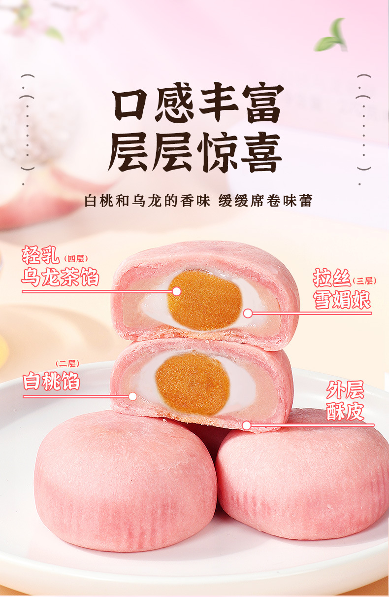 【杭州特产白桃乌龙茶酥】颠覆味蕾茶酥雪媚娘夹心豆乳饼,桃香四溢口感丰富层层惊喜,拉丝雪媚娘龙井杭州特产面包零食糕点伴手礼下午茶解馋饱腹QQ