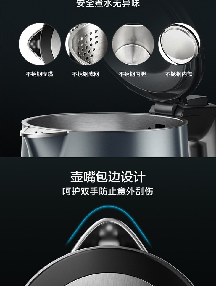 苏泊尔(509682)电水壶1.7L大容量双层防烫保温烧水壶开水壶双层不锈钢无缝内胆电热水壶旗舰正品 SW-17S36A