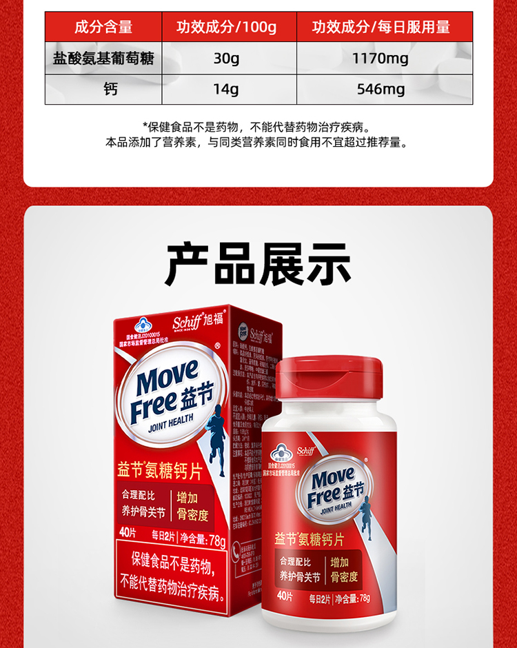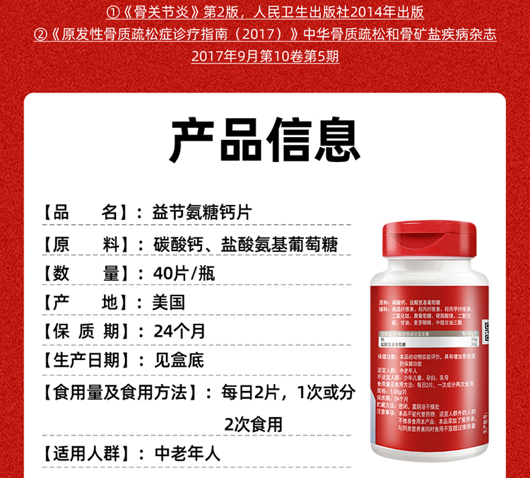 【益节】氨糖钙片 增加骨密度中老年护关节40/80粒