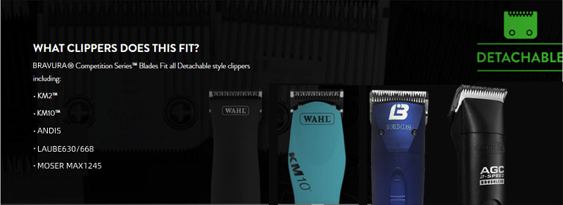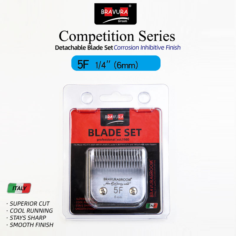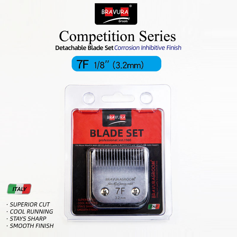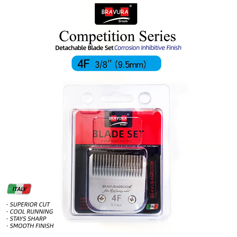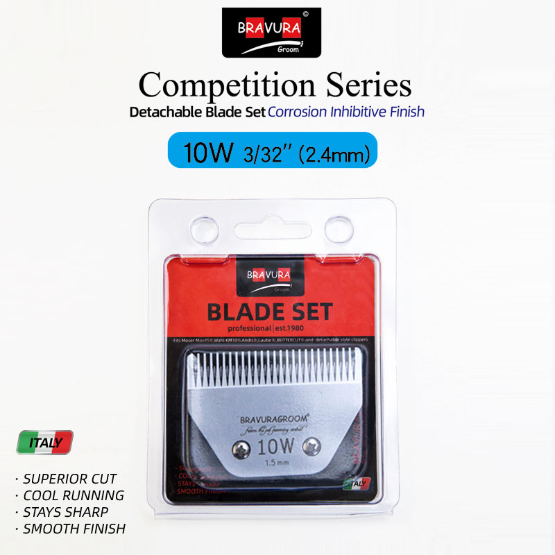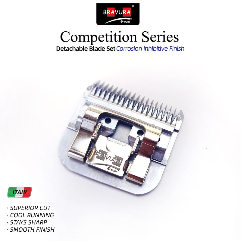Looking for a replacement blade for your BRAVURA detachable blade clipper? BRAVURA's Ultimate Competition blades can be used with all of those clippers and compatible competitor clippers. Blade sizes range from 16mm (#2F) to 0.2mm (#50), which is a close, surgical grade cut. The #30 blade can be used with BRAVURA's Stainless Steel Attachment Guide Combs for even longer cutting length options. The Ultimate Competition series goes through additional processing during manufacturing that coats the blades to protect against rust and keeps them sharper longer than the original Competition series. Compatible with ANDIS, LAUBE, Wahl's KM Cordless, KM10, KM5, MOSER-MAX45, clippers.