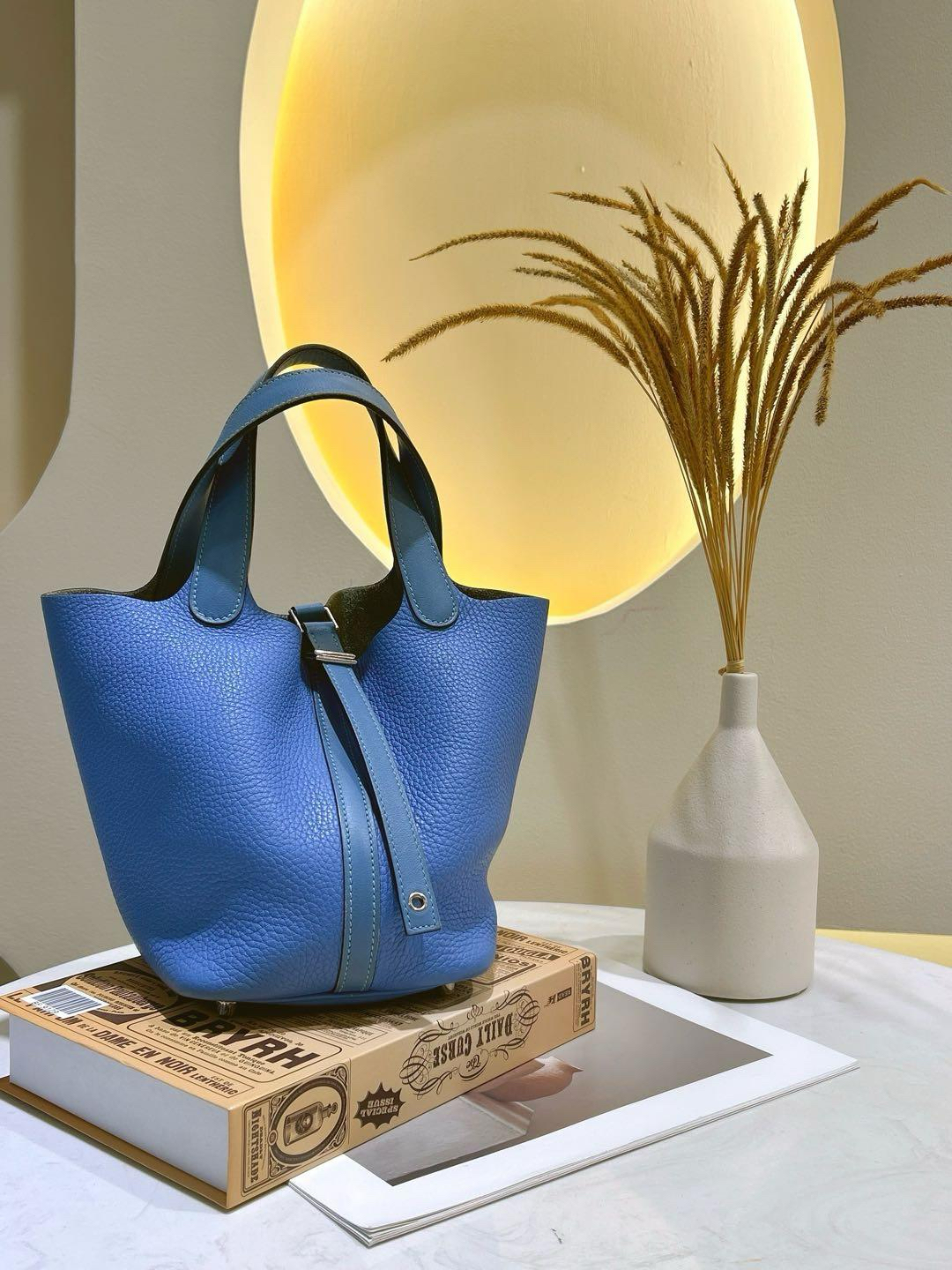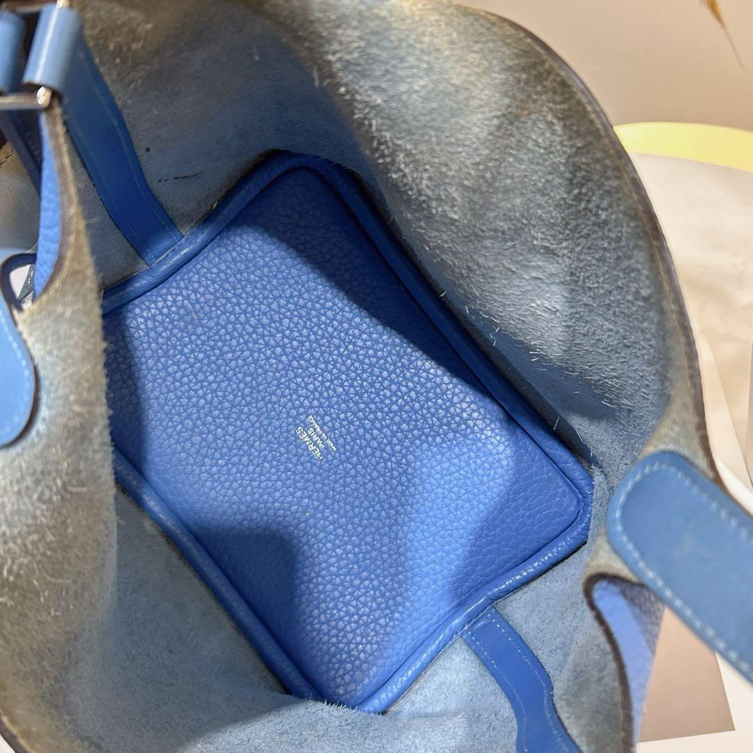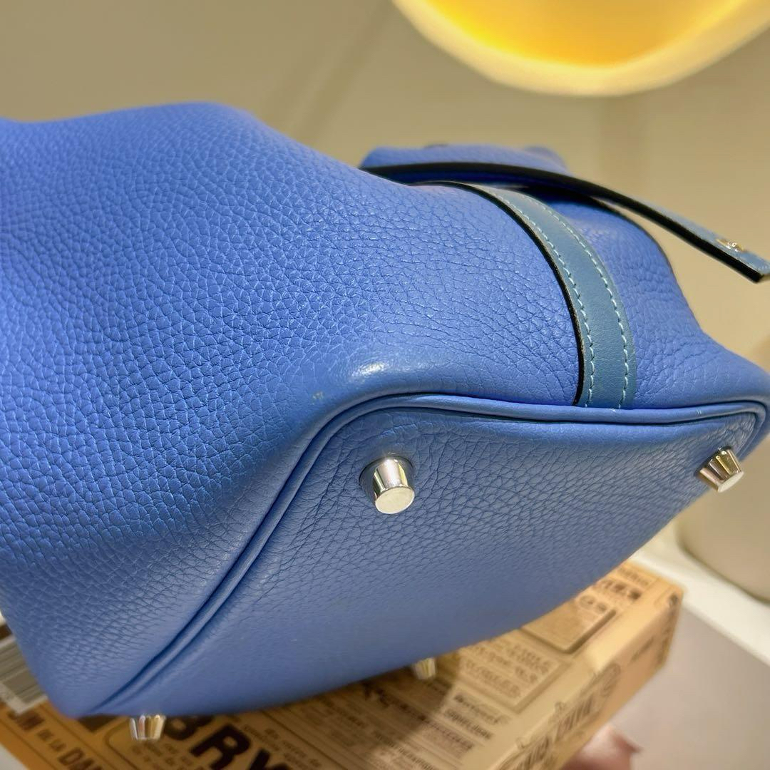 【商品詳情】正品二手 爱马仕 天堂蓝拼色 银扣 Togo皮 菜篮子18 手提包🍪 93新 T刻。包底角和手柄边有正常使用摩擦感 手柄和内里有正常使用痕迹。清爽夏日手拎包包