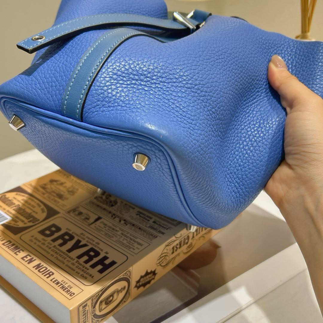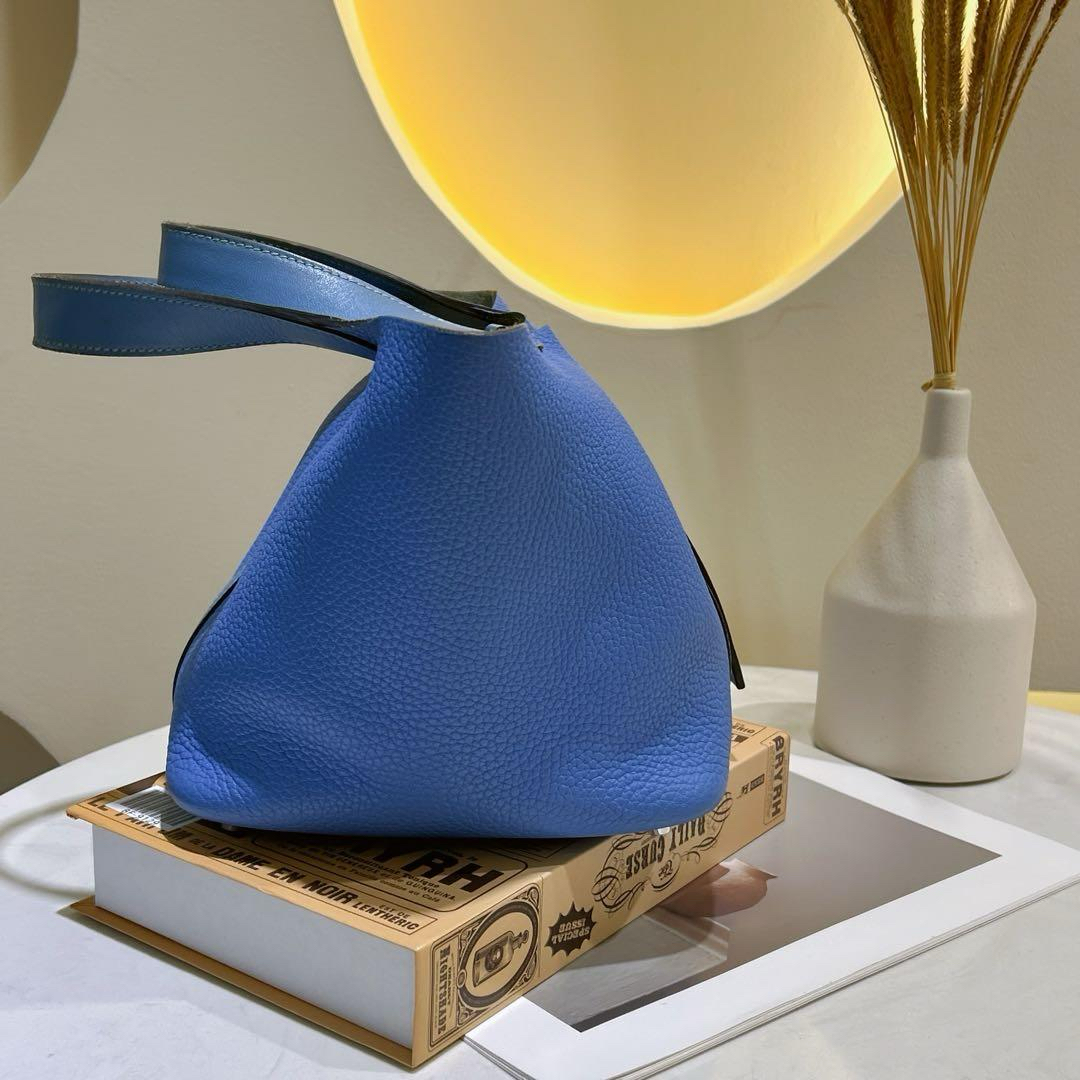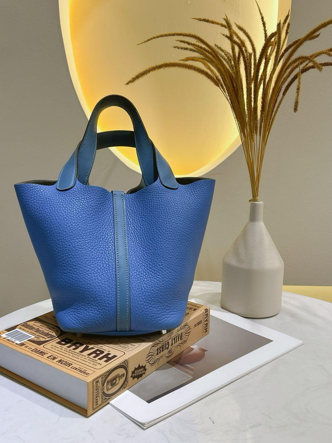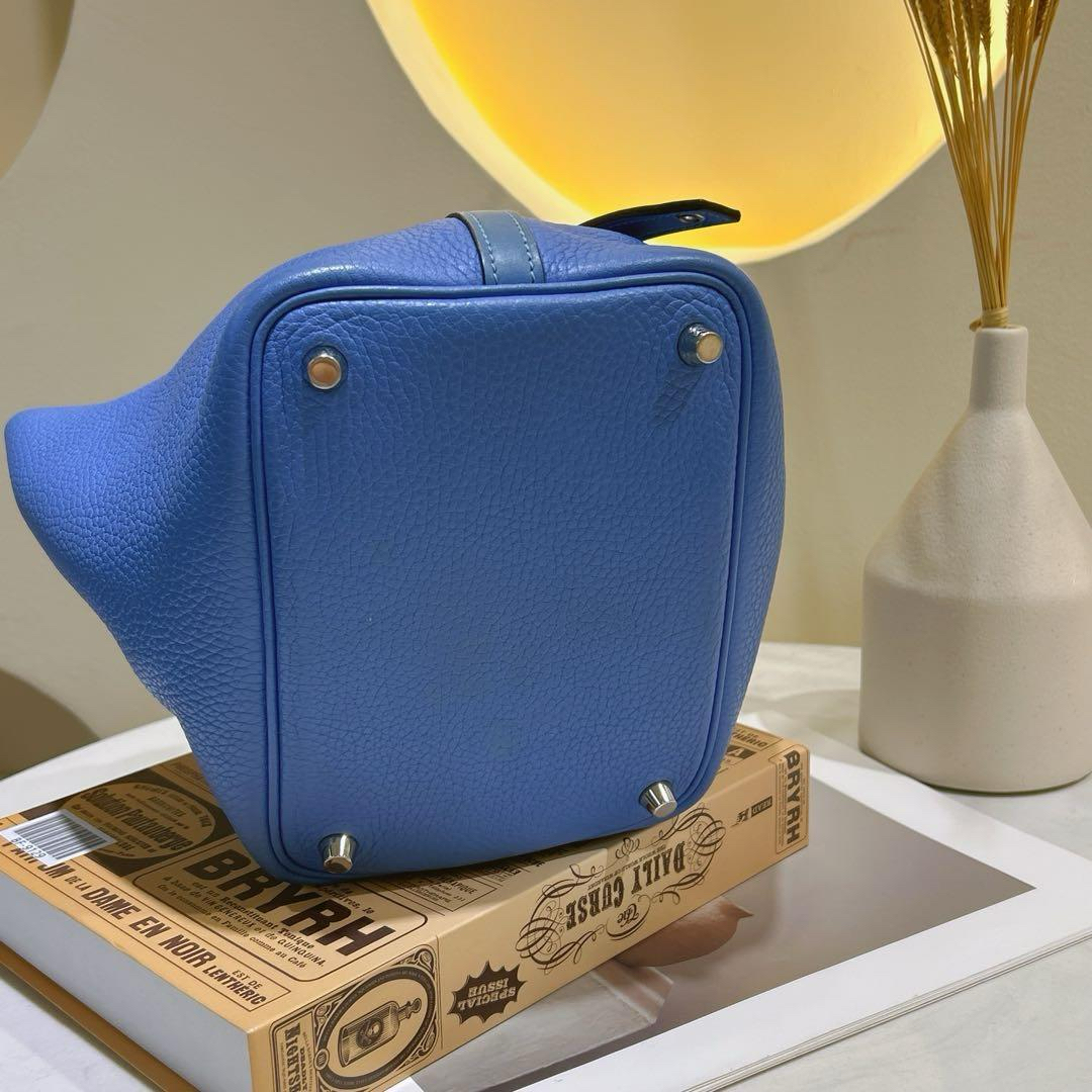 【商品詳情】正品二手 爱马仕 天堂蓝拼色 银扣 Togo皮 菜篮子18 手提包🍪 93新 T刻。包底角和手柄边有正常使用摩擦感 手柄和内里有正常使用痕迹。清爽夏日手拎包包
