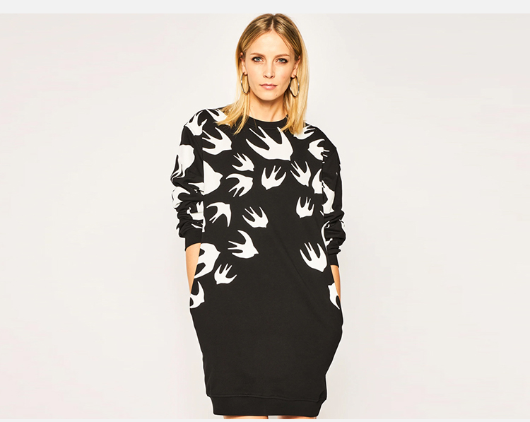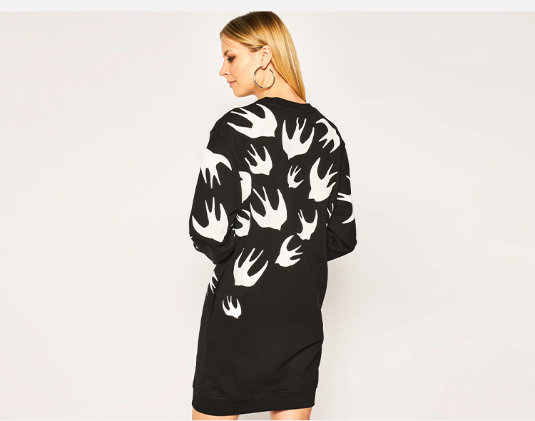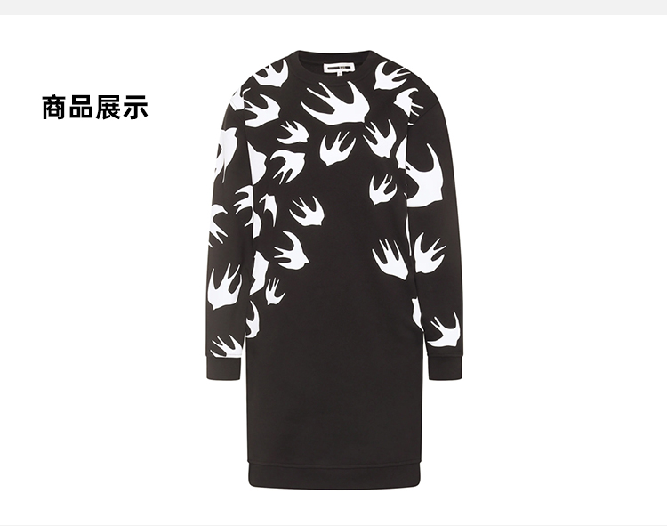 McQ 麦昆 女士棉质黑底白燕子印花圆领长袖连衣裙 黑色 379194 RLT72 1000