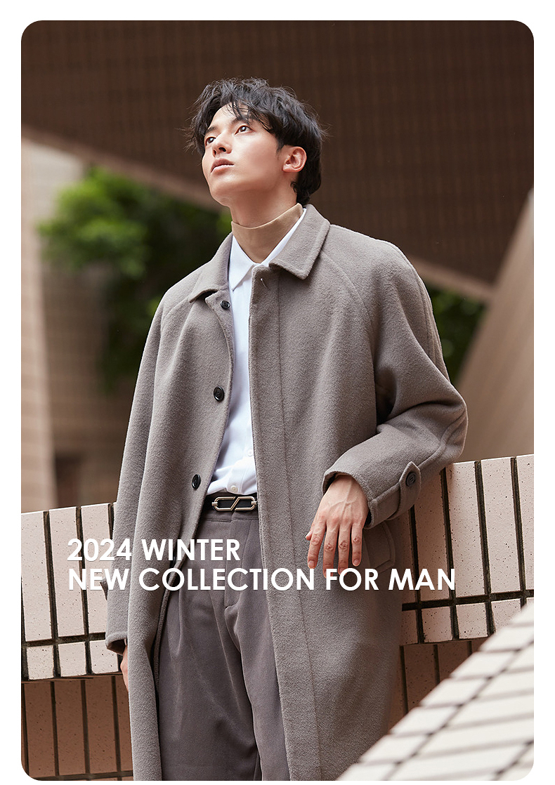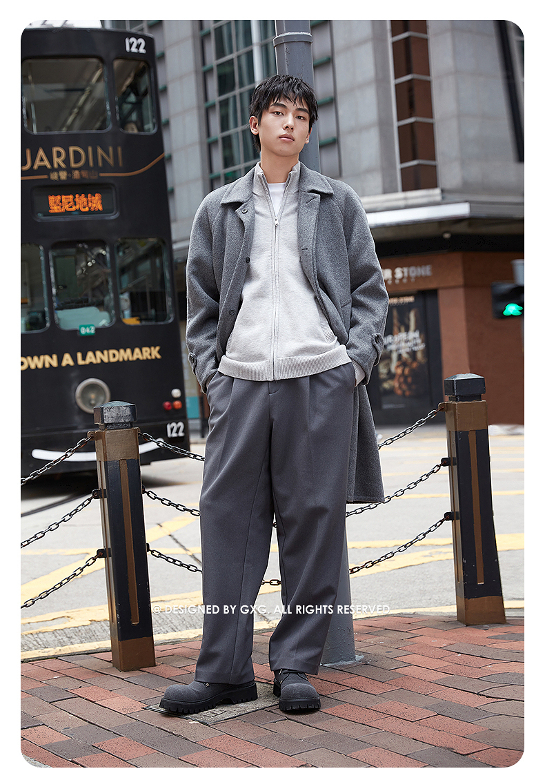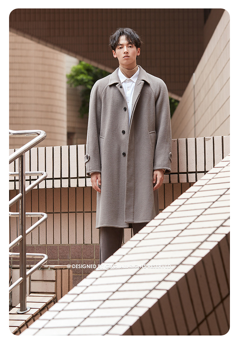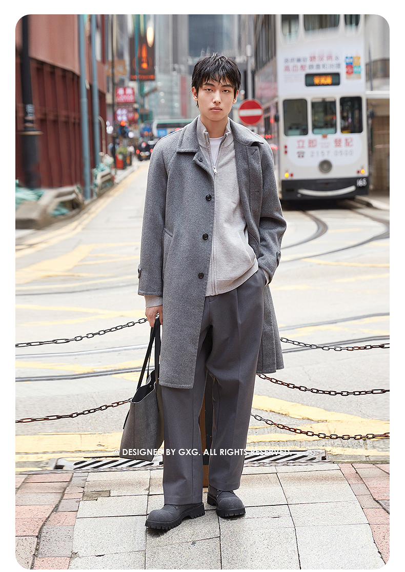 GXG男装插肩袖大衣纽扣翻领外套长款大衣24年冬季热卖#G24D264029